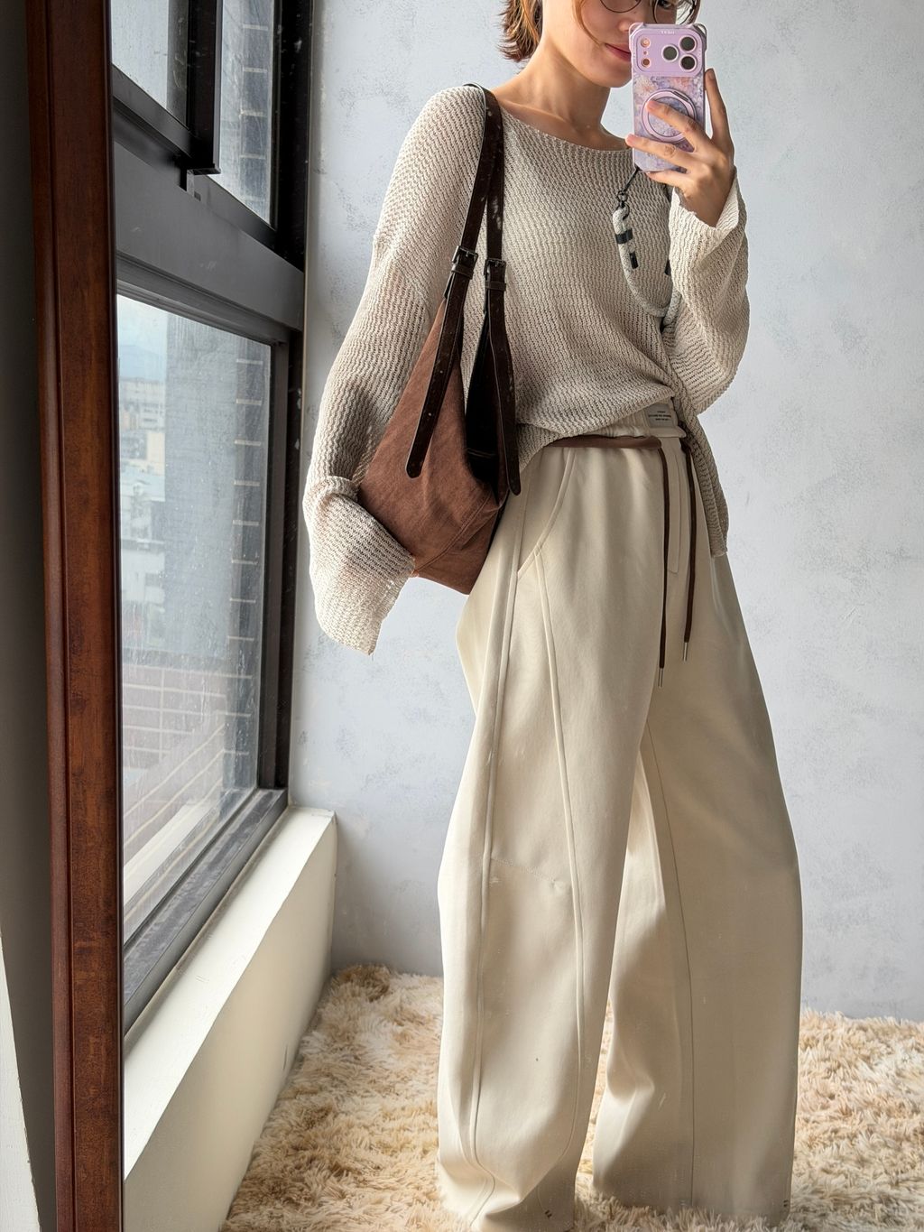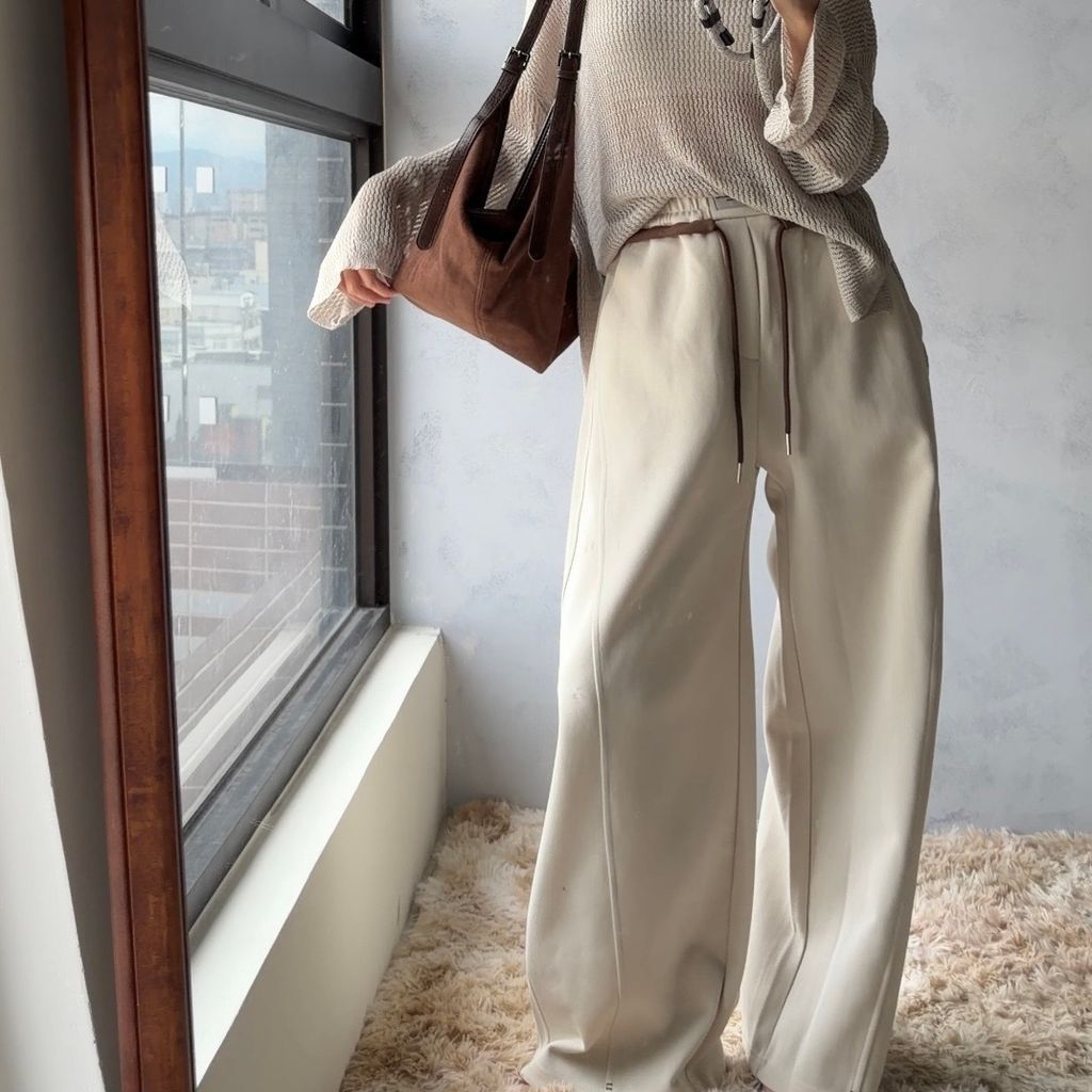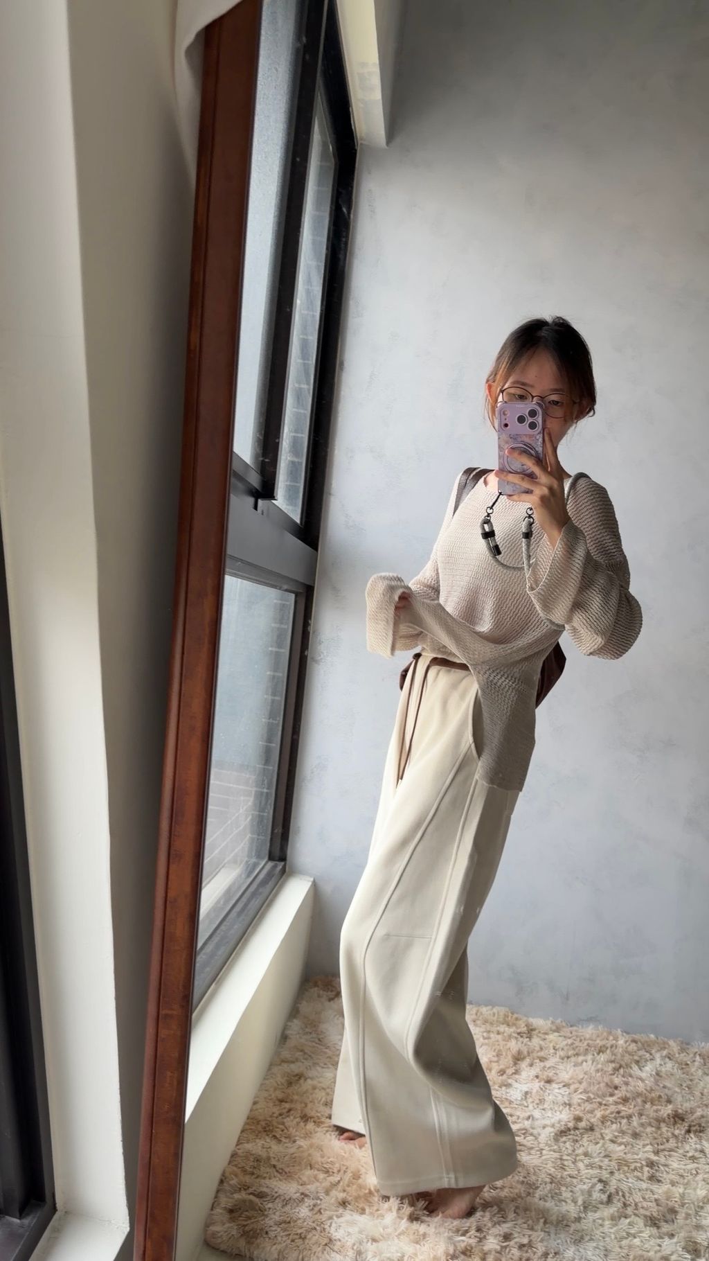 穿上都能同時保有彎刀褲的微弧型跟寬褲的延長廓感