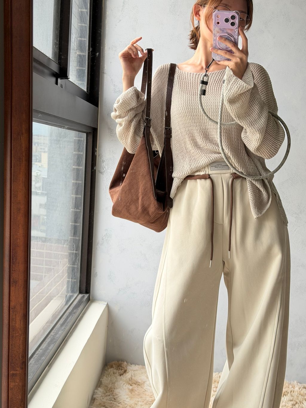 [C] 免運套裝組合*慵懶整套4入組*針織衫+彎刀褲+包包+BraTop