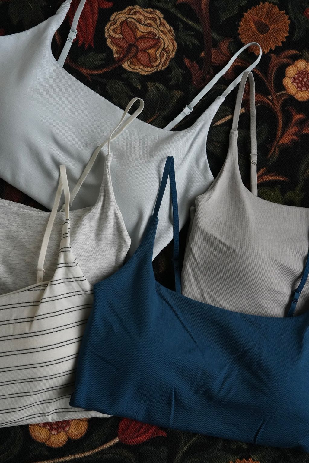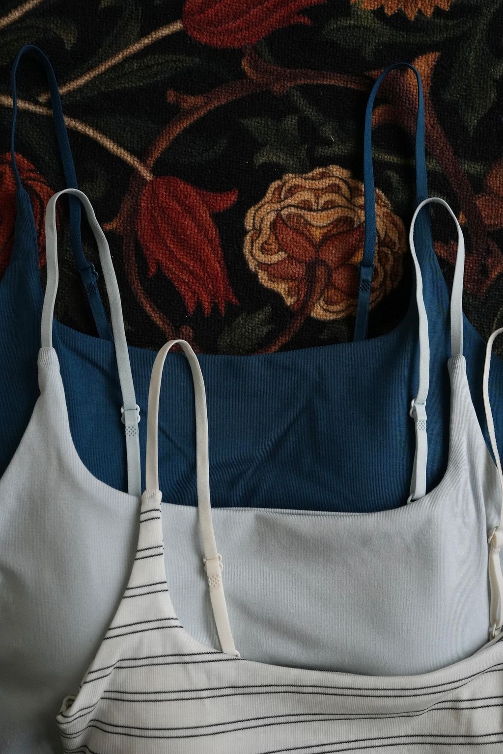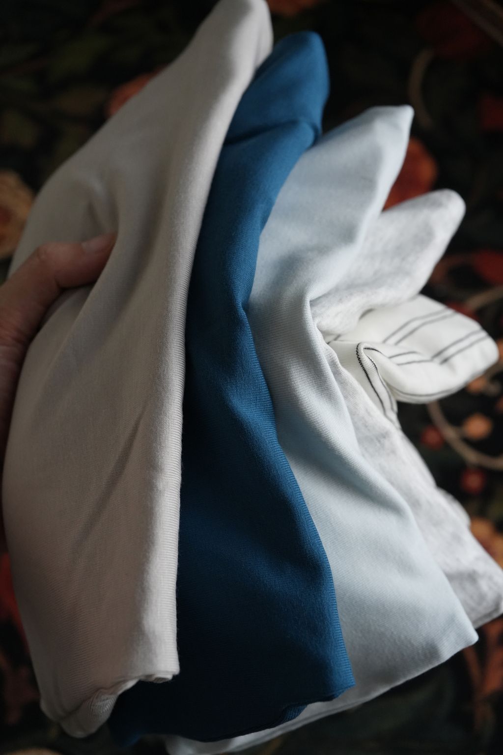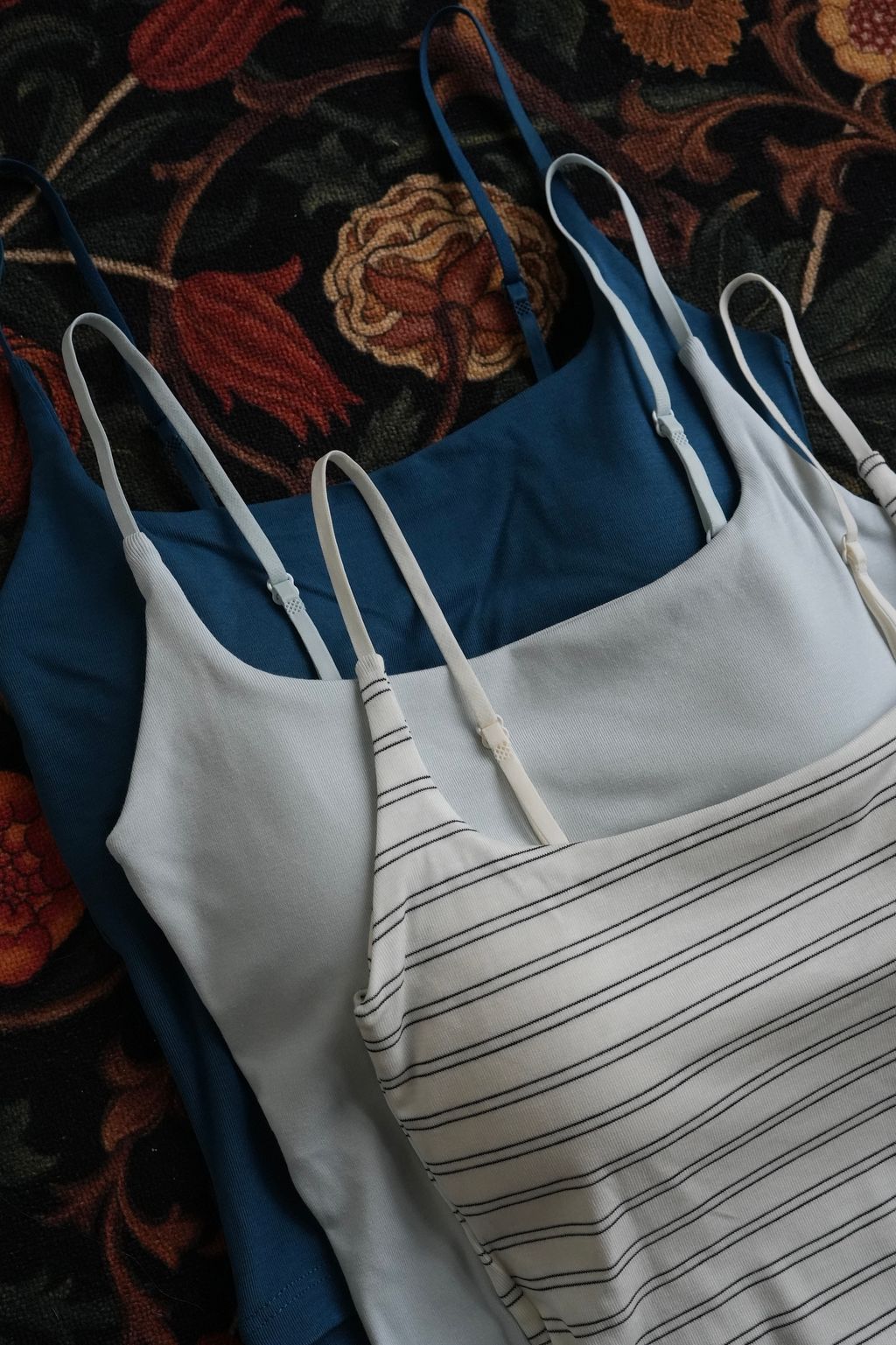 *注意⚠️因為她的布料柔韌服貼,讓領型很細緻美麗的同時,會有個一體兩面的缺點,就是「單穿」的時候,胸廓較大或大胸朋朋穿「淺色」在側邊會有機率看到胸墊邊緣形狀(例如我拍白條紋的側邊、阿白胸圍84cm的效果)