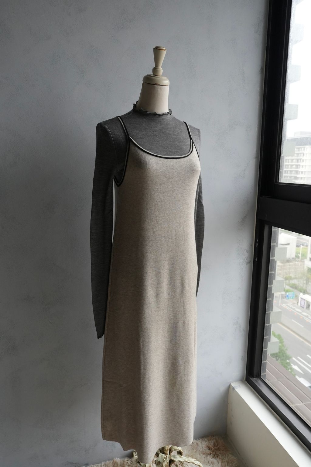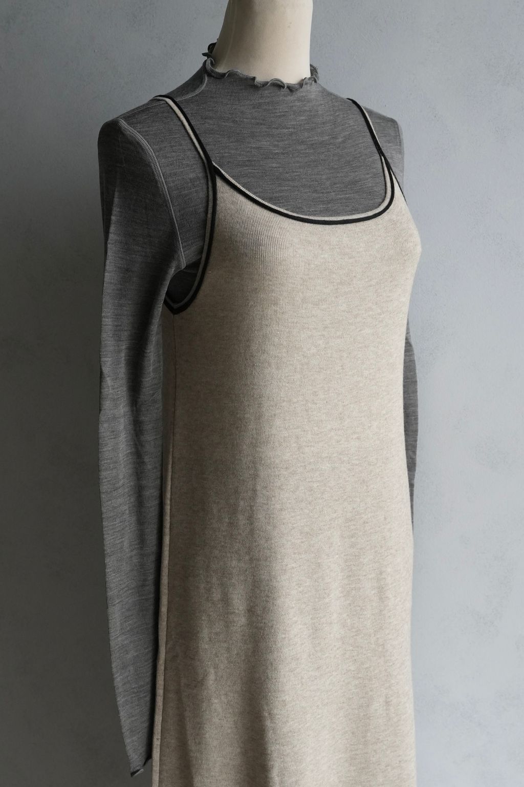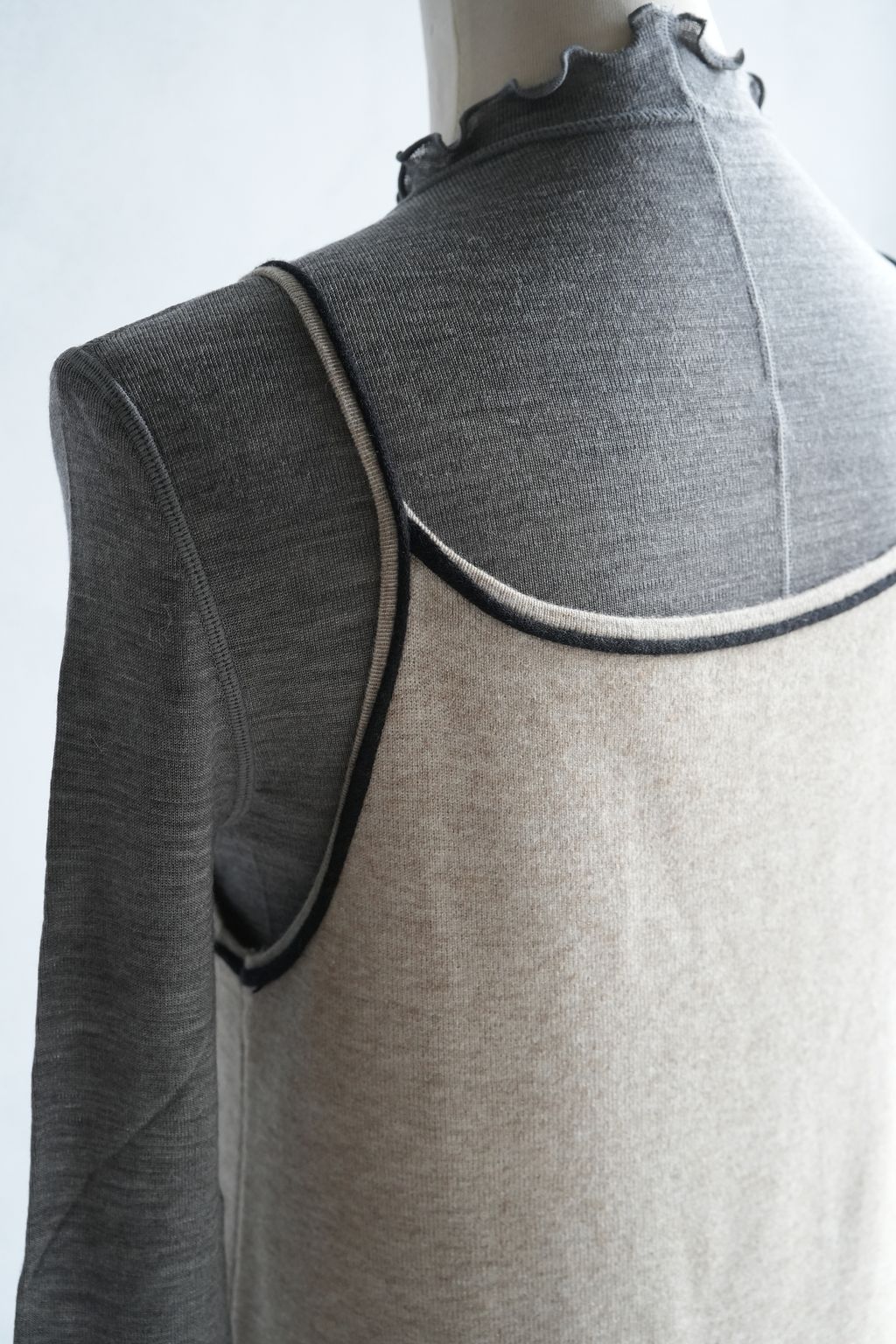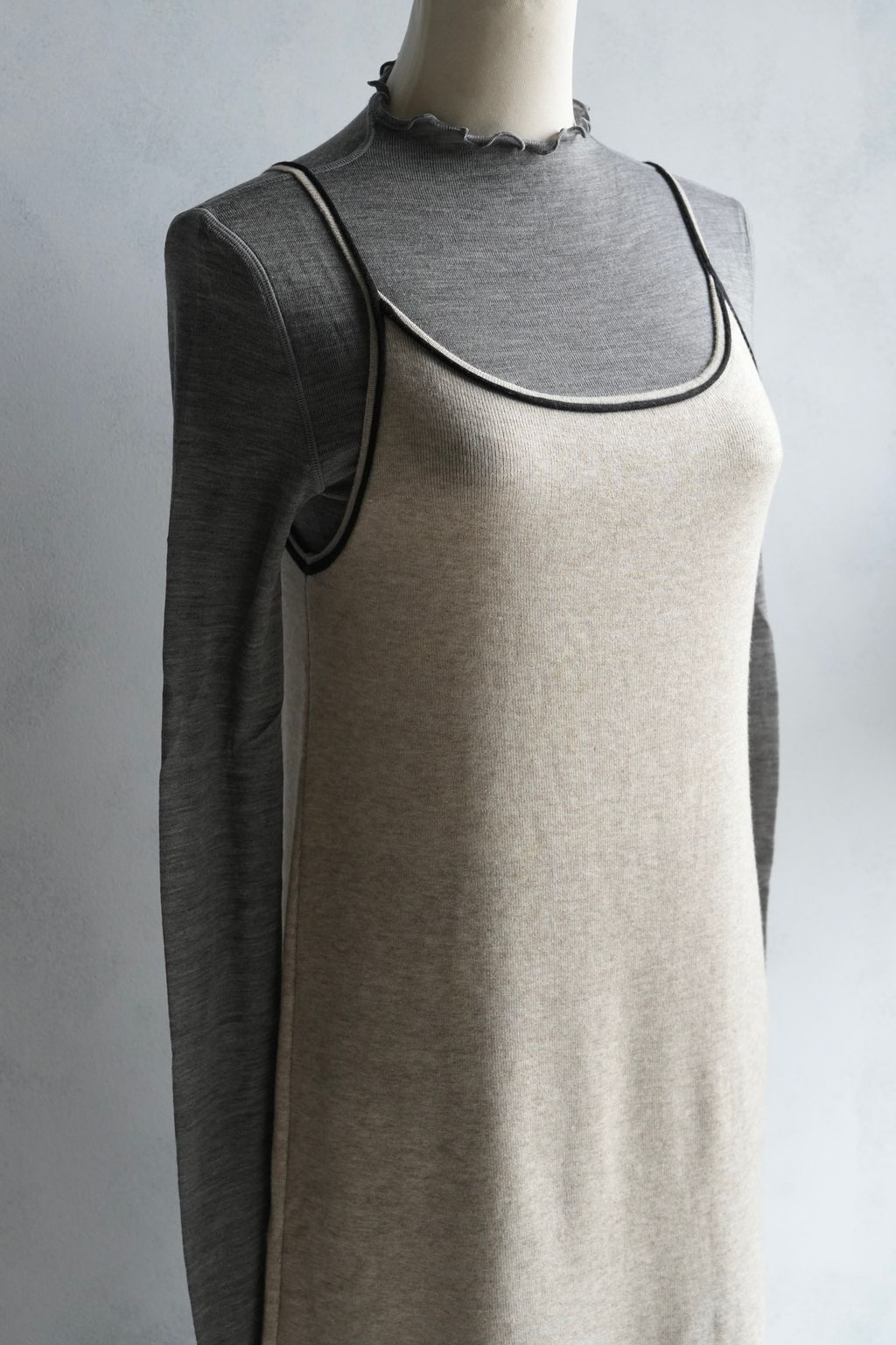 [C] 彈力針織立體飾線撞色細肩帶背心裙洋裝|燕麥撞黑*限量現貨