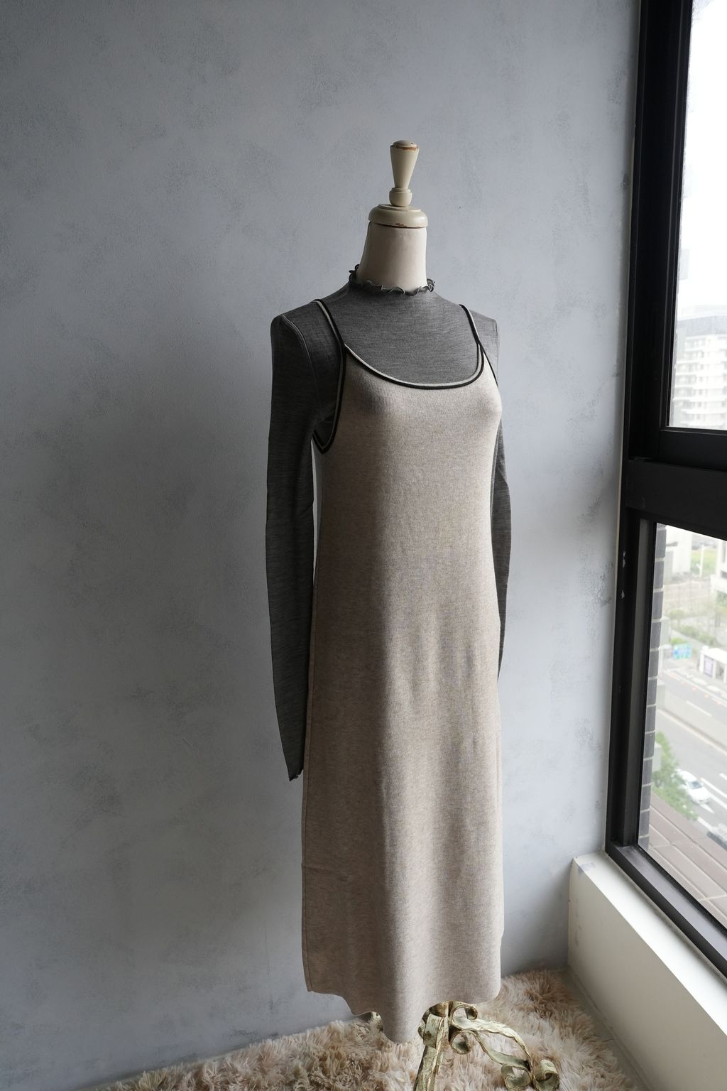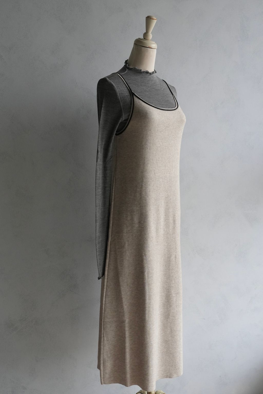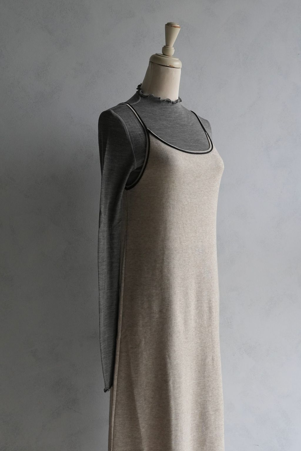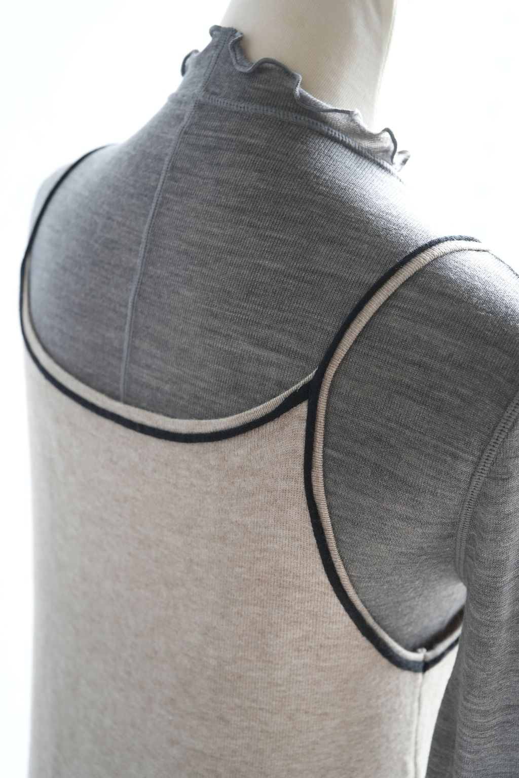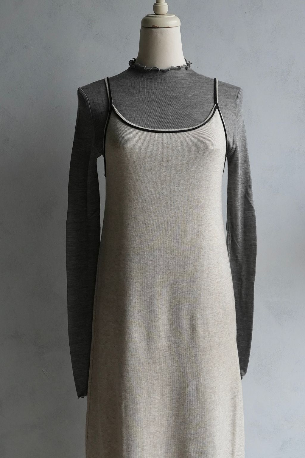 [C] 彈力針織立體飾線撞色細肩帶背心裙洋裝|燕麥撞黑*限量現貨