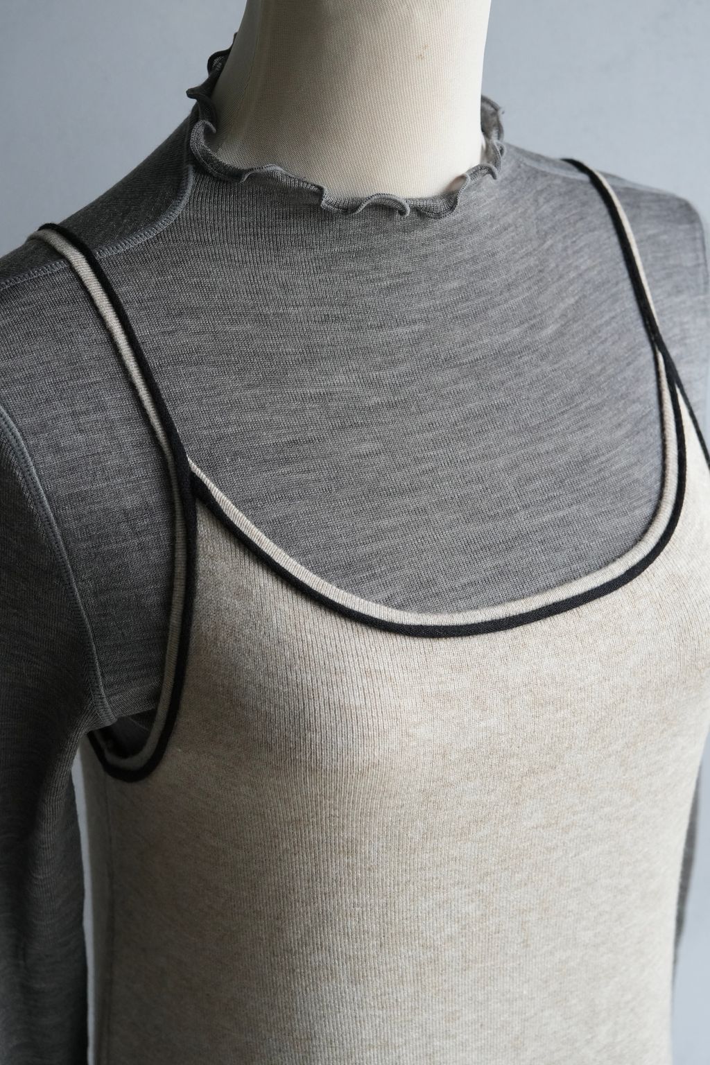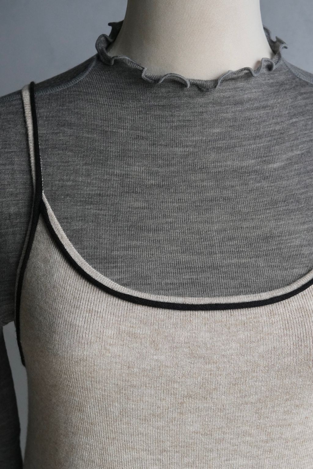 [C] 質感微透視加長袖軟羊毛剪裁設計滾邊荷葉內搭長袖上衣|3色*2尺寸
