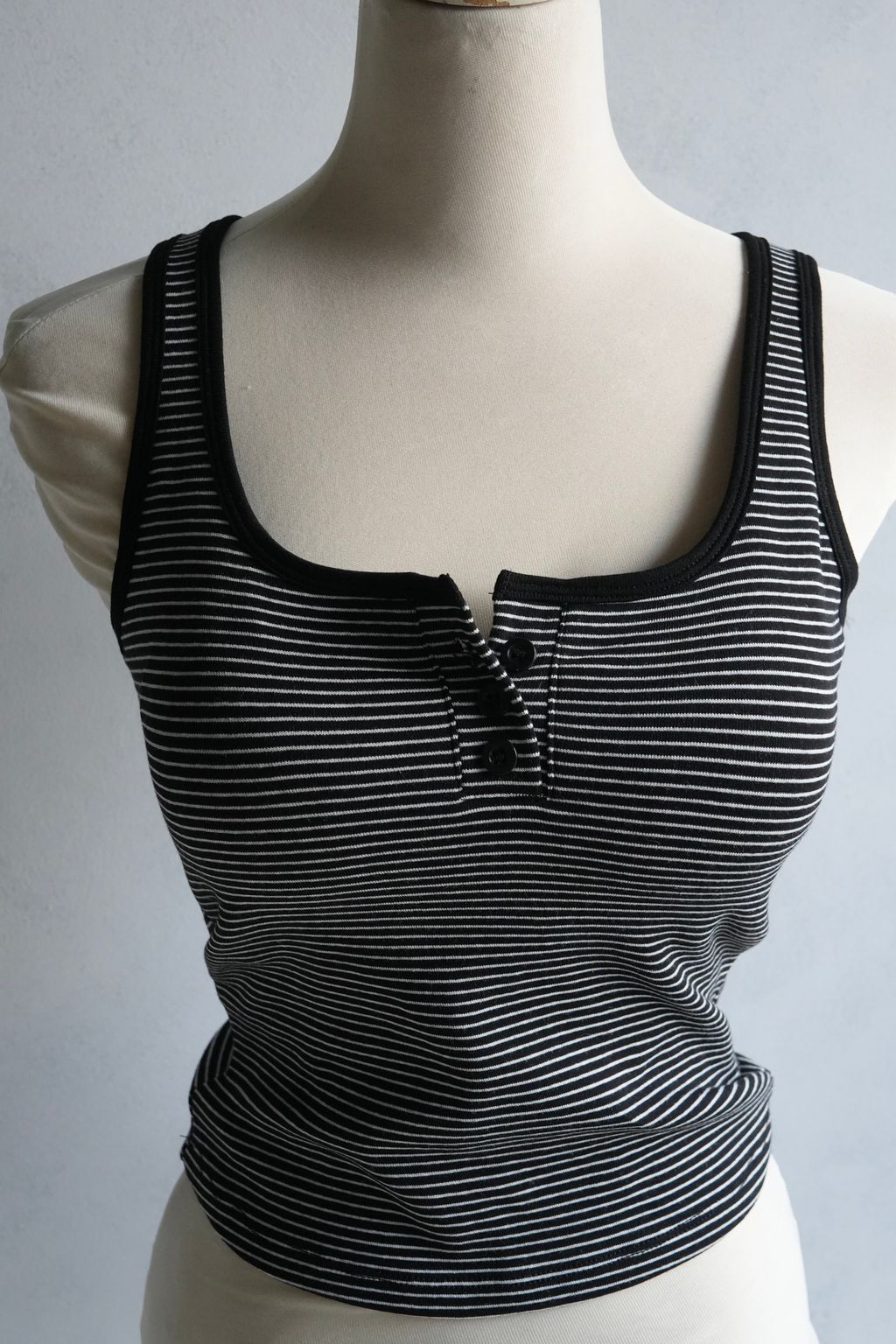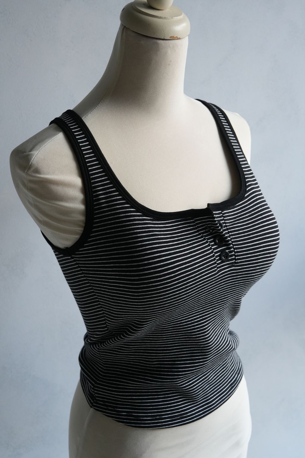 [C] 不露背*高彈力棉條紋裝飾釦方領背心BraTop|3色*適S-L