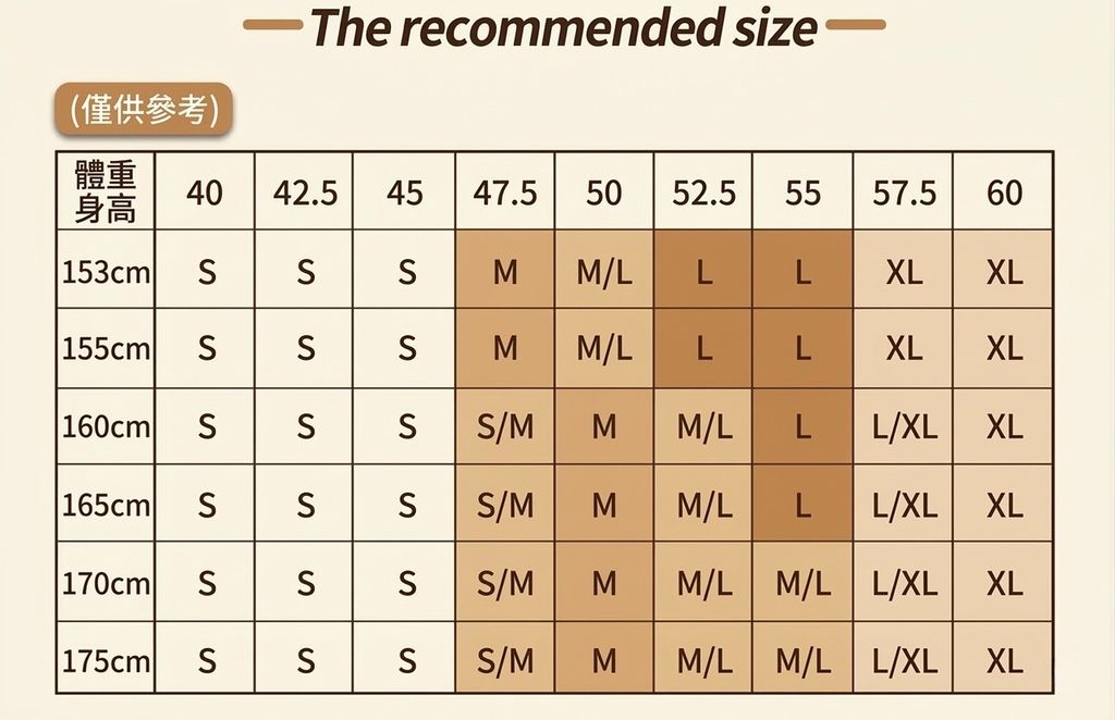 最後一張尺寸建議表格可供參考