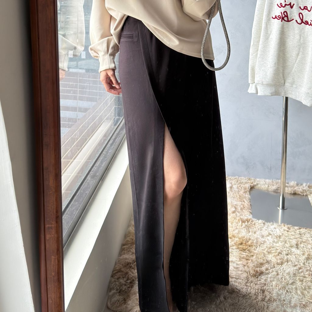 柔溜前側開衩微A直筒裙