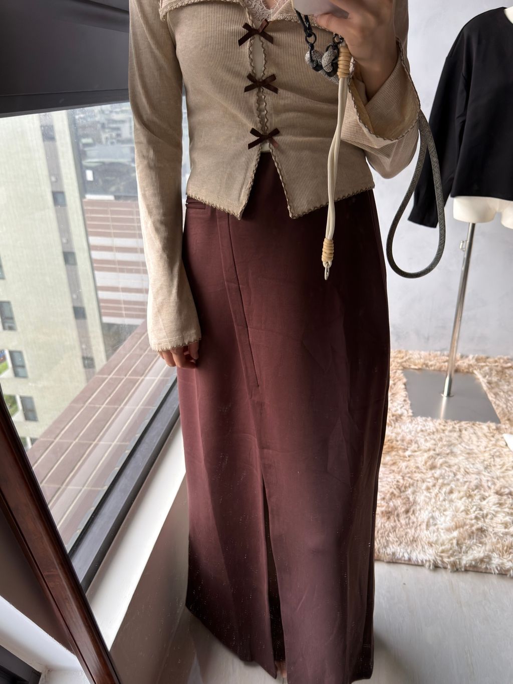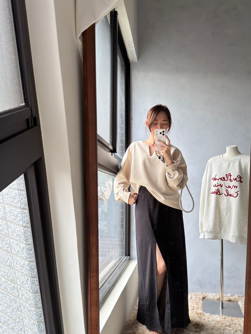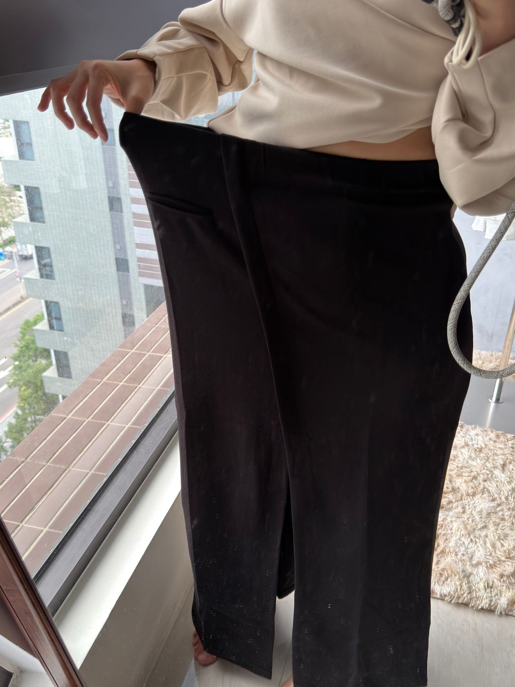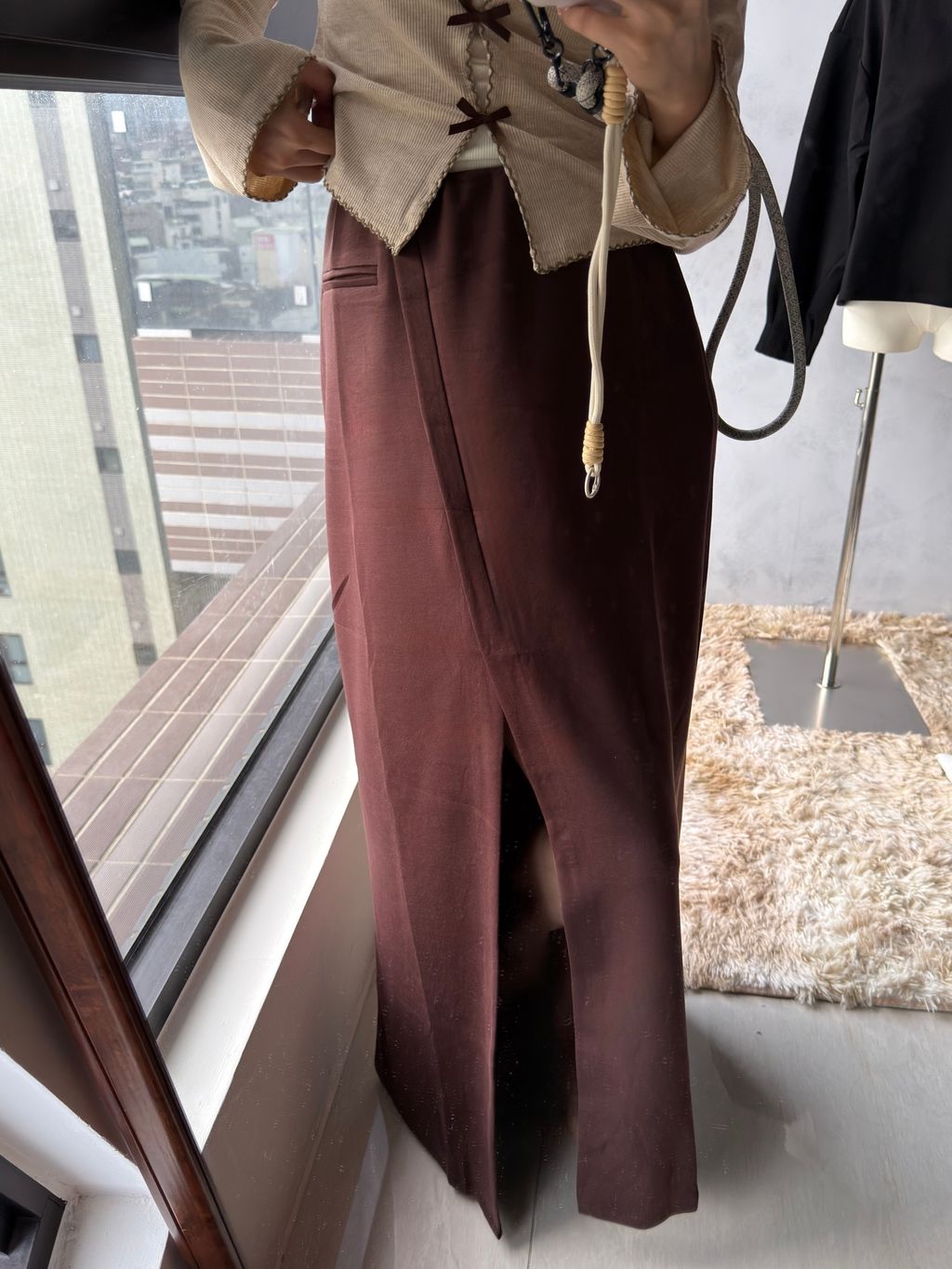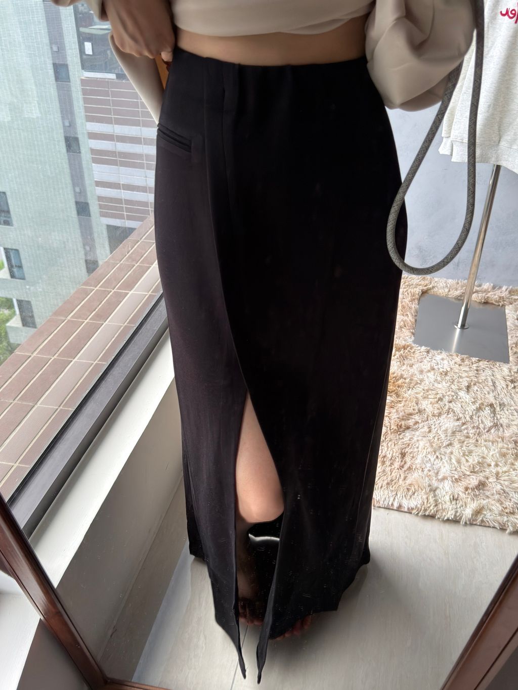 ps. 我166/50平常穿27/28尺寸下半身 穿這款裙已經接近邊緣 如果下半身比我更瘦、平常穿27腰以下的朋朋可能會太寬鬆穿不出開衩效果喔