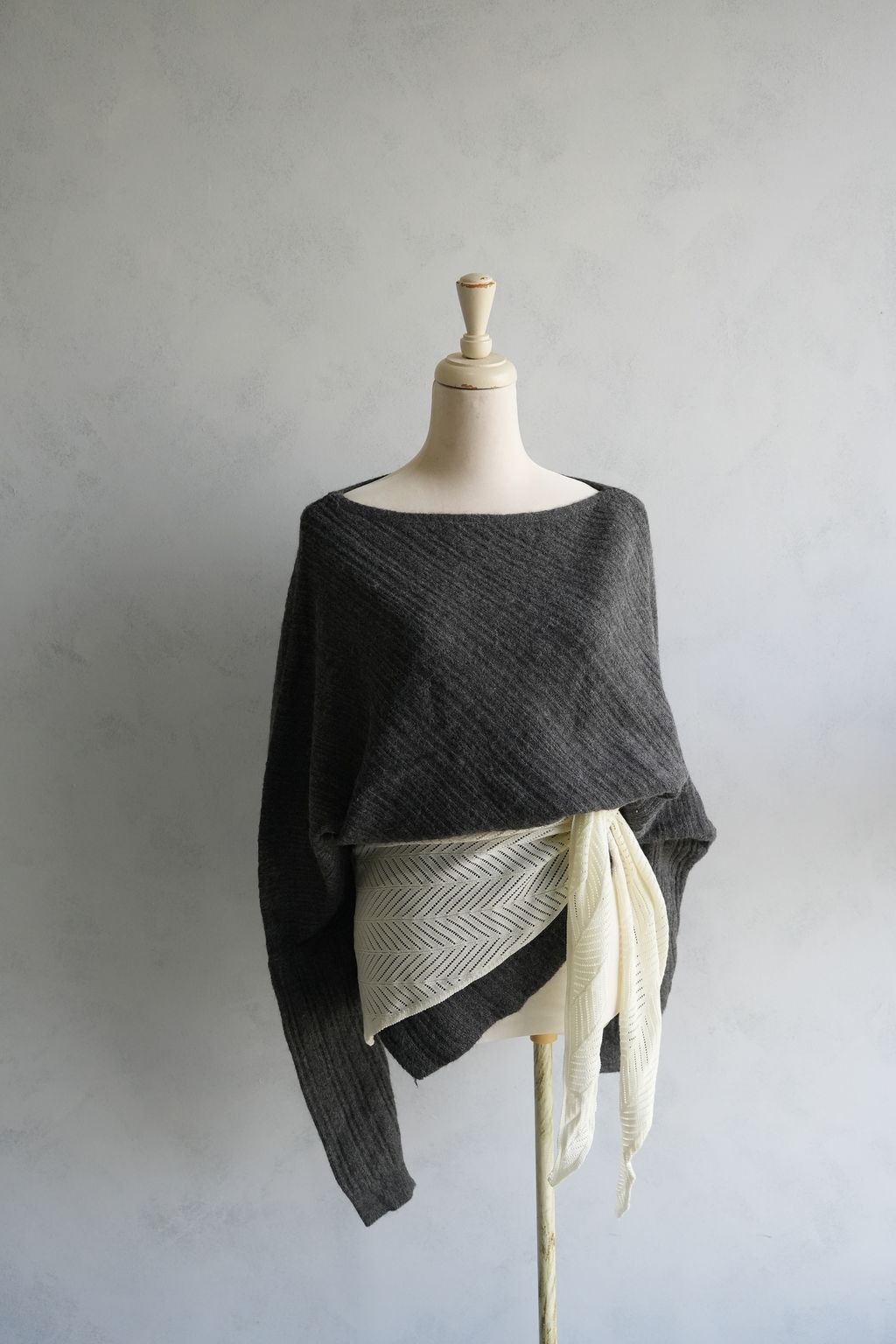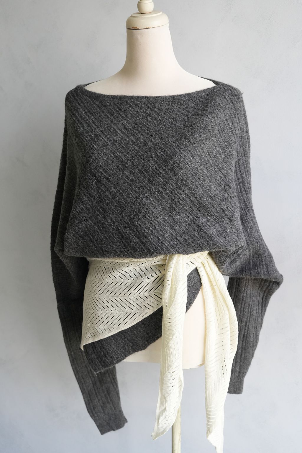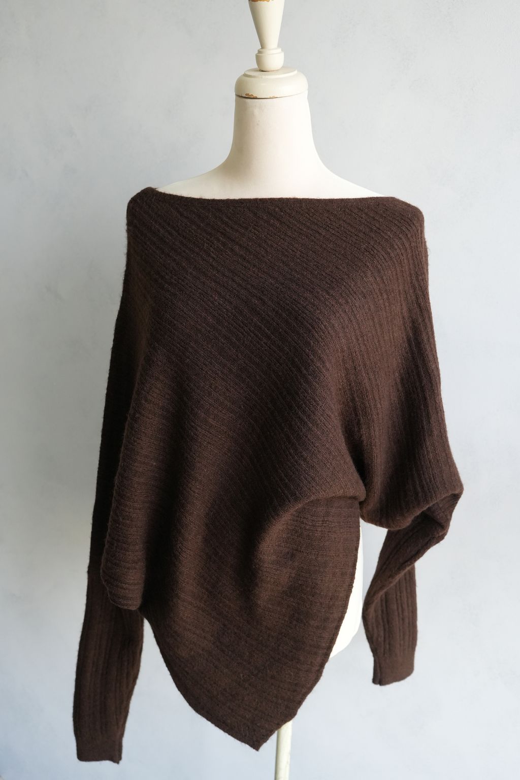 蝙蝠袖斜開衩針織毛衣