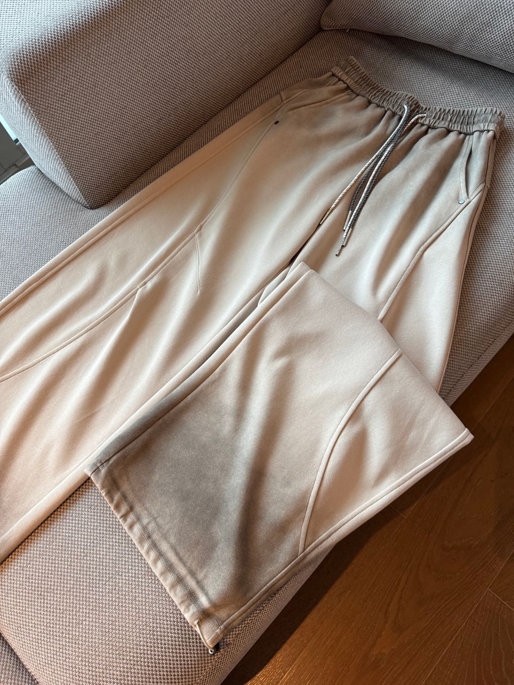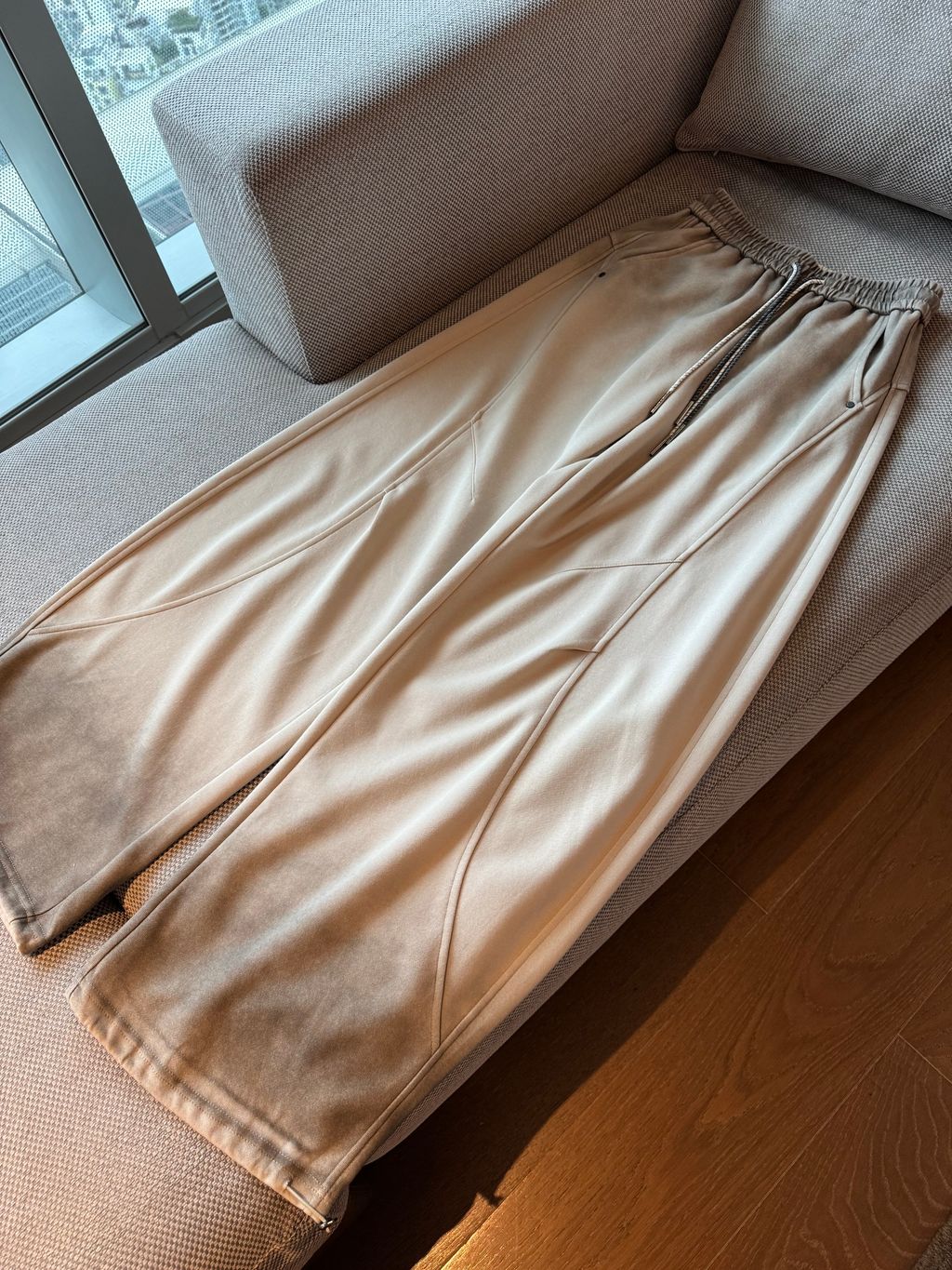 關於落地款暈染刷色彎刀褲