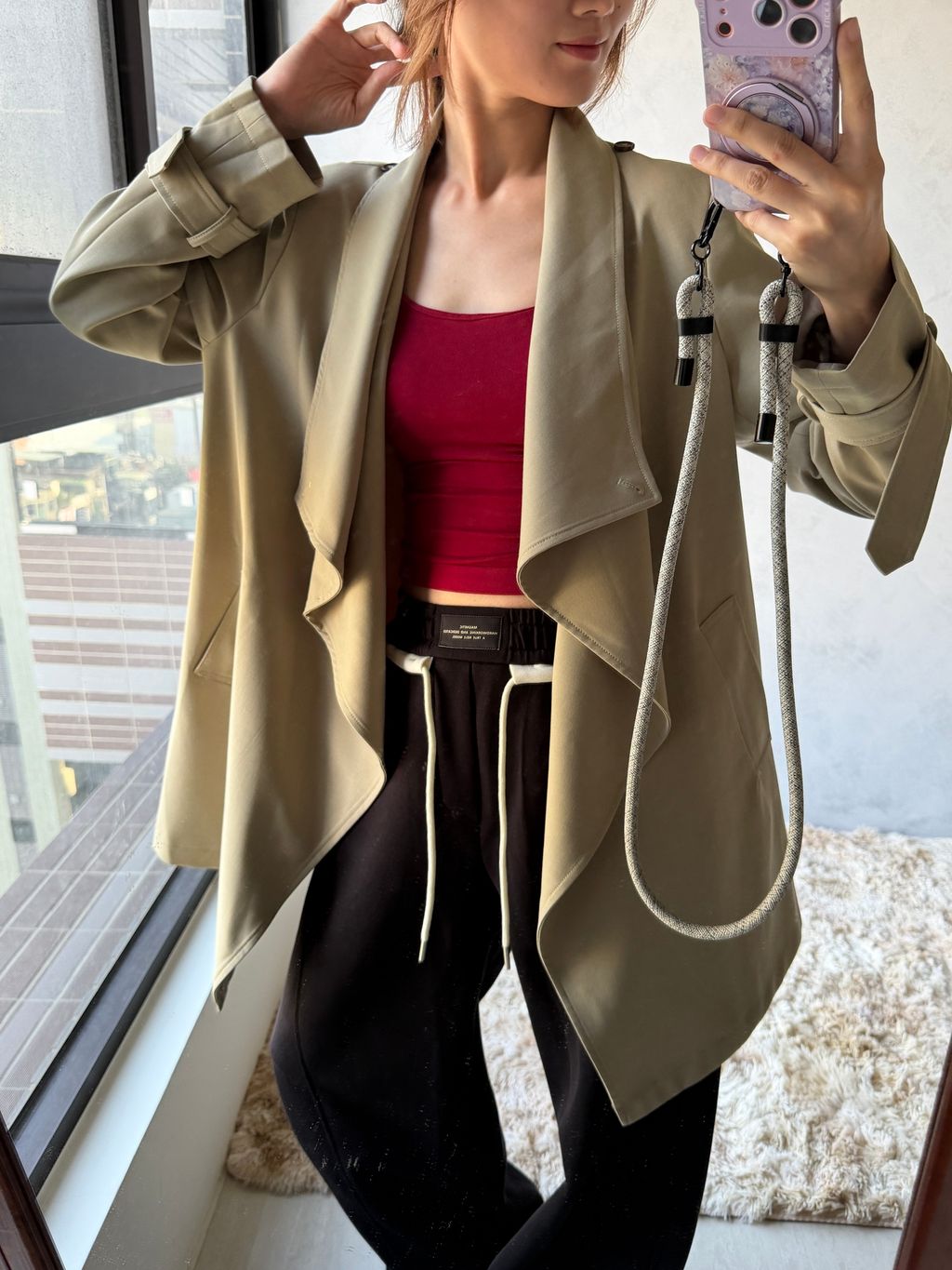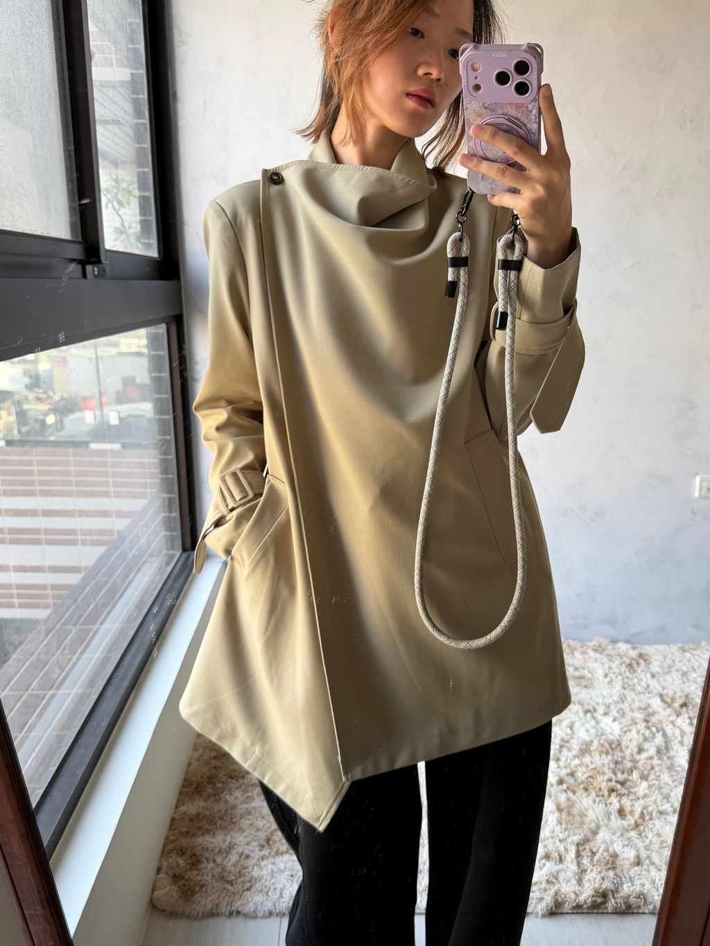 [C] 超美大翻領兩穿風衣西裝外套|黑卡其*S-2XL