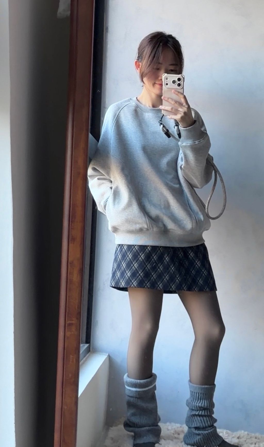 [C] 免運套裝組合*藍灰格調生活感4入組*重磅質感大學踢+藏藍格紋裙+耐穿一體式光腿神器+灰襪套|4尺寸