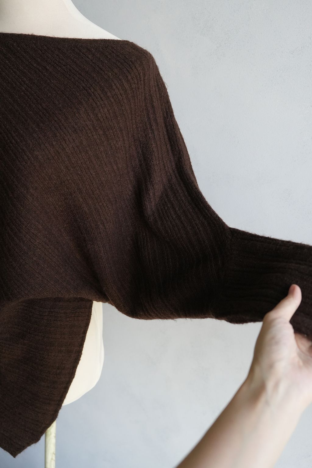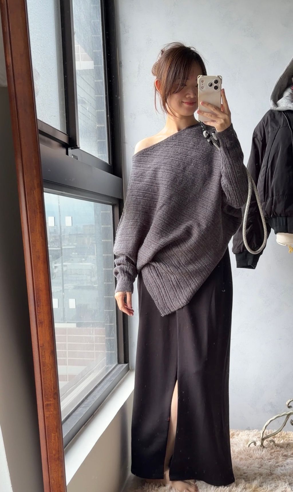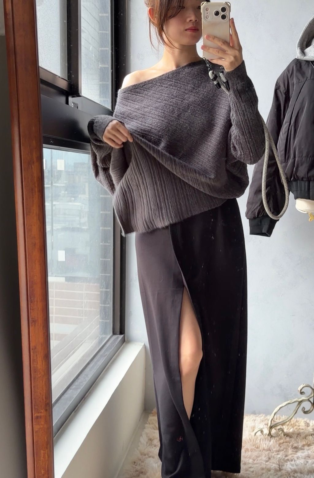 2. 質感斜紋蝙蝠袖斜開衩下襬針織毛衣