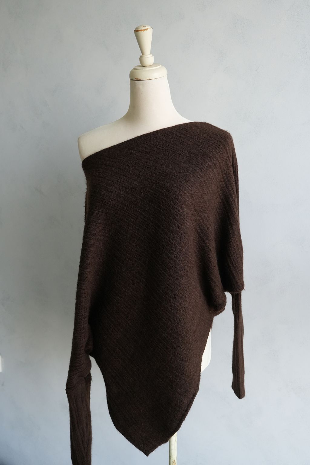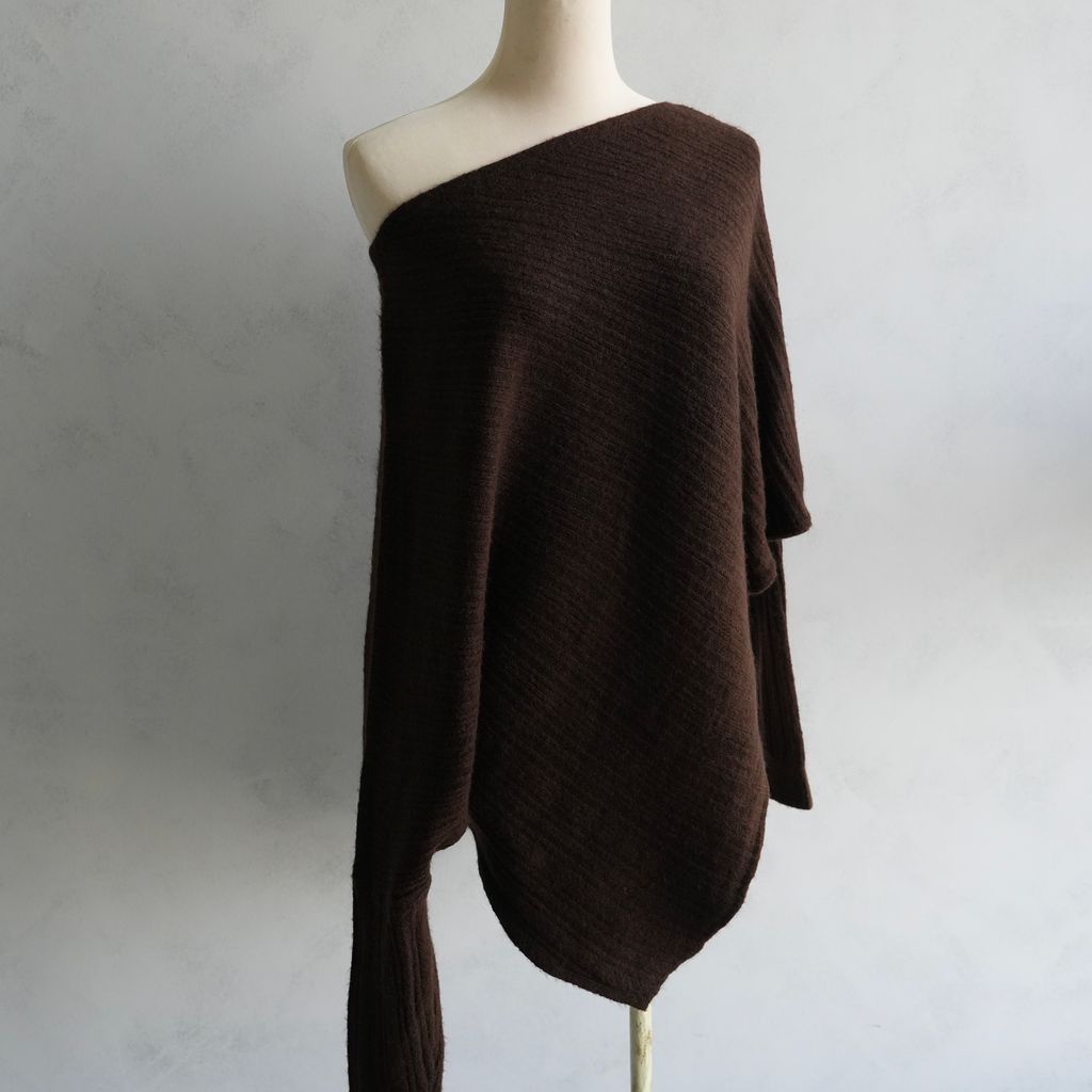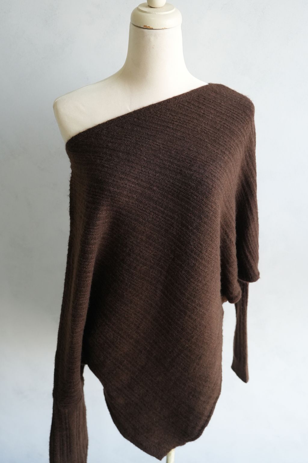2. 質感斜紋蝙蝠袖斜開衩下襬針織毛衣