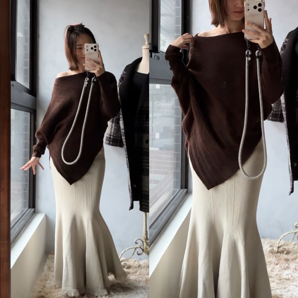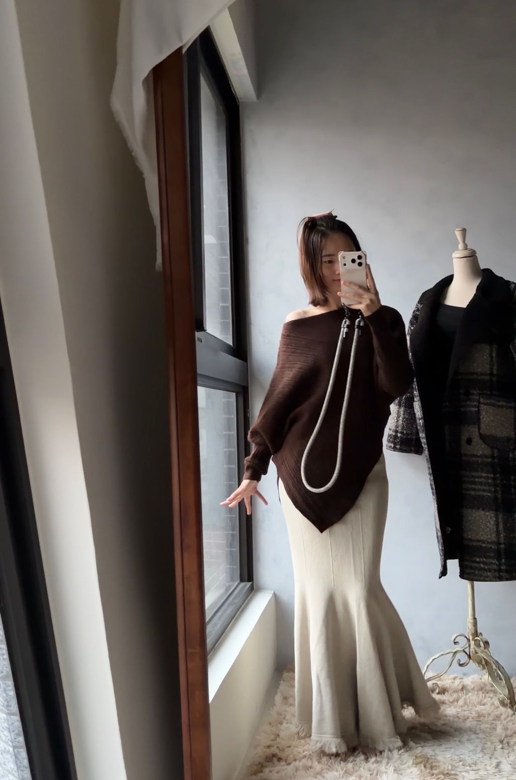 [C] 免運套裝組合*慵懶魅力3入組*大裙擺蘇美魚尾裙+寬鬆開衩斜襬毛衣+贈軟腰帶|2版本裙長