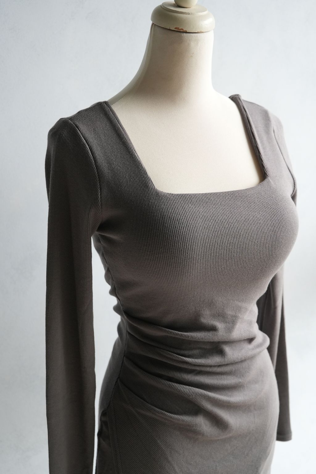 美中不足弱勢|螺紋棉正常版胸口上方的微弧度、若較瘦的朋朋穿起來側面會有點澎澎的;裙身開衩設計沒有做口袋