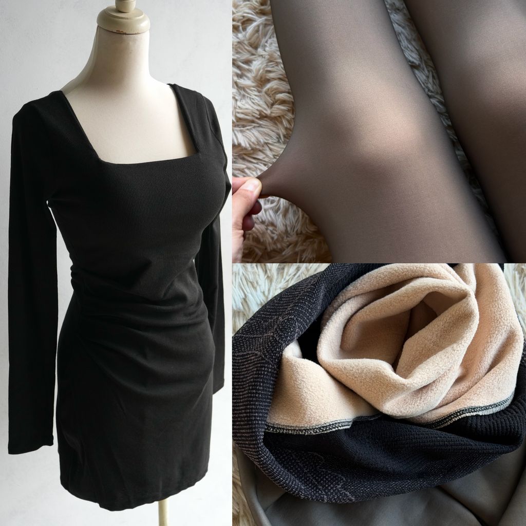 [C] 免運套裝組合*免穿搭2入組*長袖BraTop皺褶藏肚神裙+極透膚保暖光腿神器假絲襪|3尺寸*適S-L