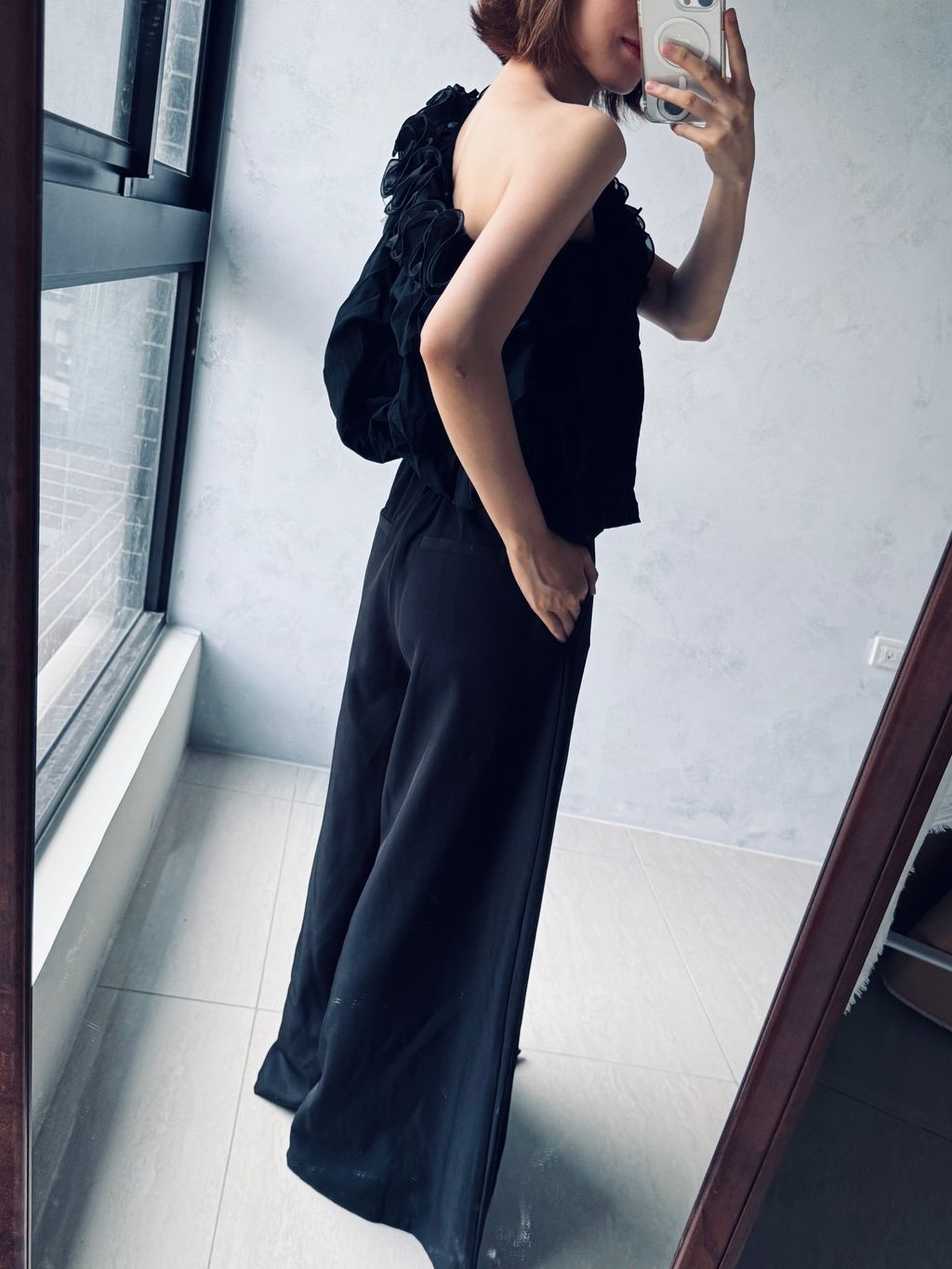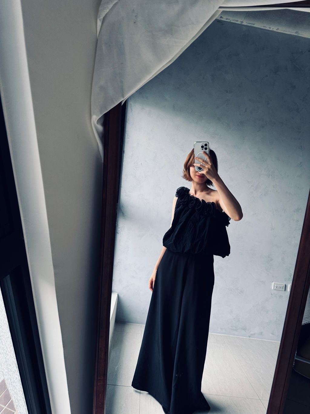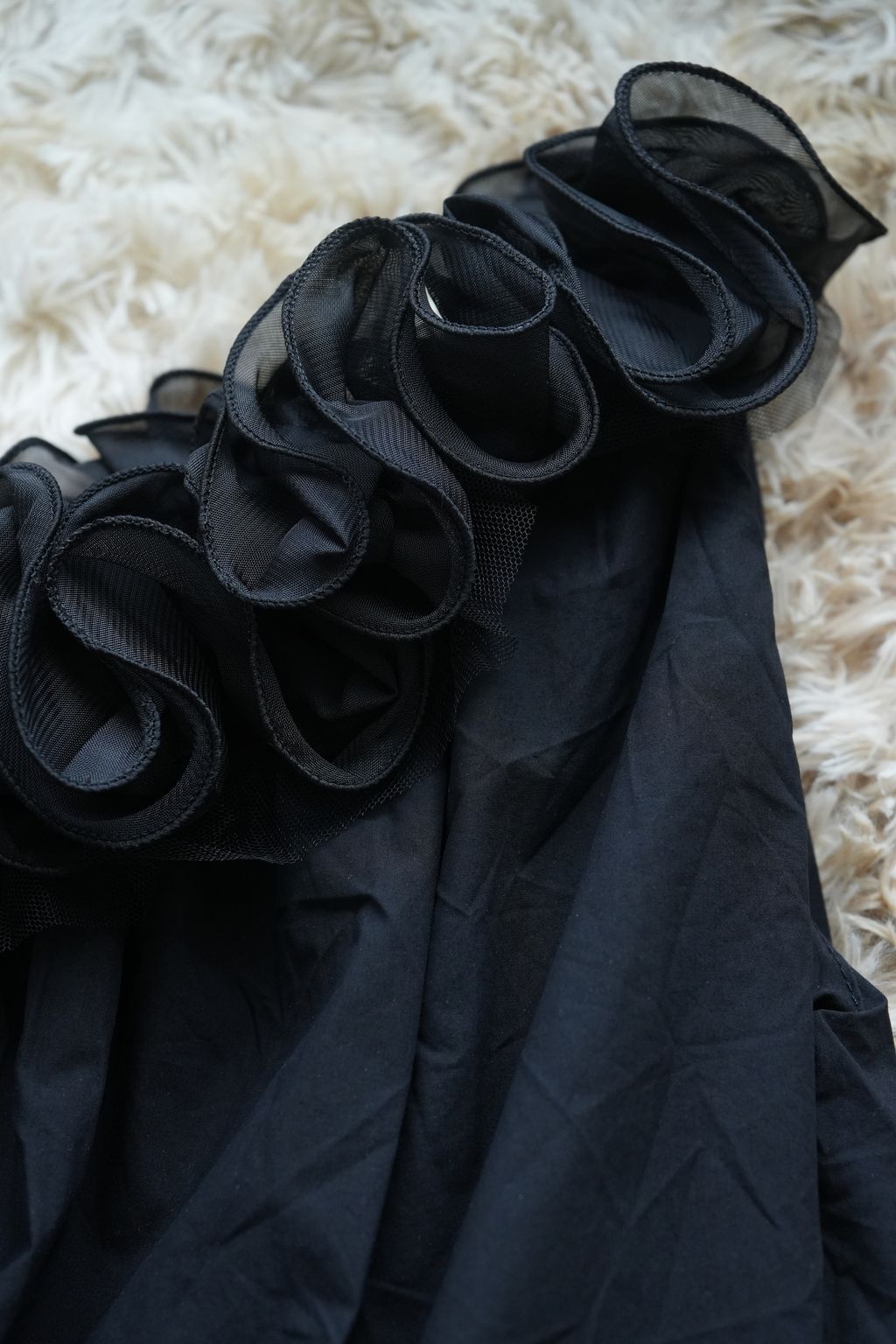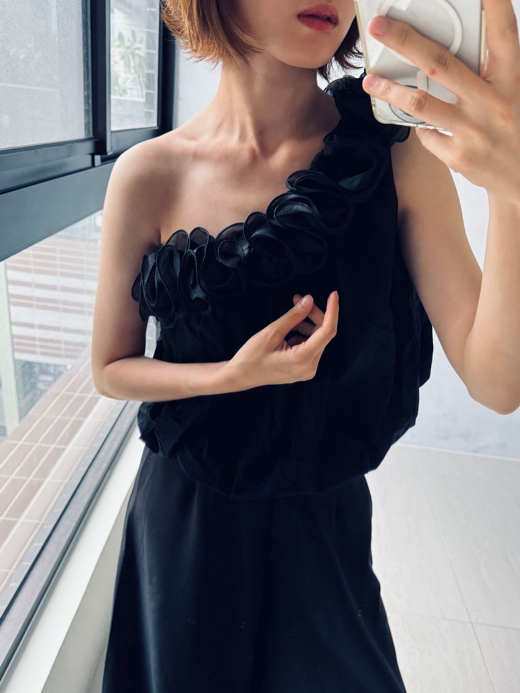 [C] 無腰人救星立體花朵單肩蓬蓬上衣|適S-XL*黑白現貨