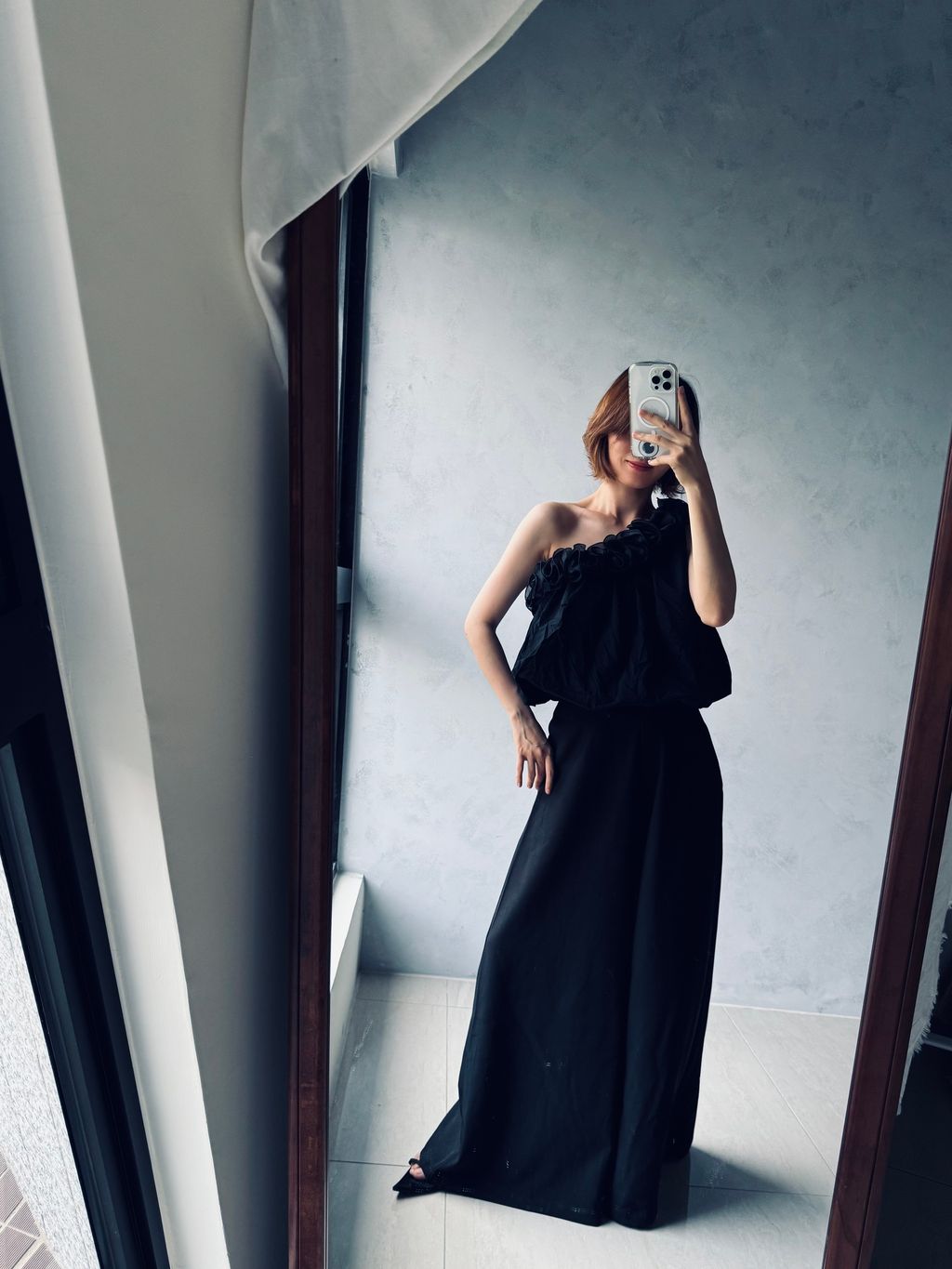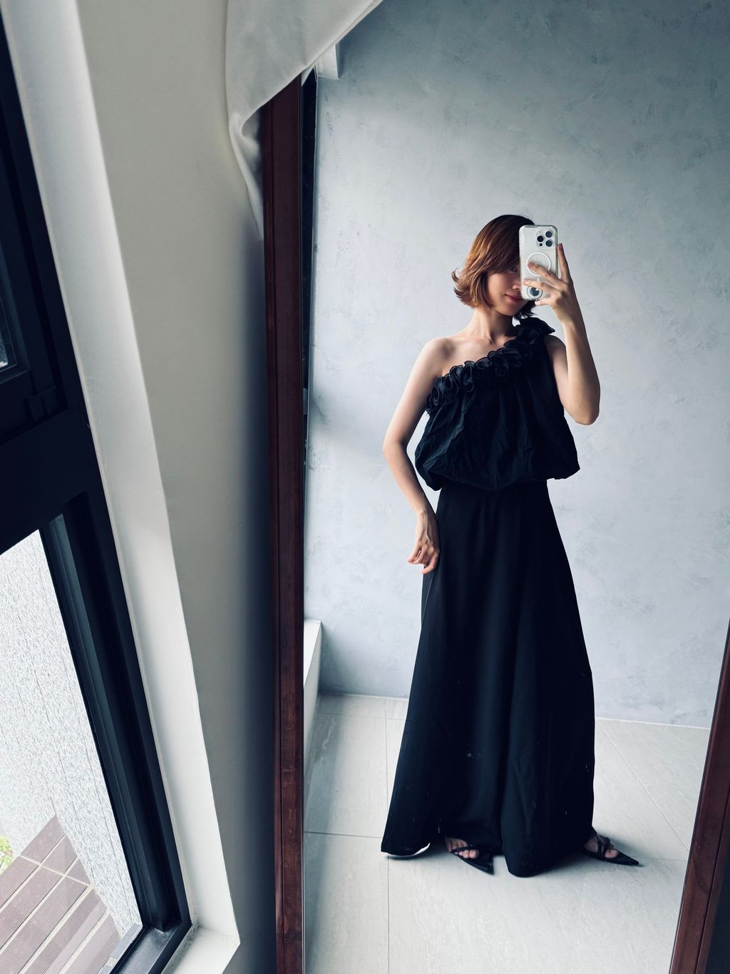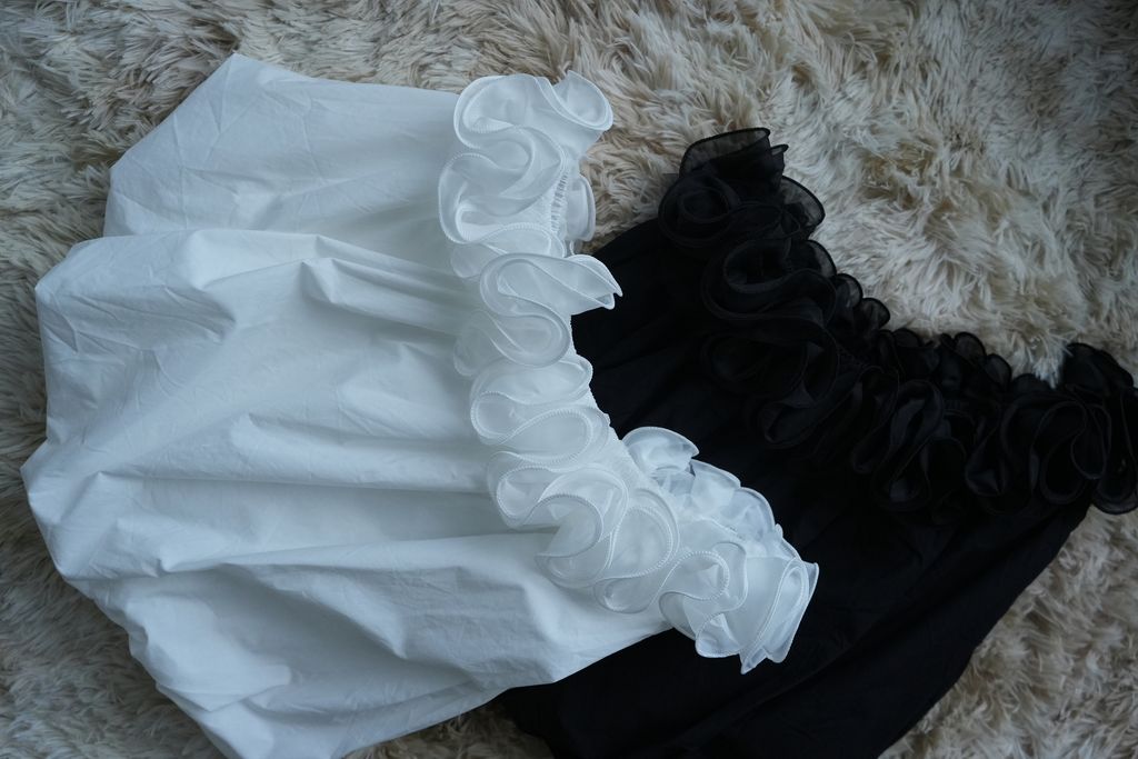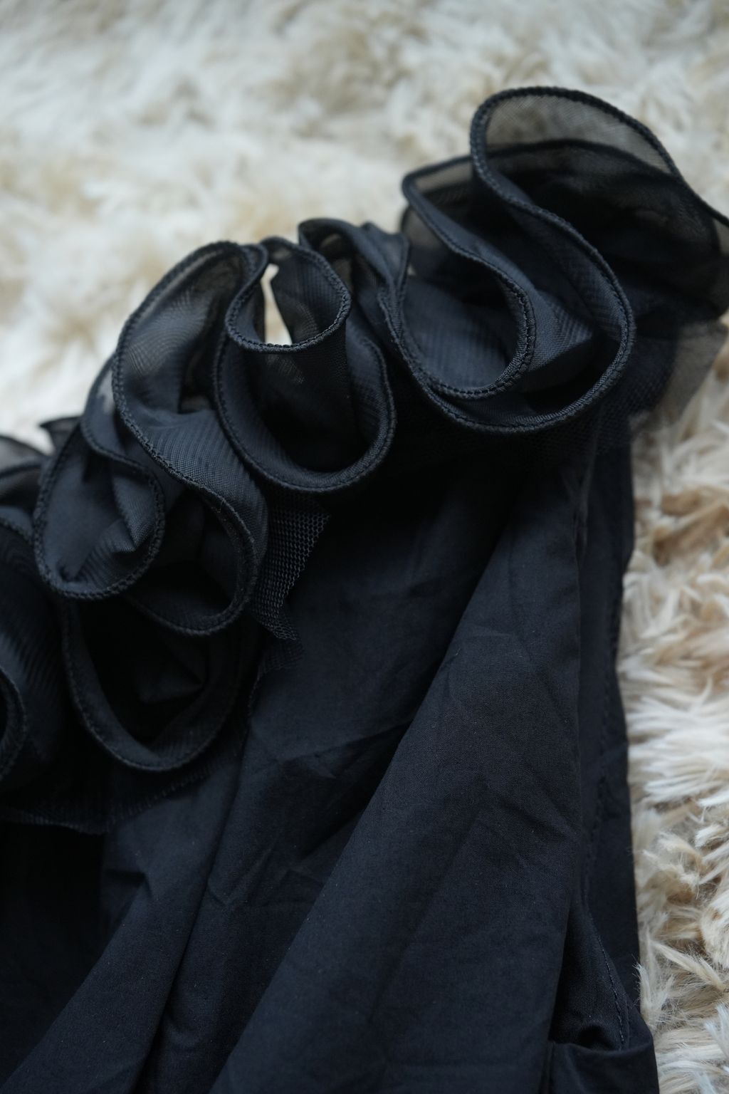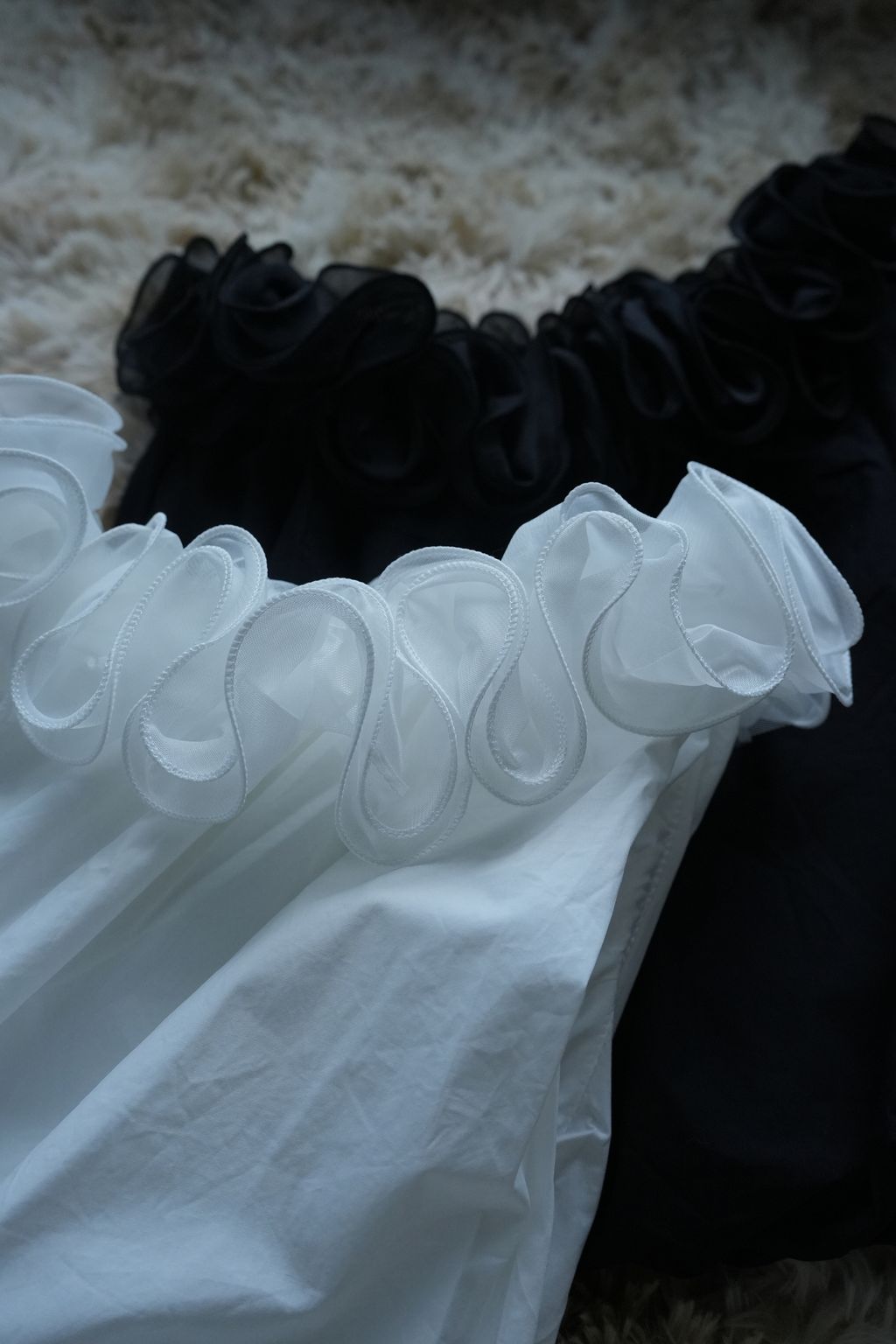 [C] 無腰人救星立體花朵單肩蓬蓬上衣|適S-XL*黑白現貨