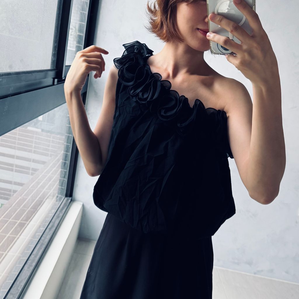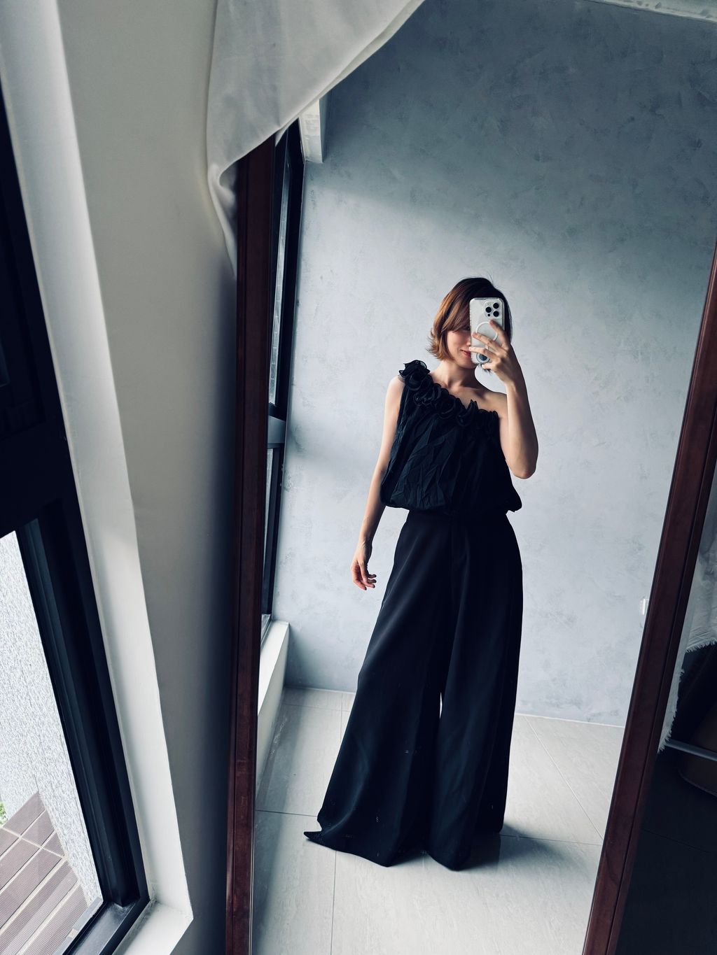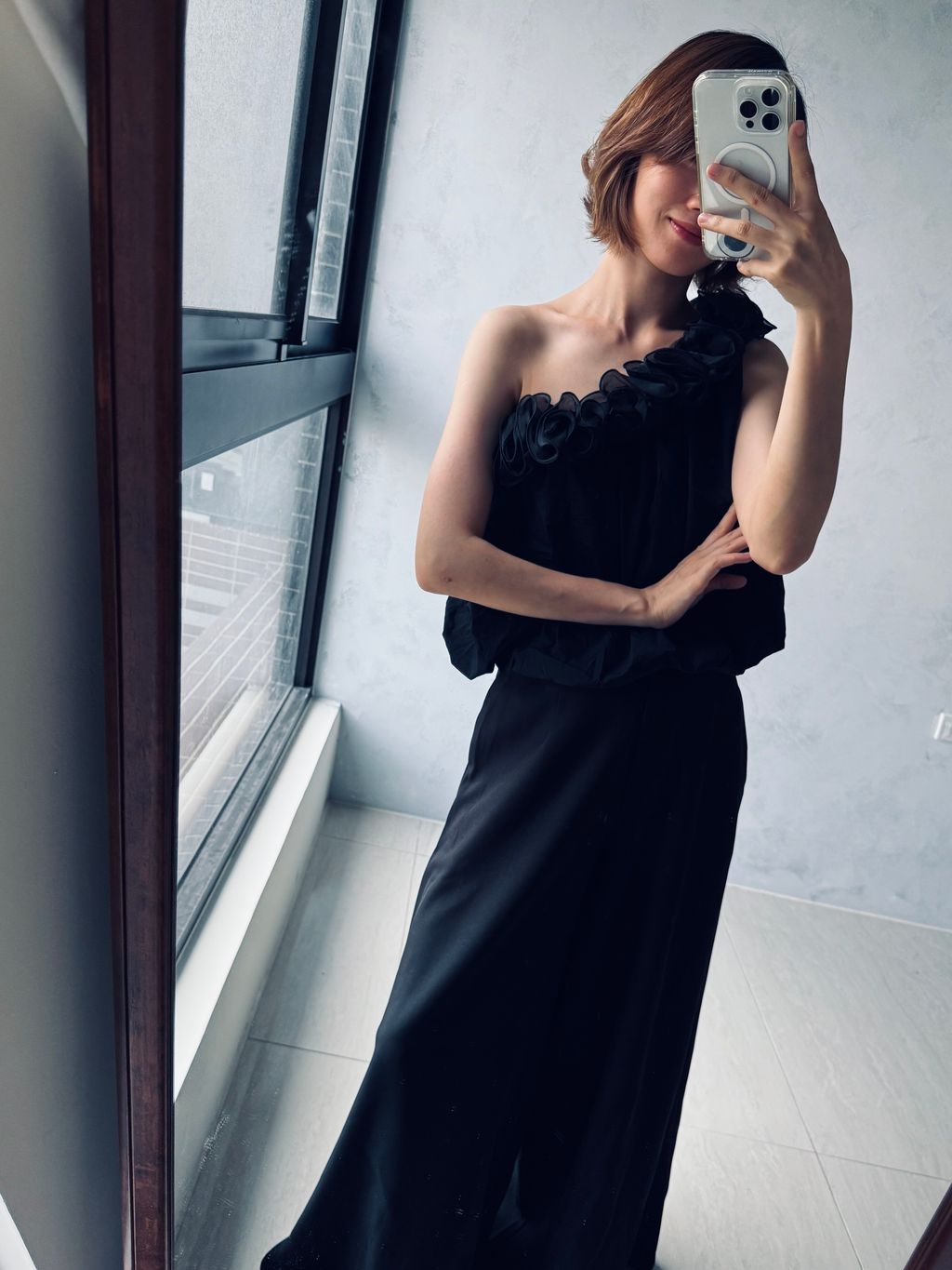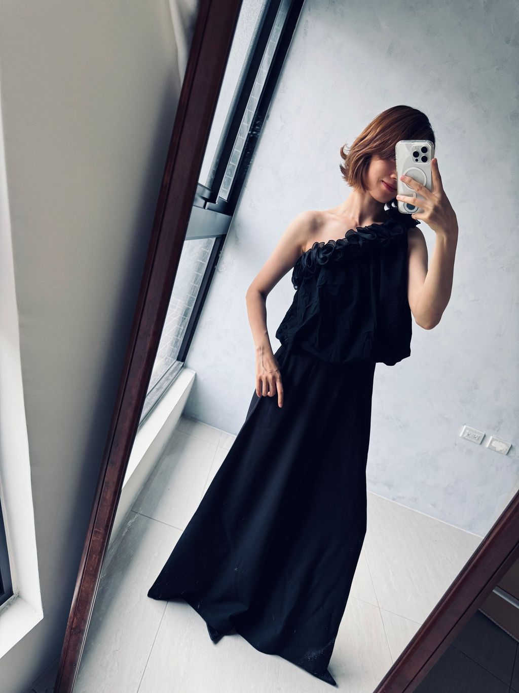 [C] 無腰人救星立體花朵單肩蓬蓬上衣|適S-XL*黑白現貨