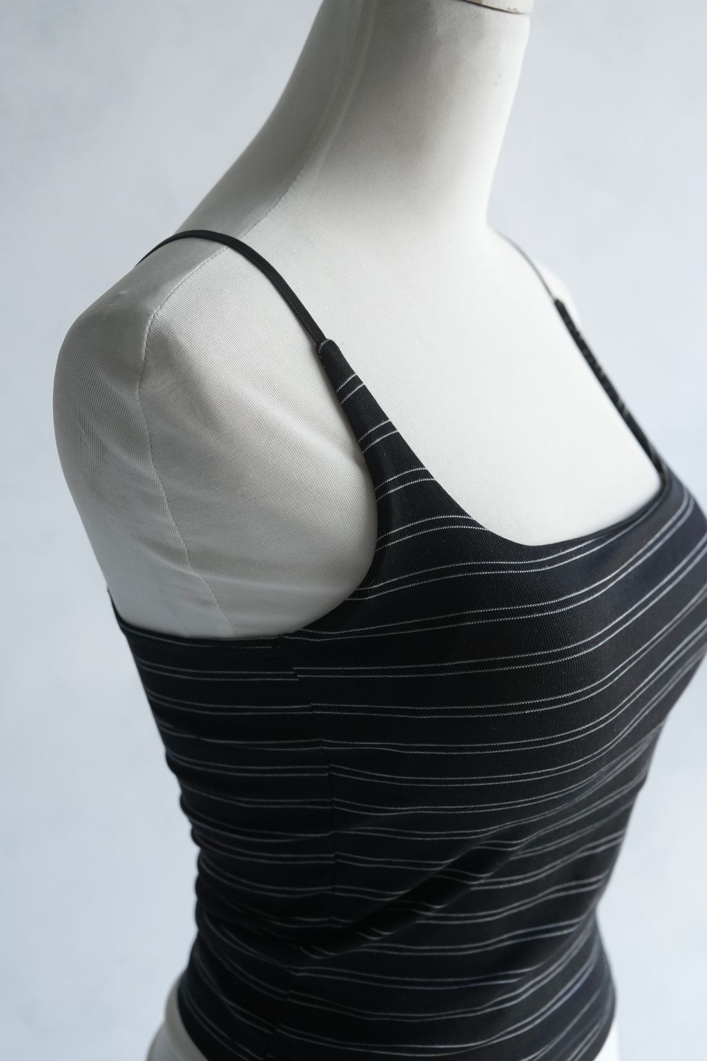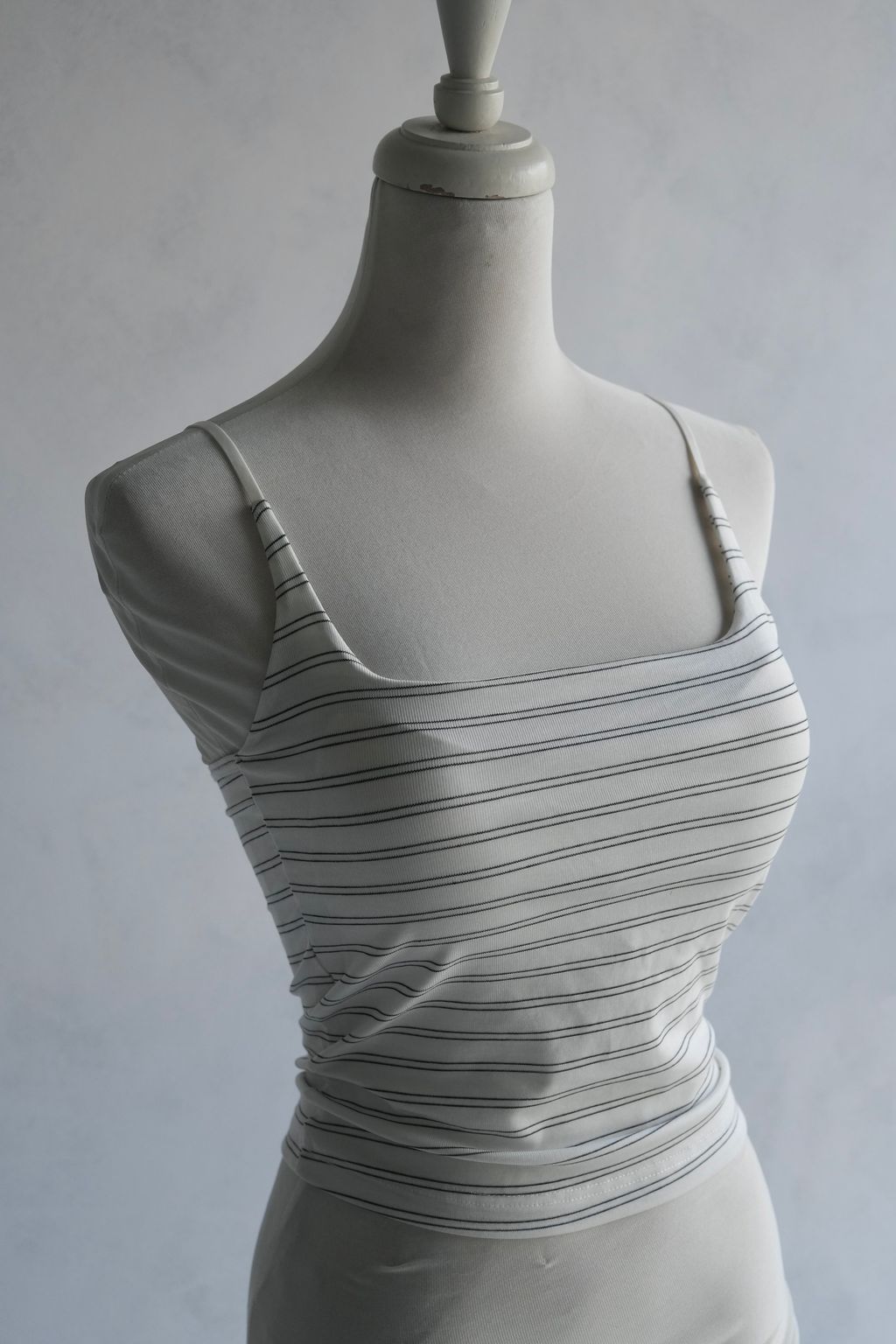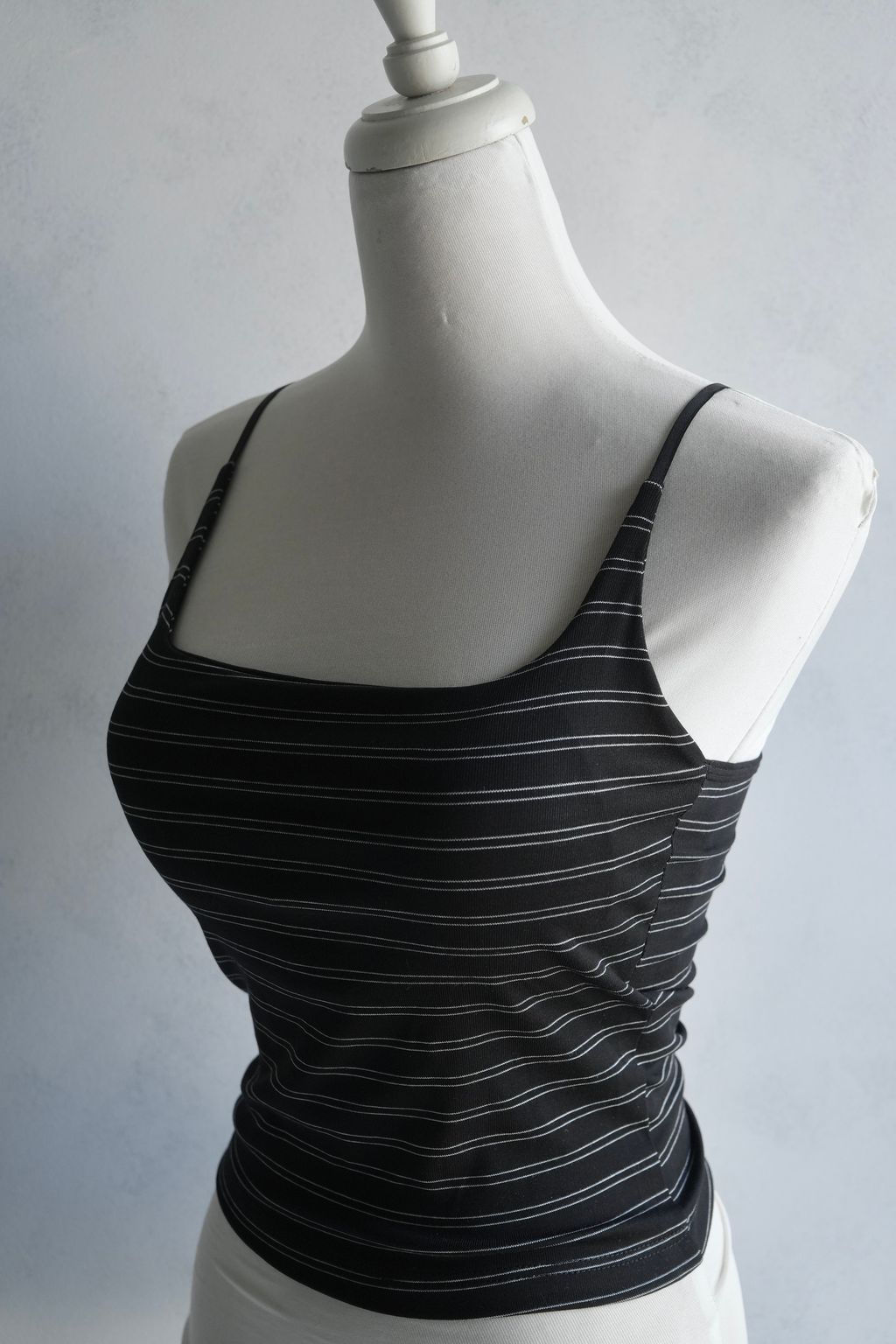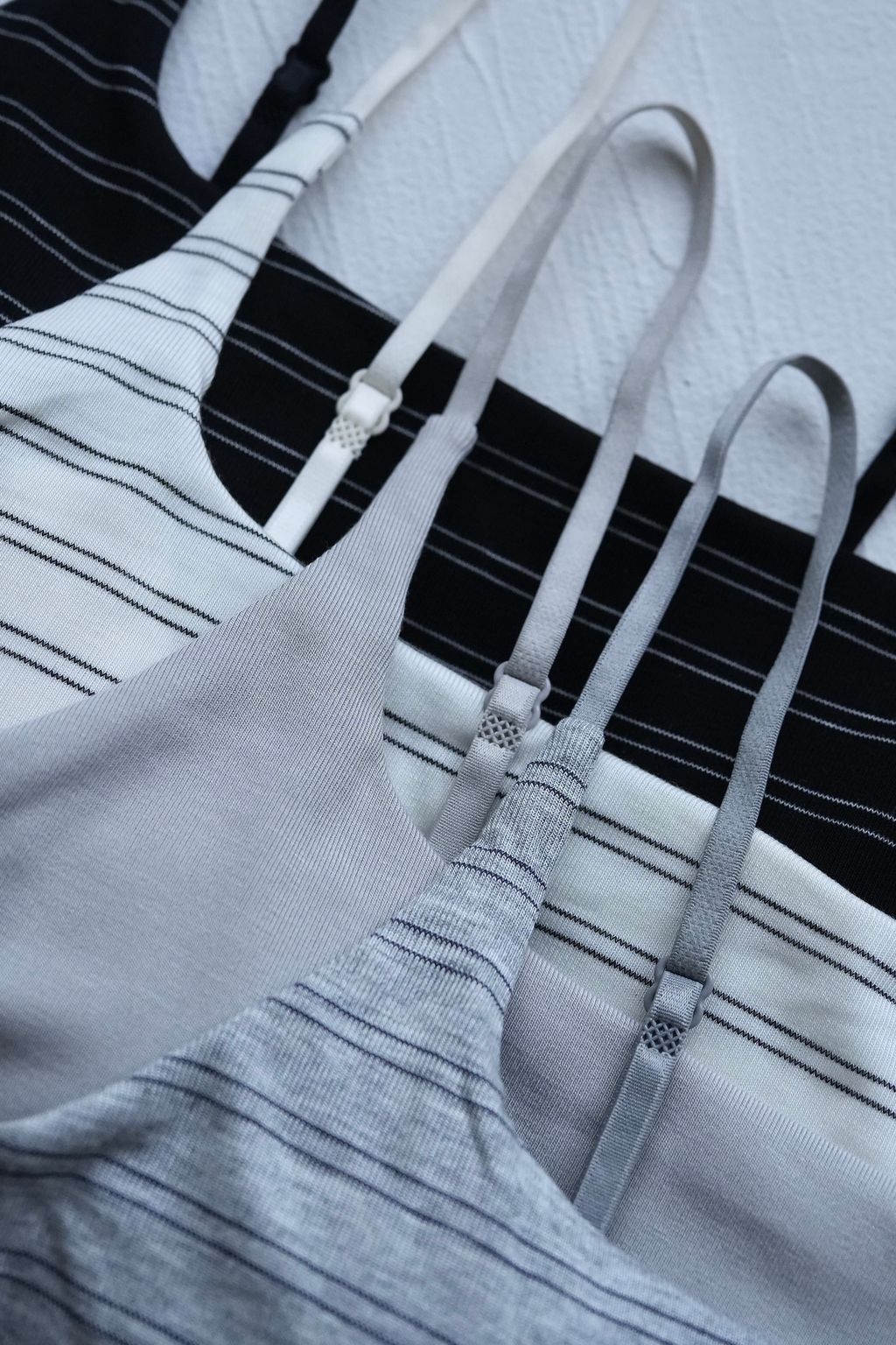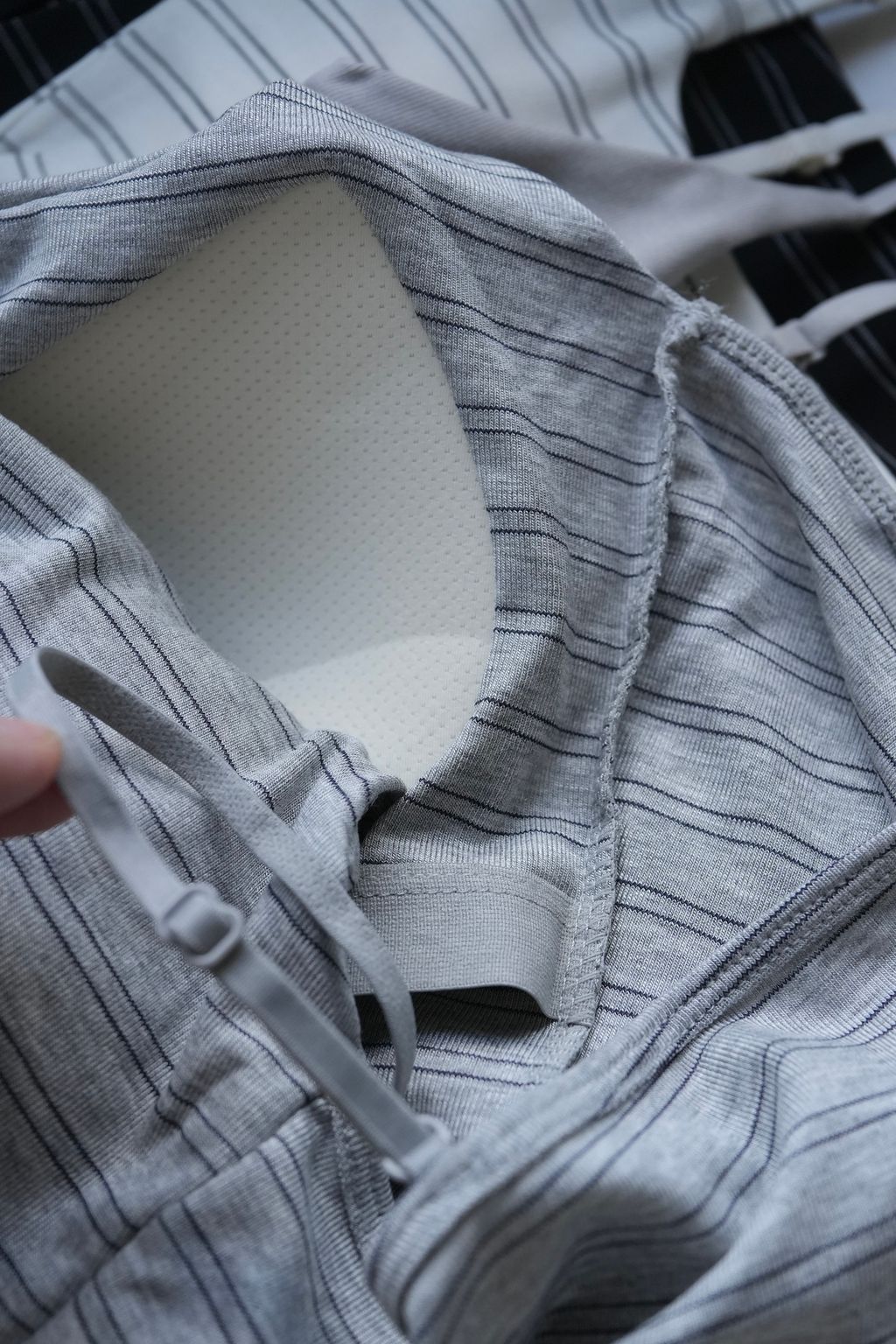 *注意⚠️因為她的布料柔韌服貼,讓領型很細緻美麗的同時,會有個一體兩面的缺點,就是「單穿」的時候,胸圍83cm以上或大胸朋朋穿「淺色」在側邊會有機率看到胸墊邊緣形狀(例如我拍白條紋的側邊、阿白胸圍84cm的效果)