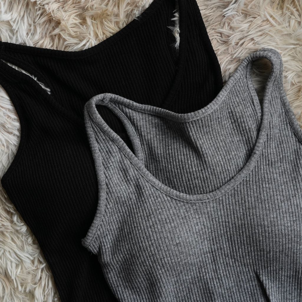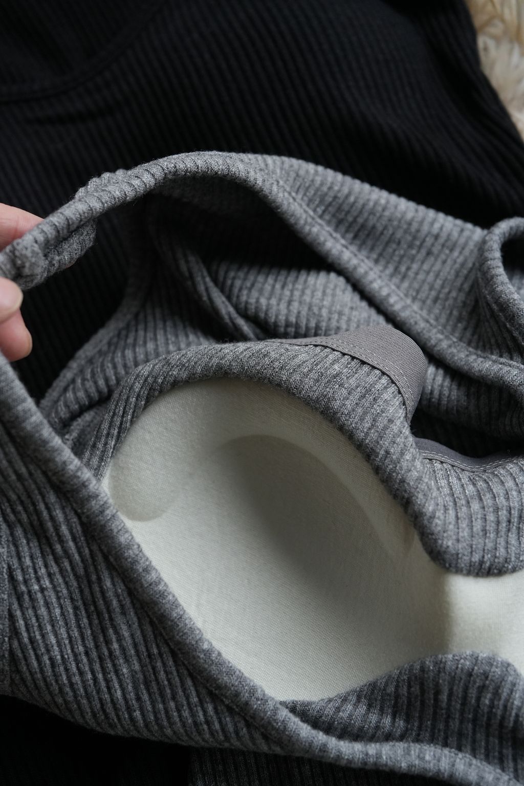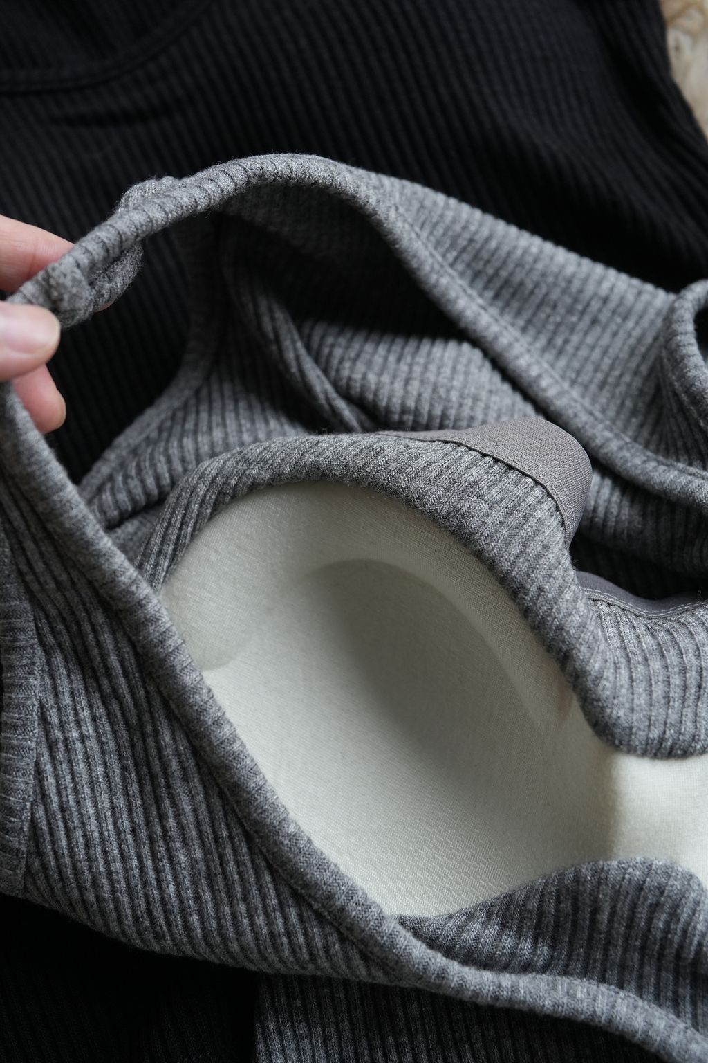 [C] 加厚BraTop*簡約螺紋針織坑條紋不露背遮副乳加厚背心|黑灰
