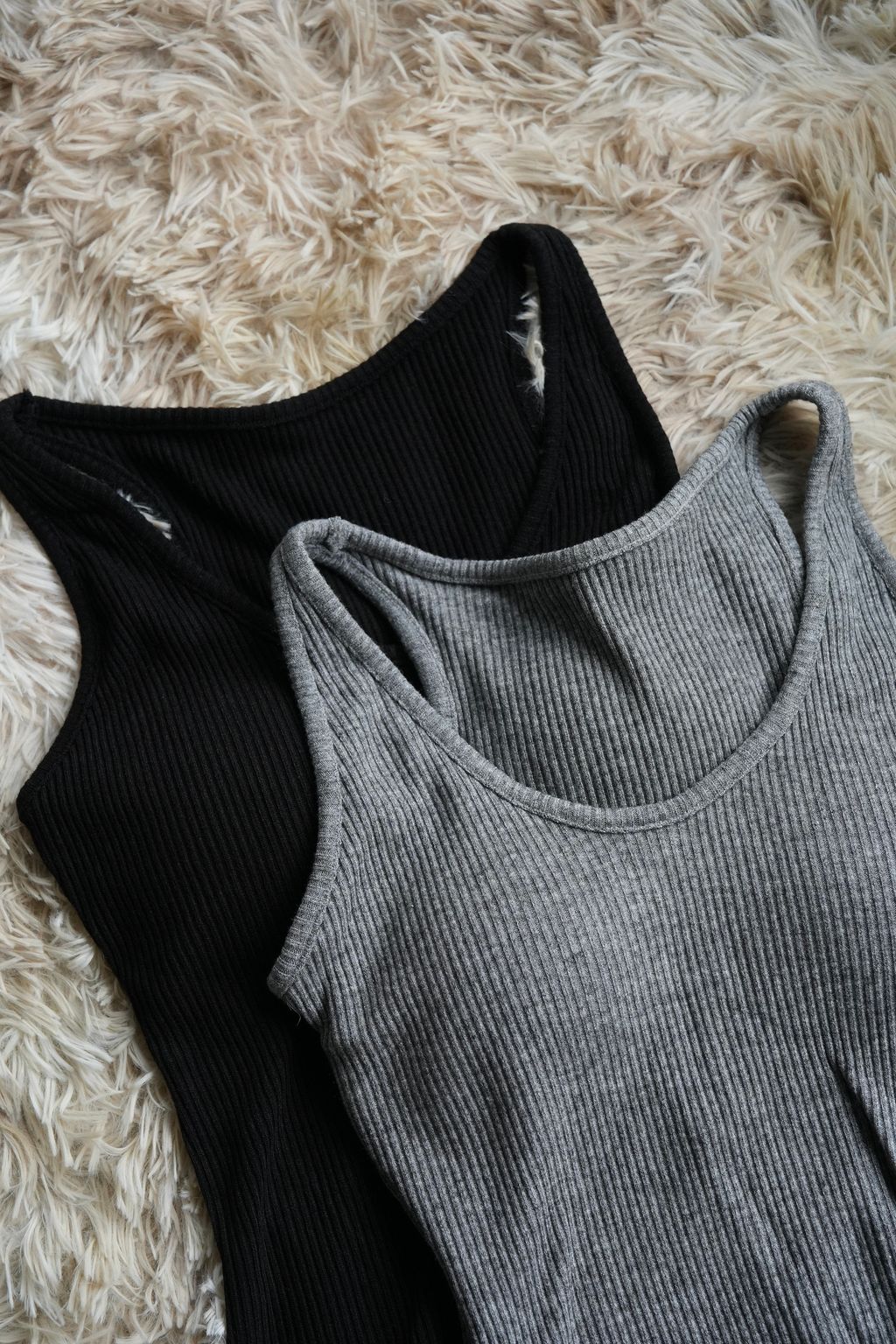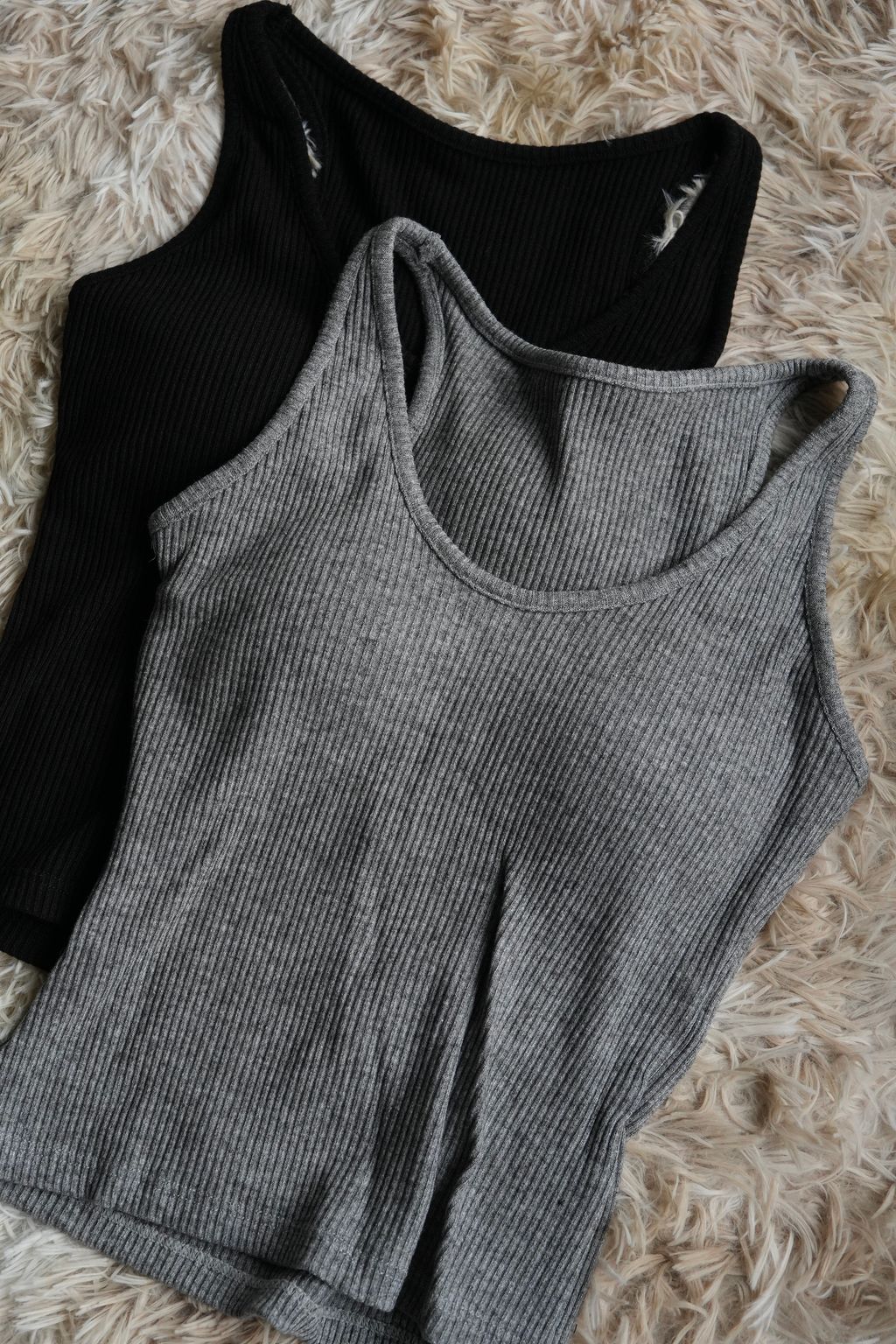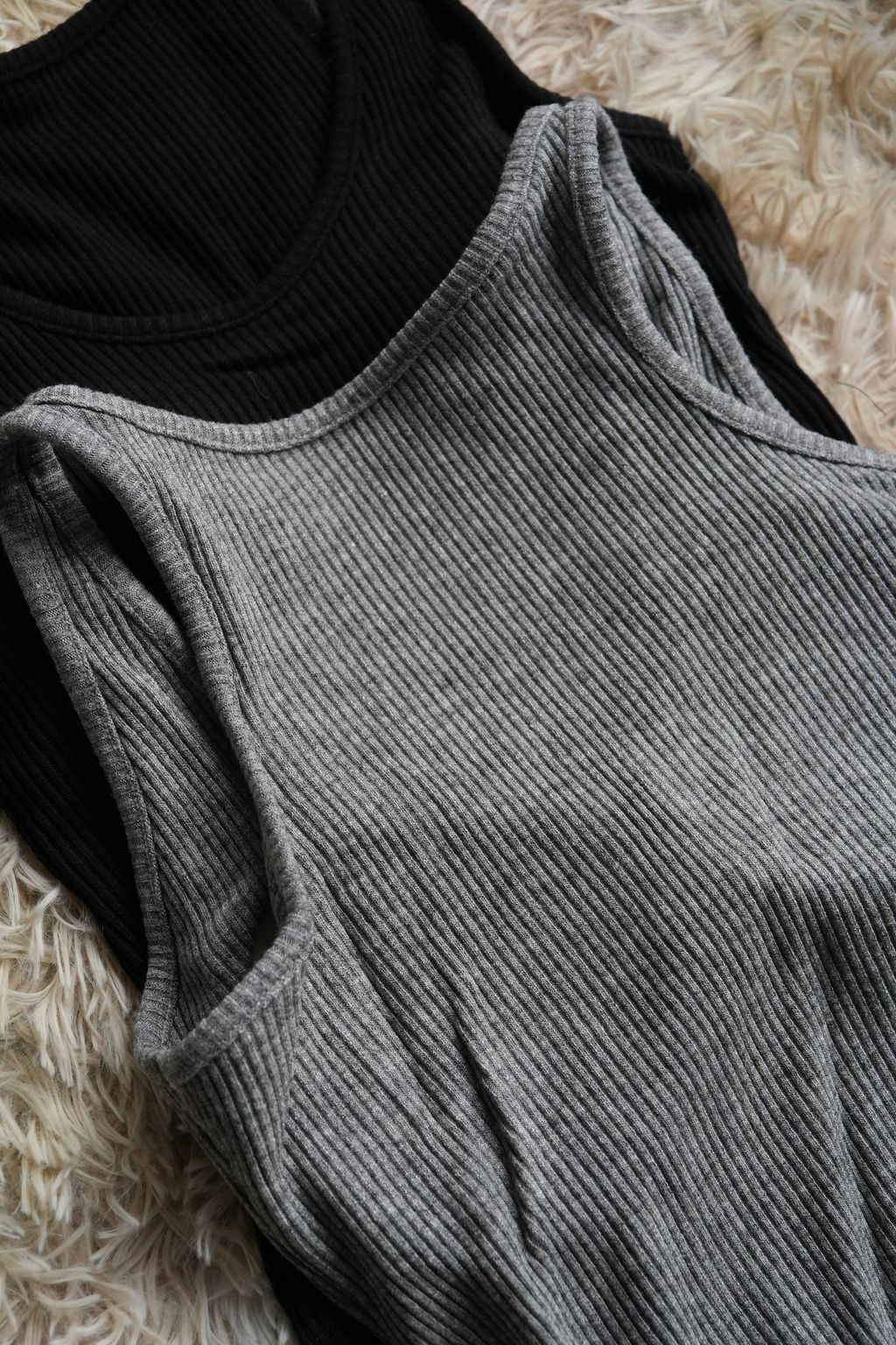 [C] 加厚BraTop*簡約螺紋針織坑條紋不露背遮副乳加厚背心|黑灰