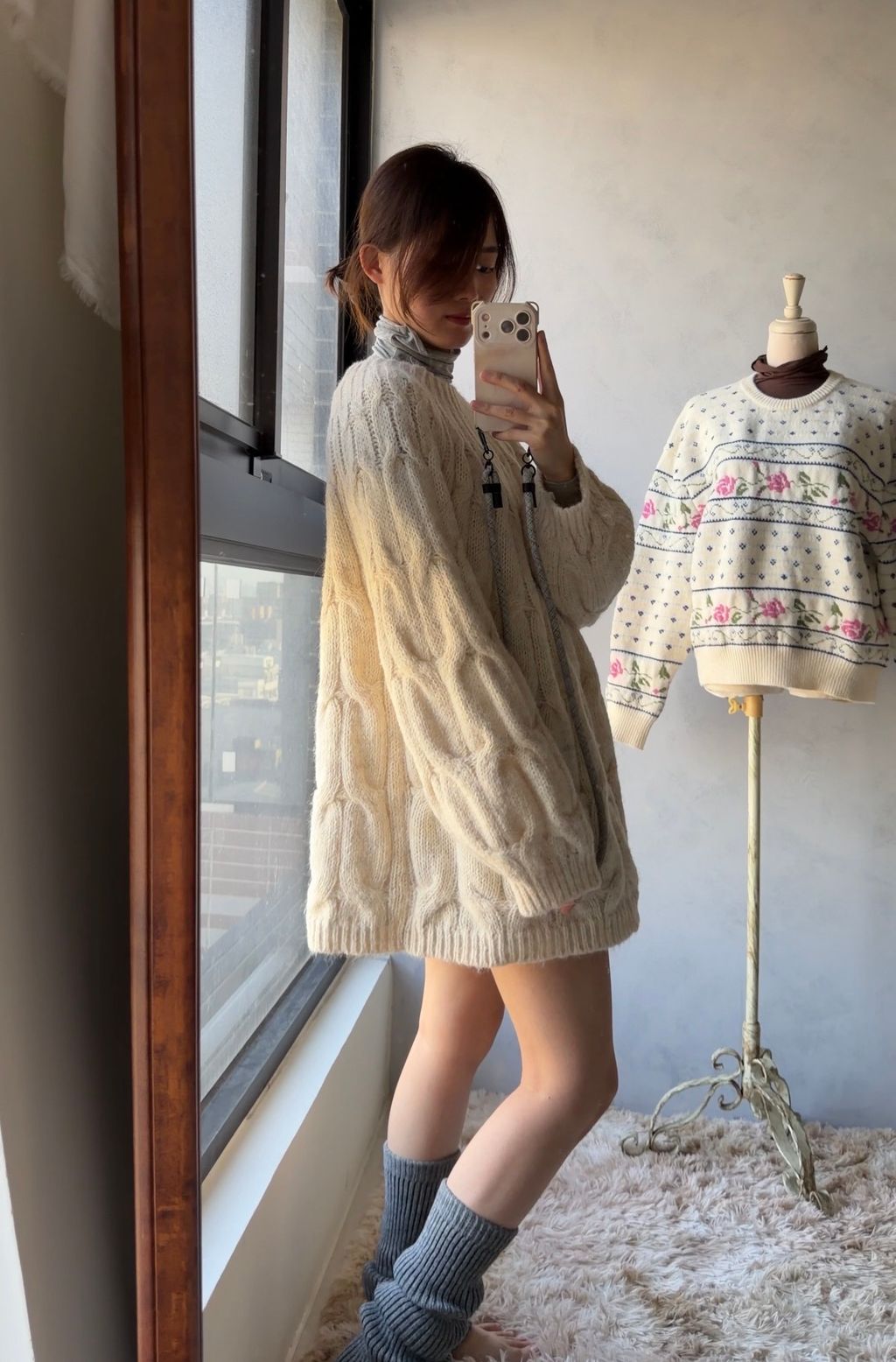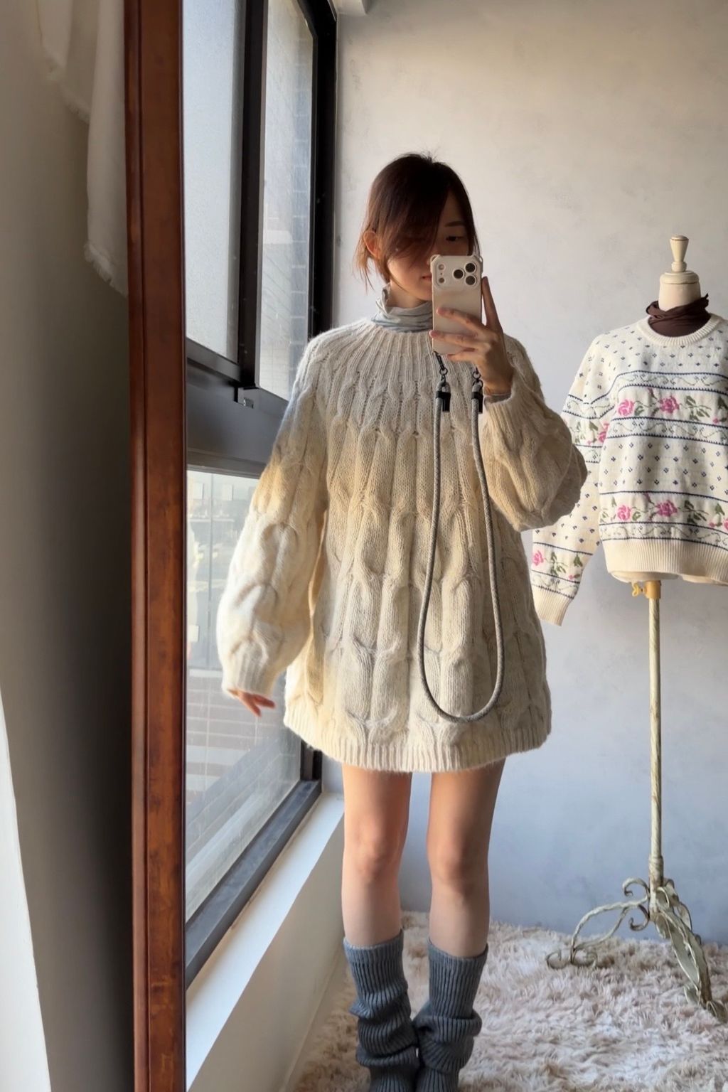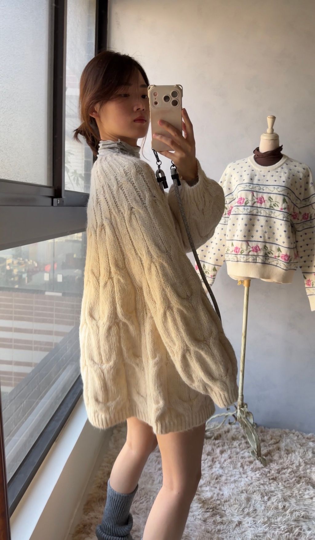 [C] 顯嬌小版型*軟軟鬆鬆大麻花針織蓬蓬袖長版毛衣洋裝|適S-XL
