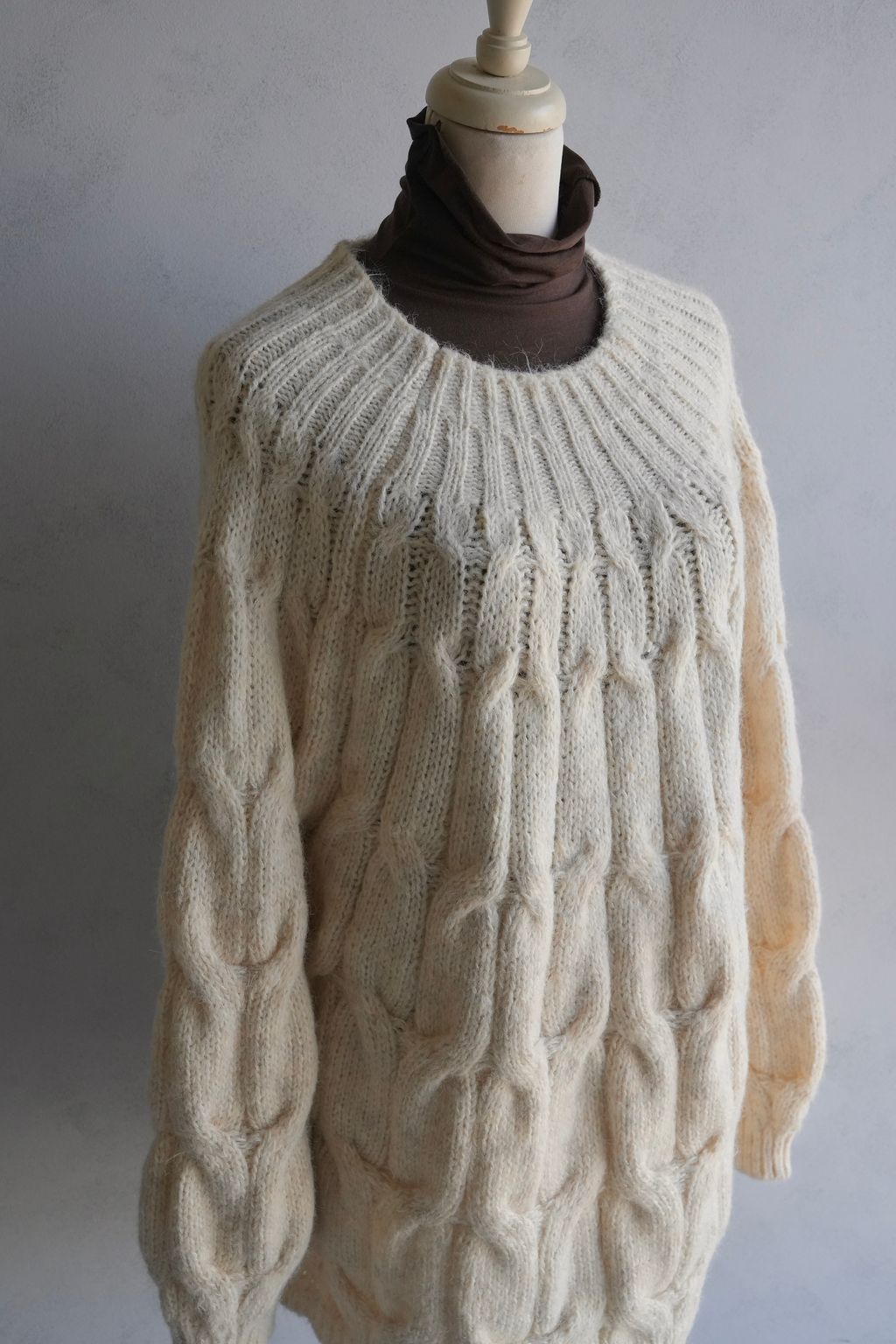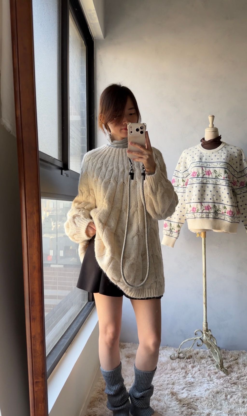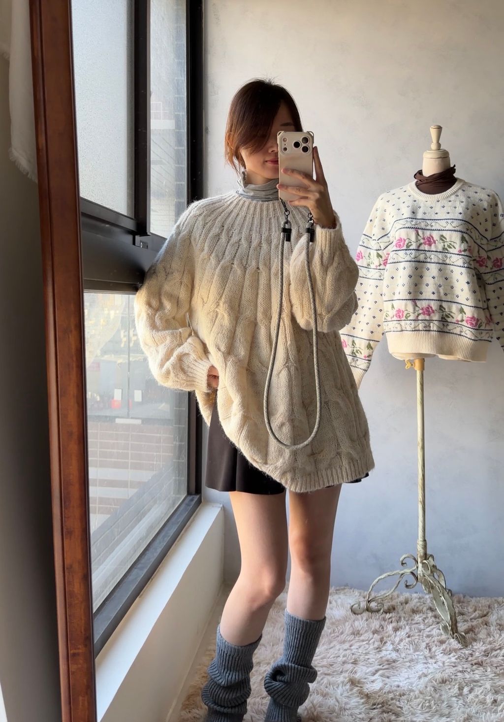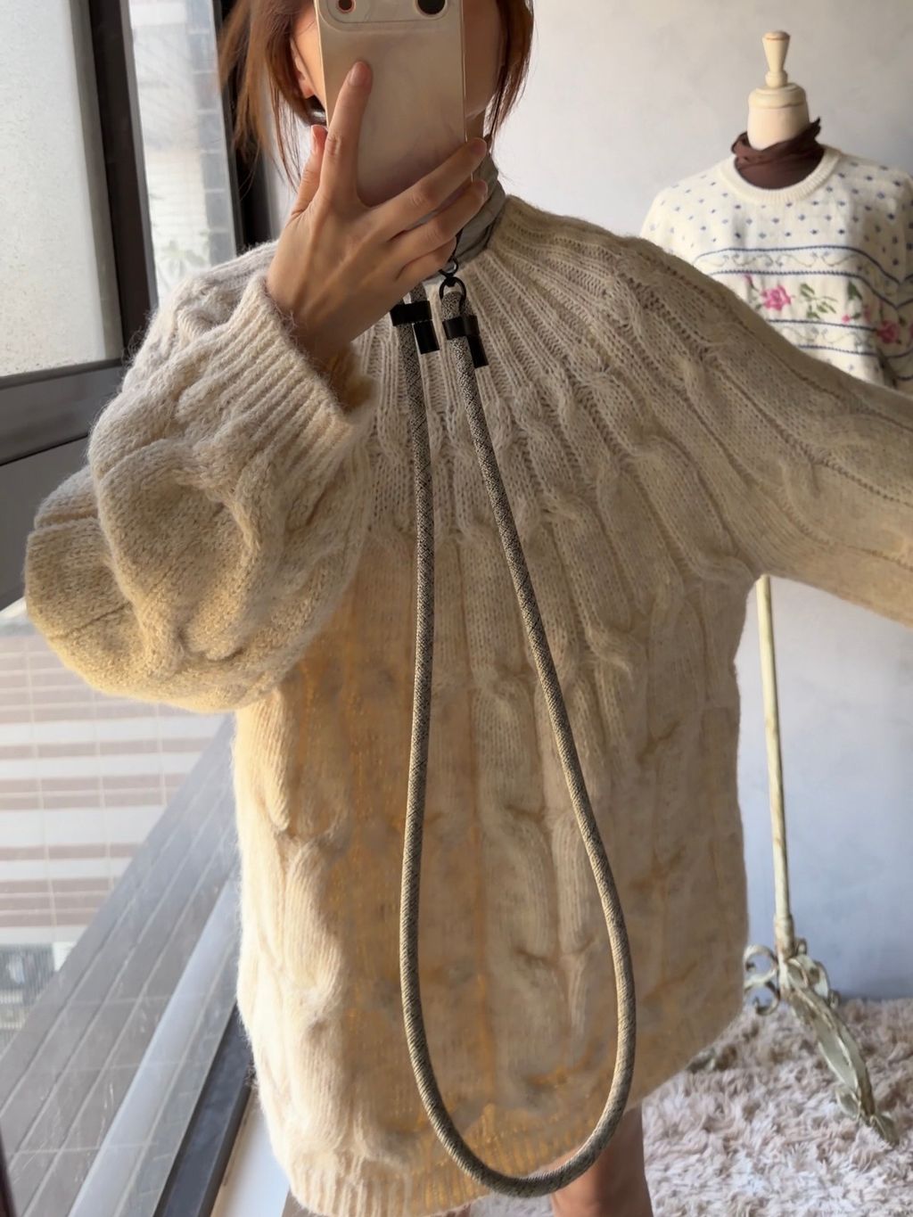 [C] 顯嬌小版型*軟軟鬆鬆大麻花針織蓬蓬袖長版毛衣洋裝|適S-XL