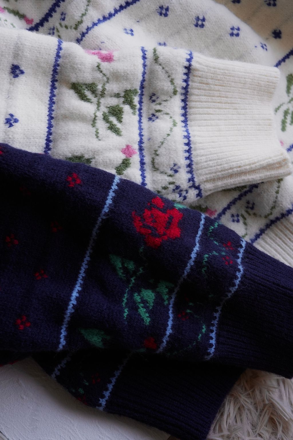 [C] 重磅高質感圖騰玫瑰花園雙面鉤織毛衣|2色*寬鬆版型