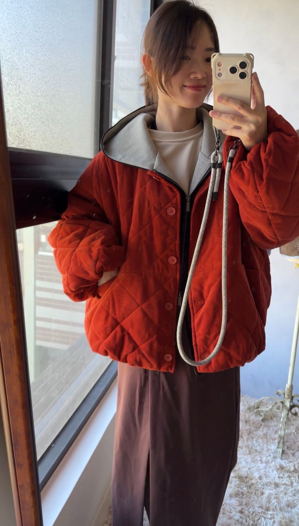 的飽和蘋果紅色鋪棉外套😍🥰😍🥰