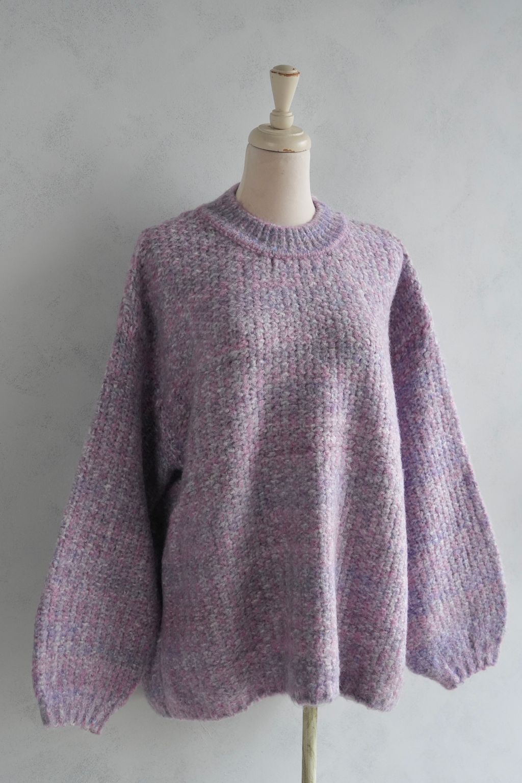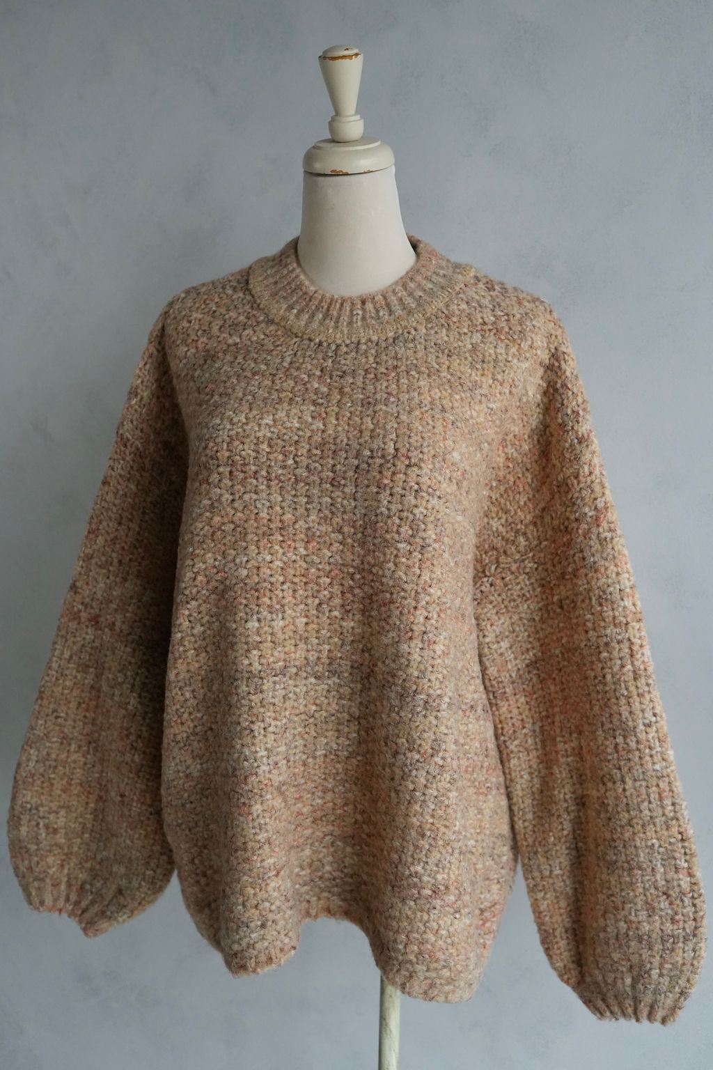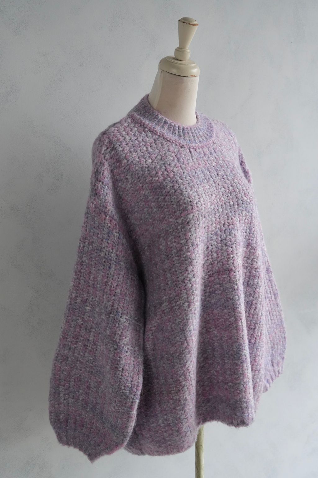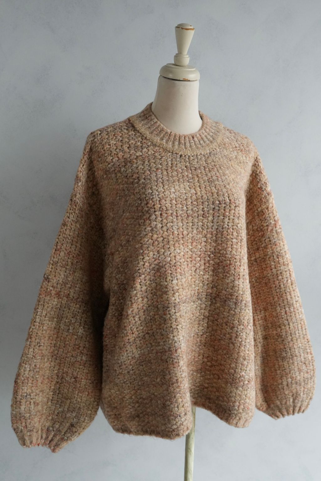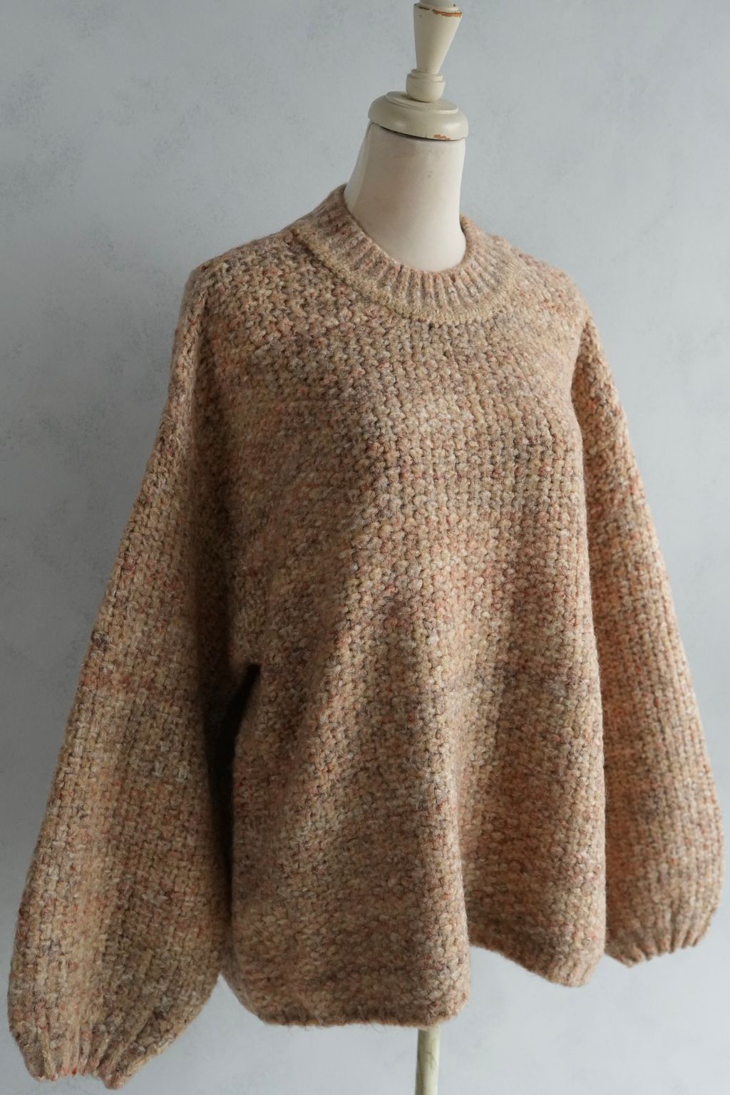 [C] 粗針鉤織美麗混色澎澎袖寬鬆毛衣|2色