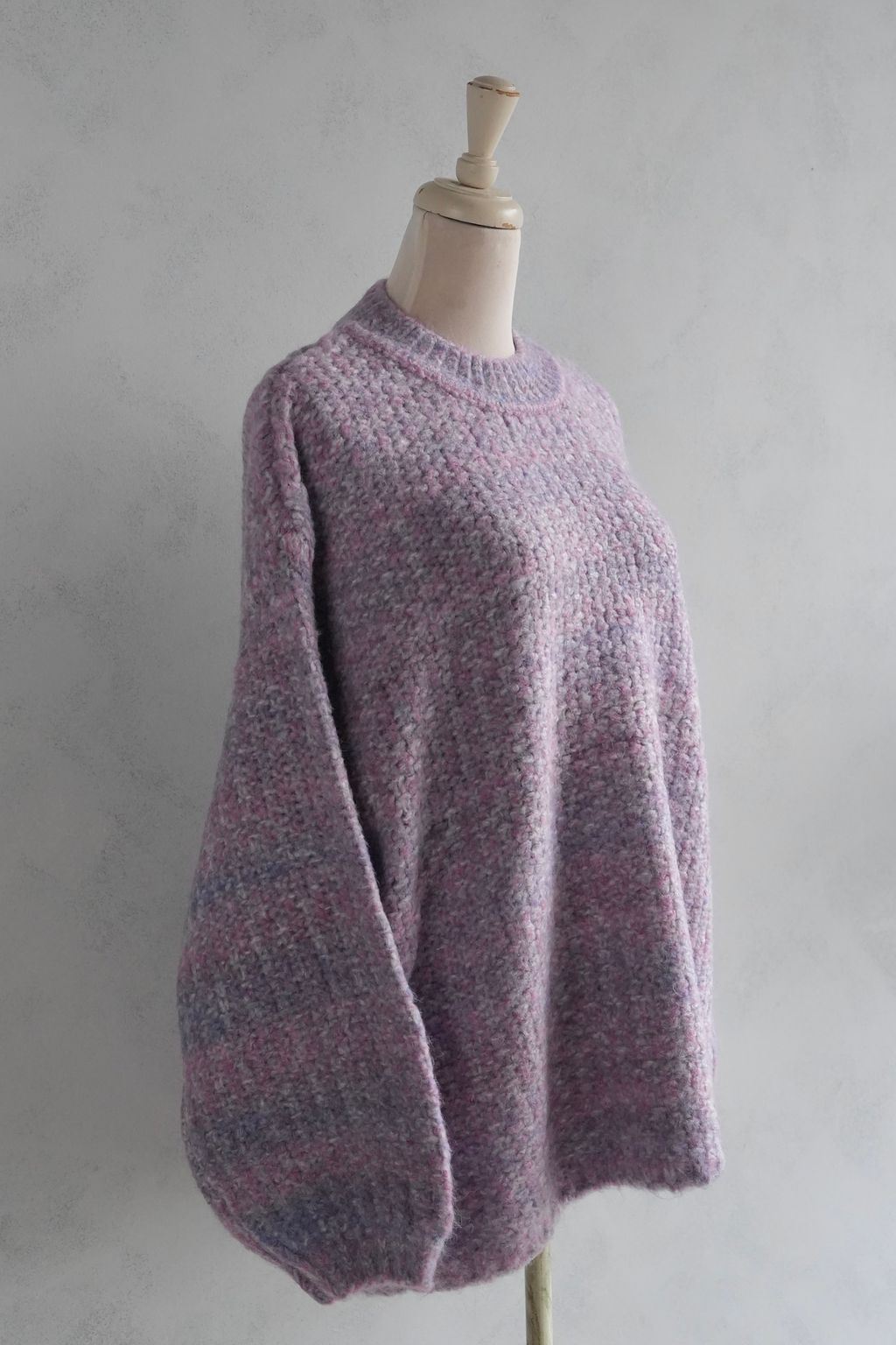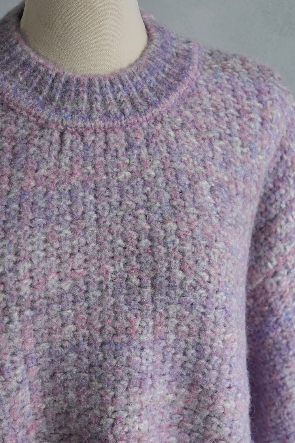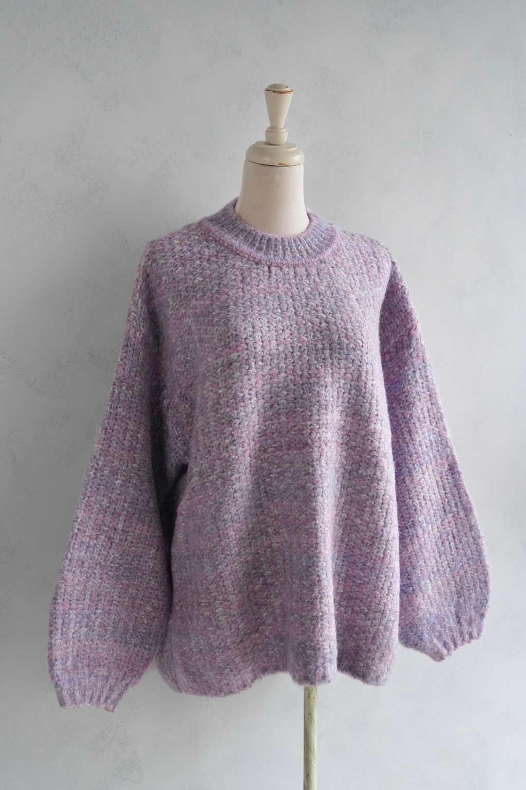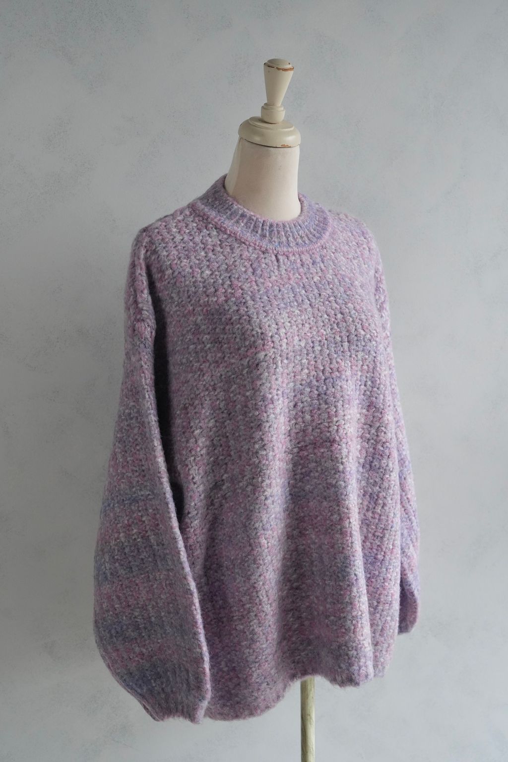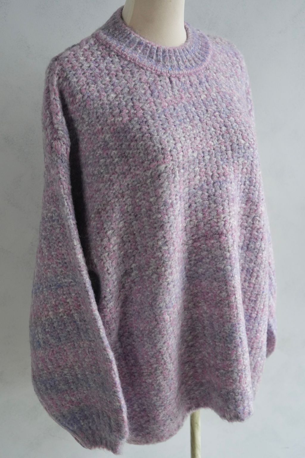 [C] 粗針鉤織美麗混色澎澎袖寬鬆毛衣|2色