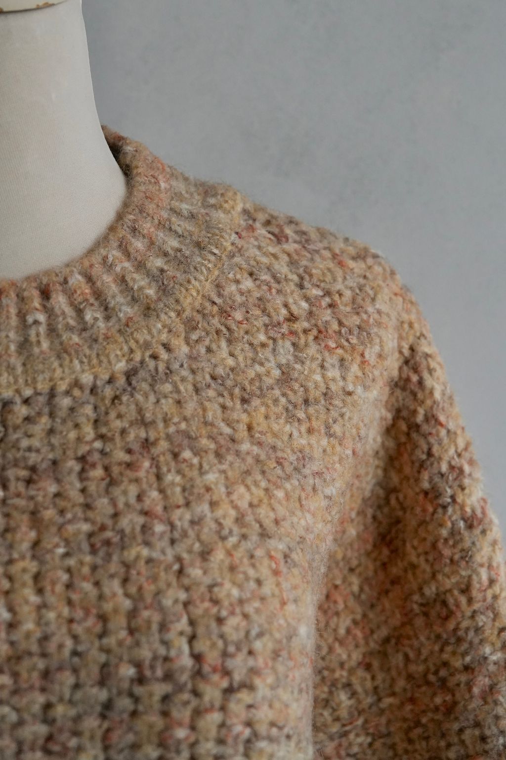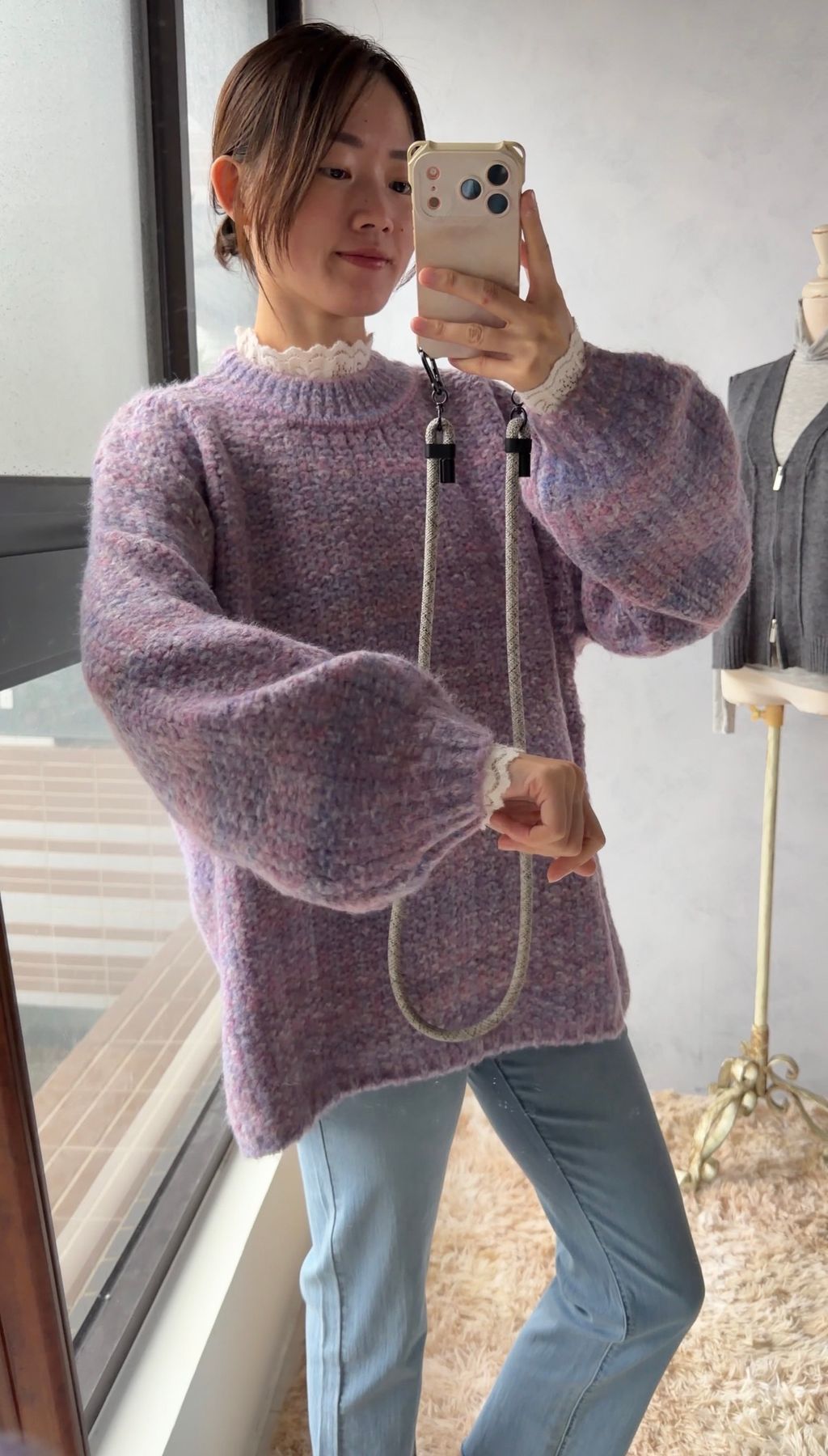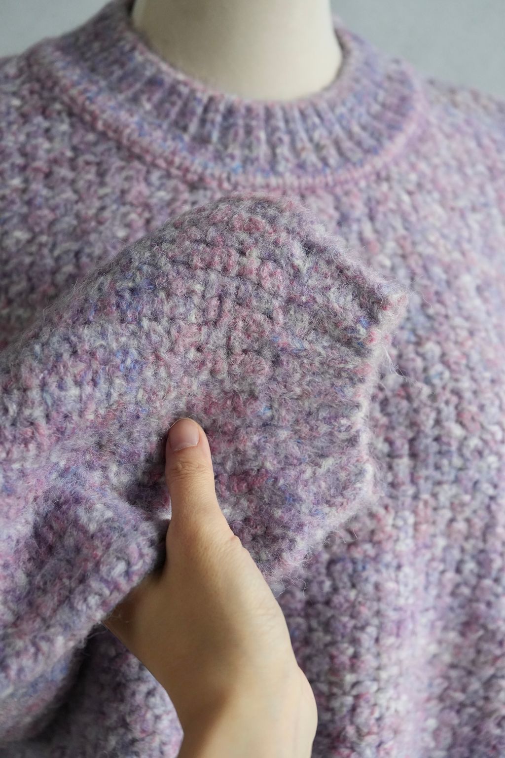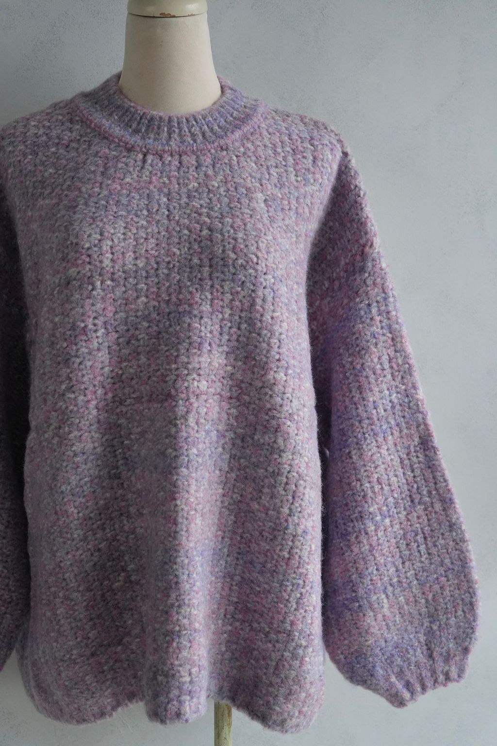 [C] 粗針鉤織美麗混色澎澎袖寬鬆毛衣|2色