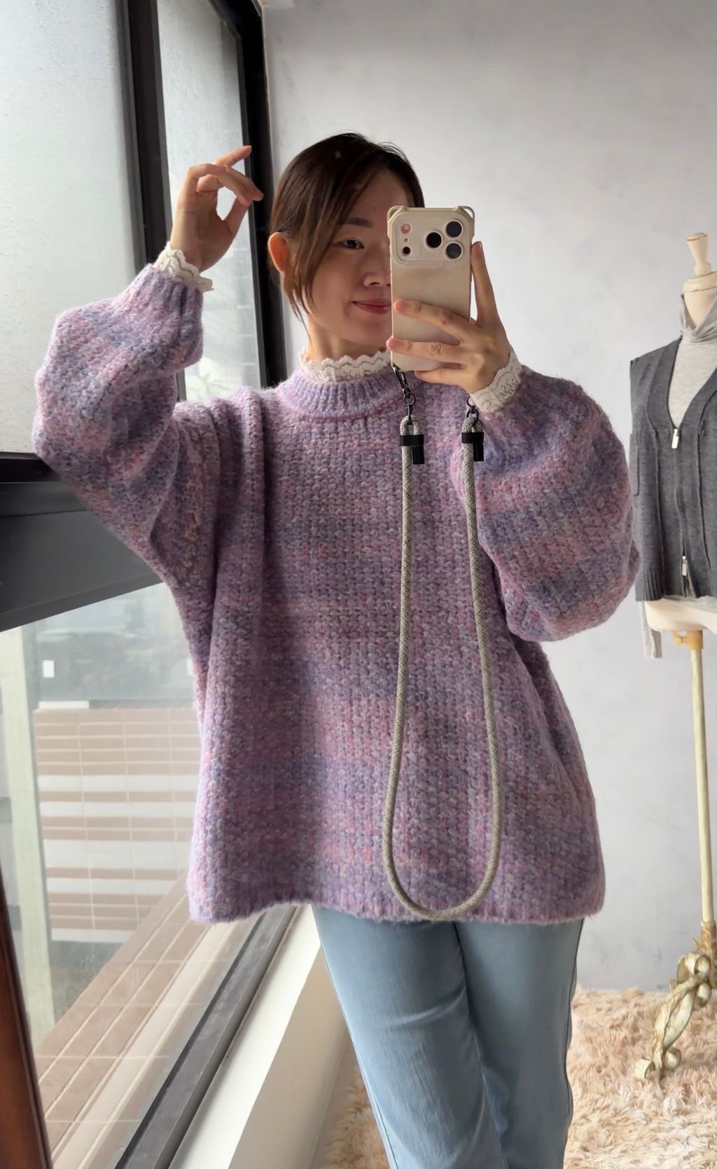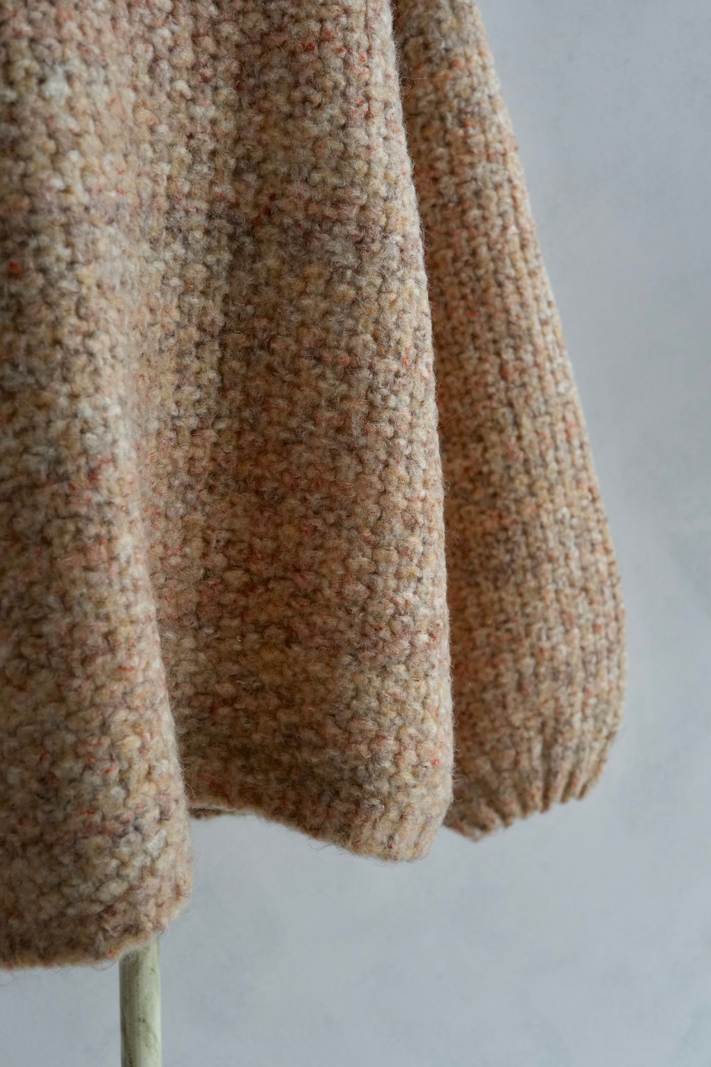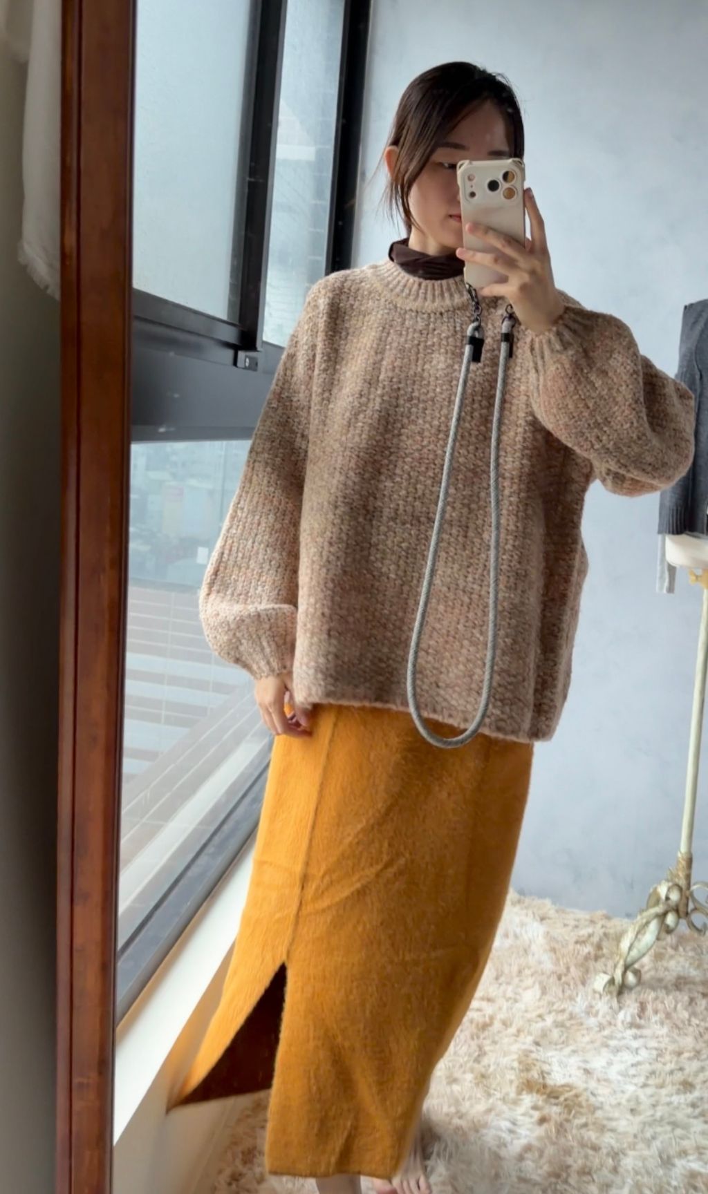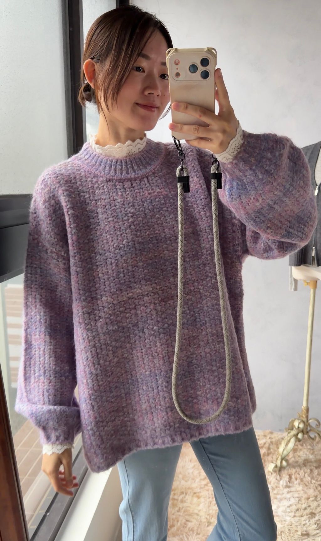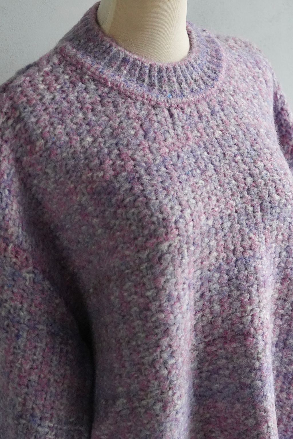 [C] 粗針鉤織美麗混色澎澎袖寬鬆毛衣|2色