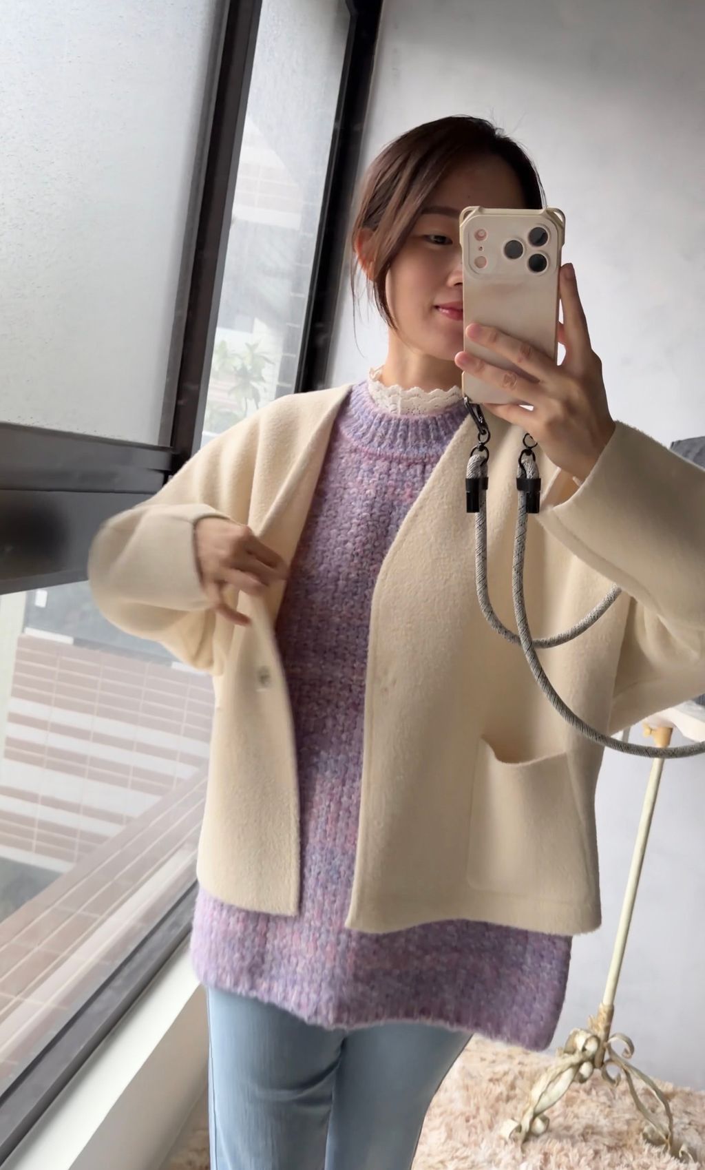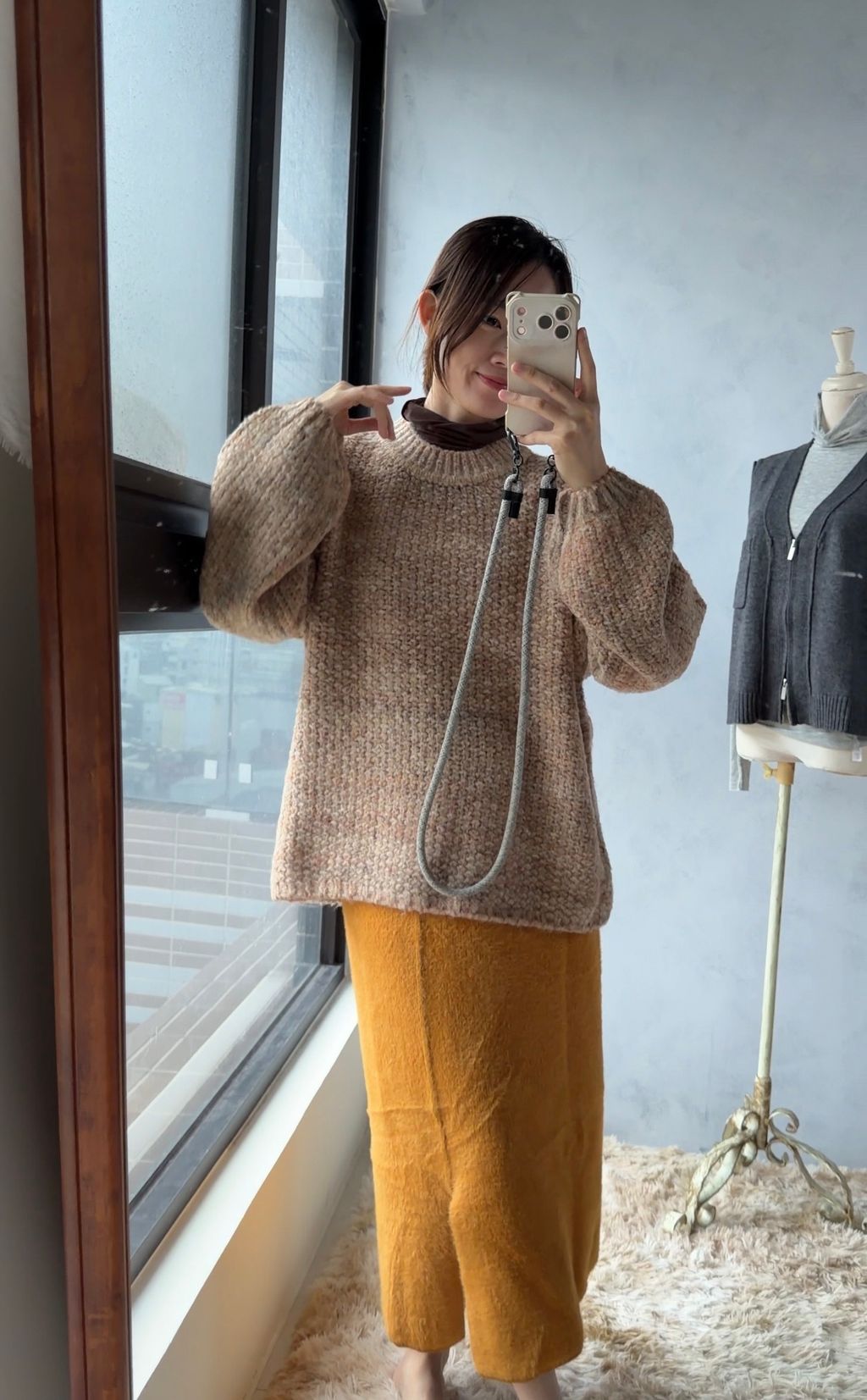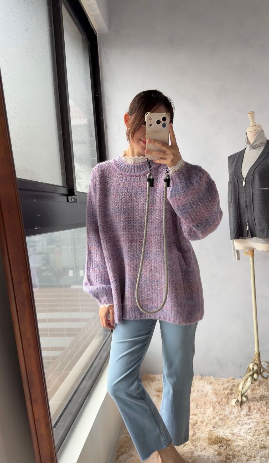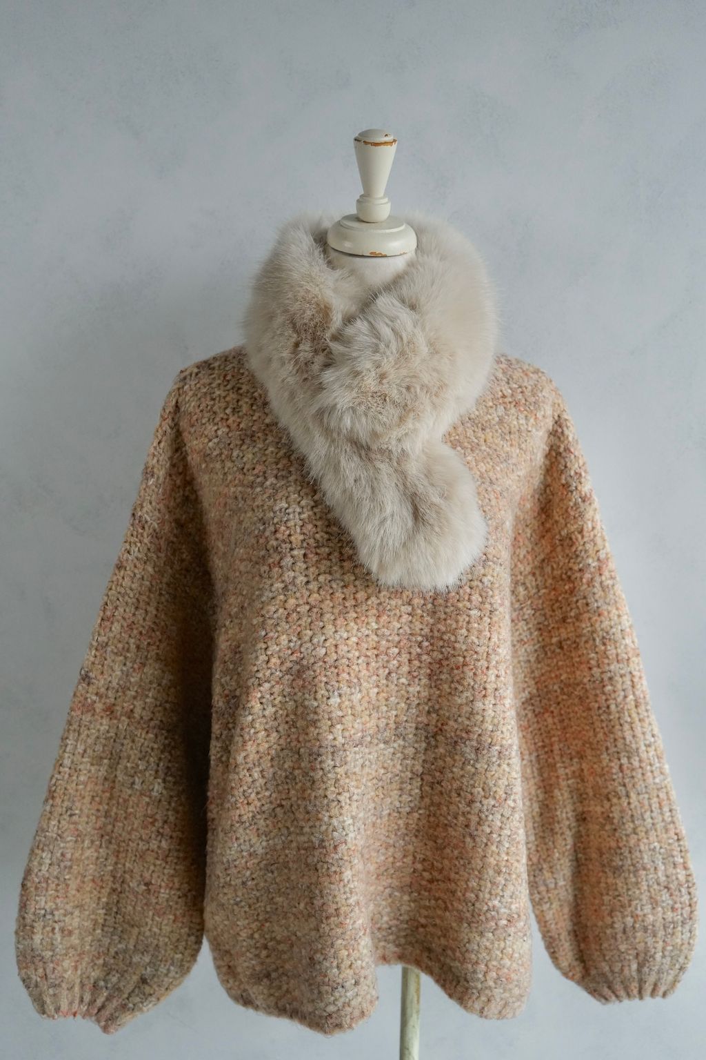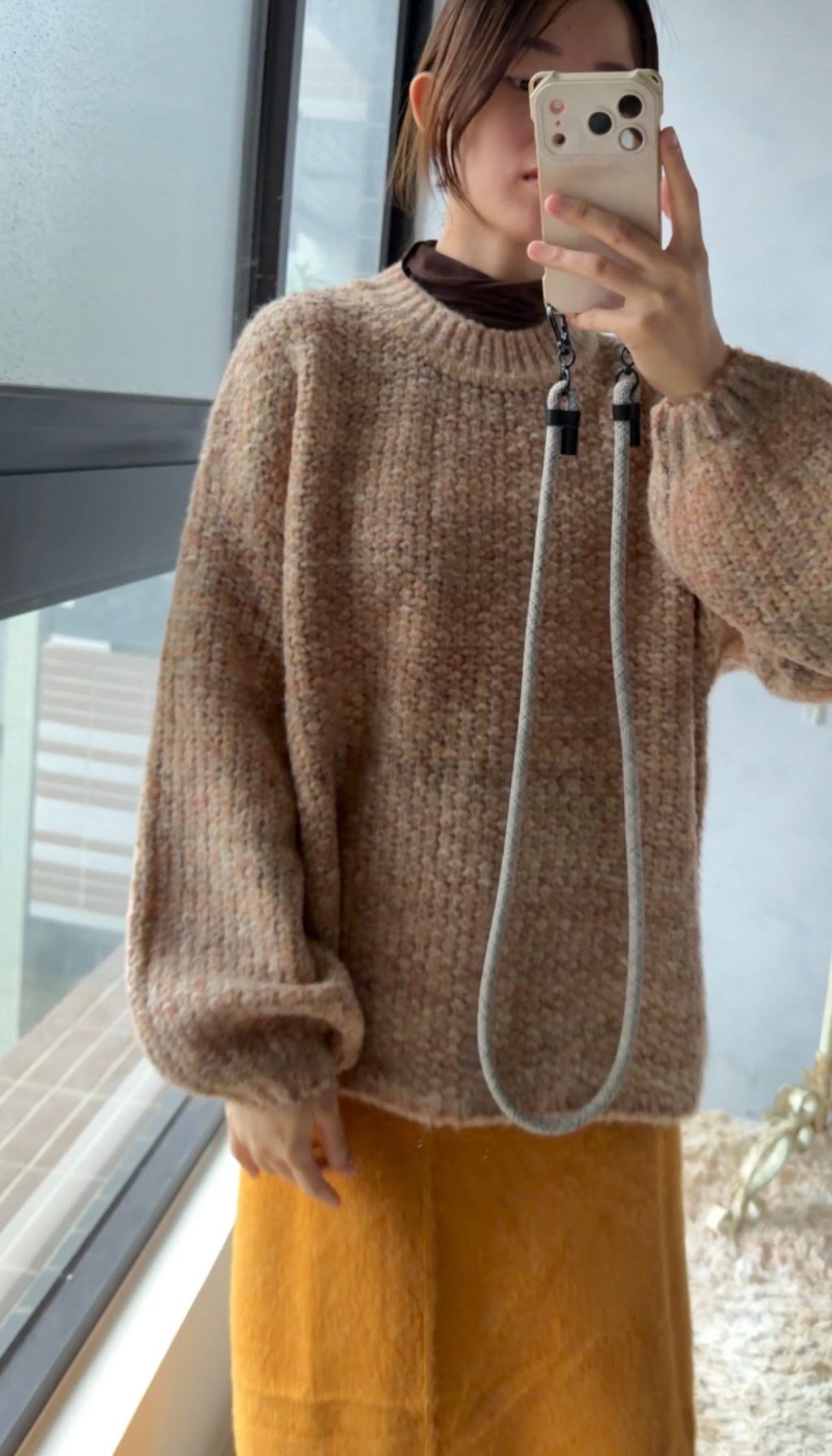 [C] 粗針鉤織美麗混色澎澎袖寬鬆毛衣|2色