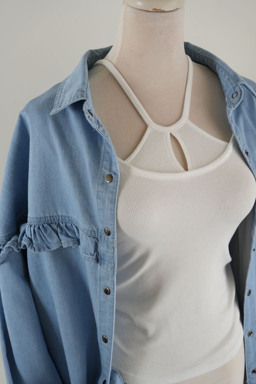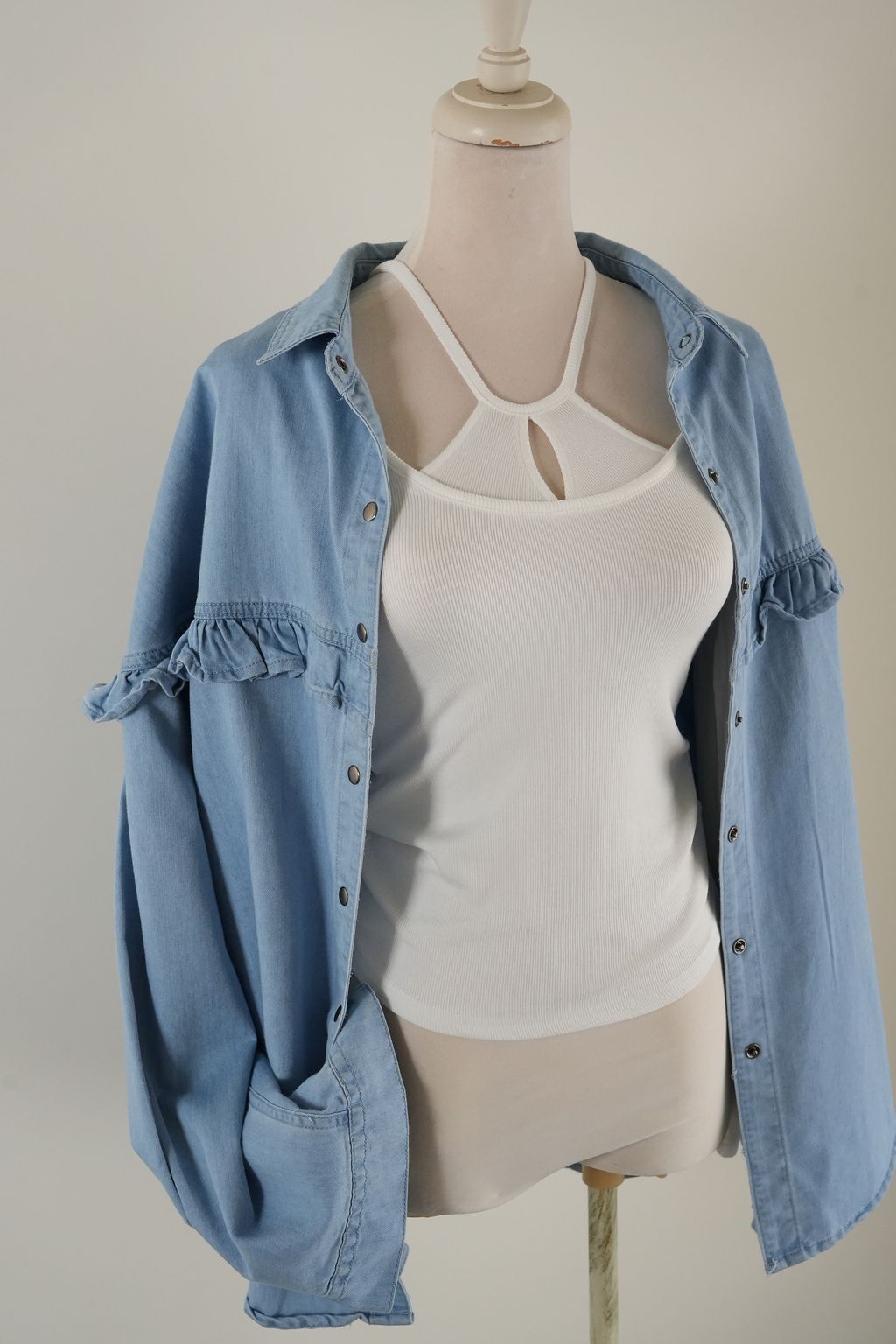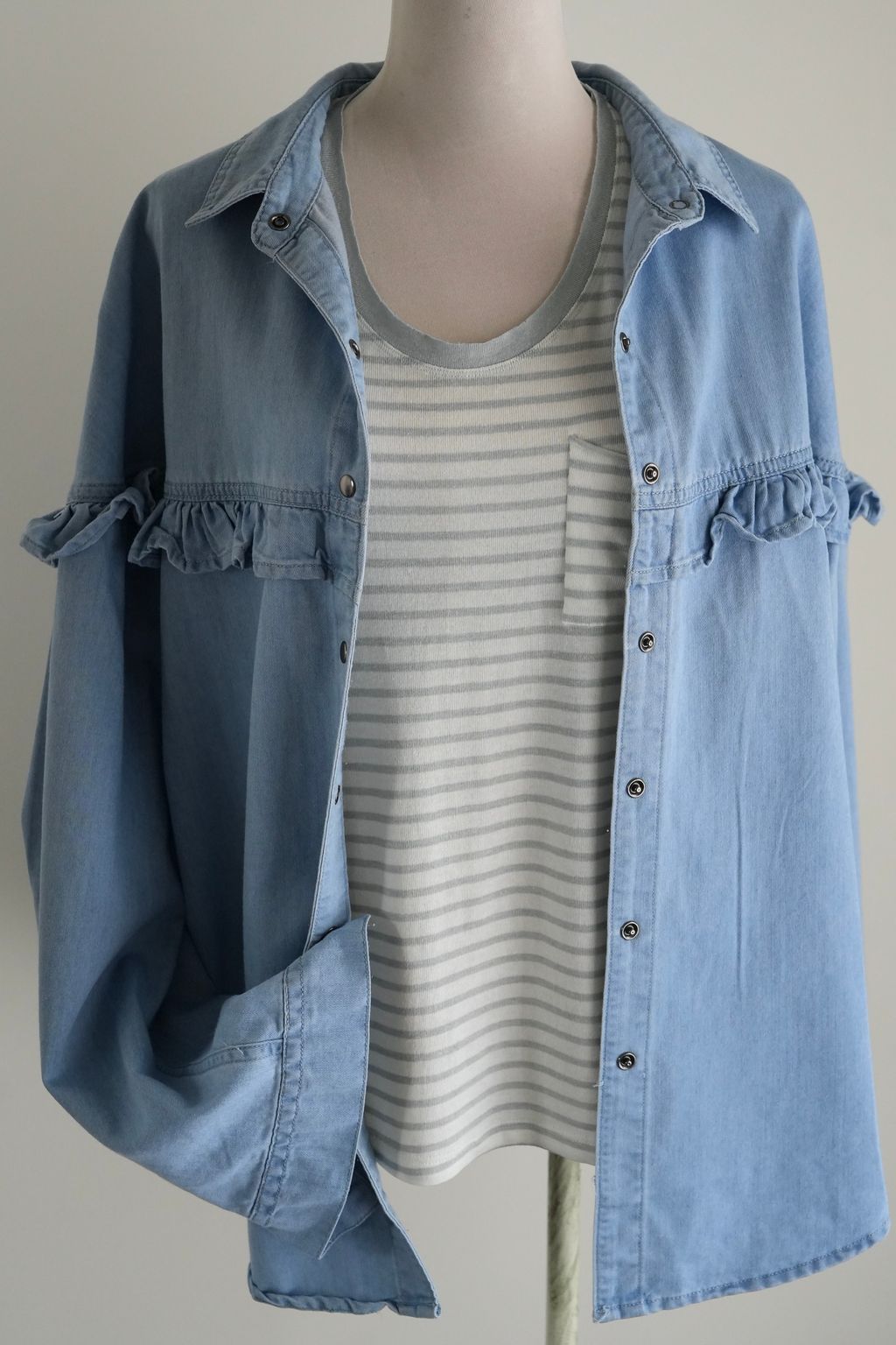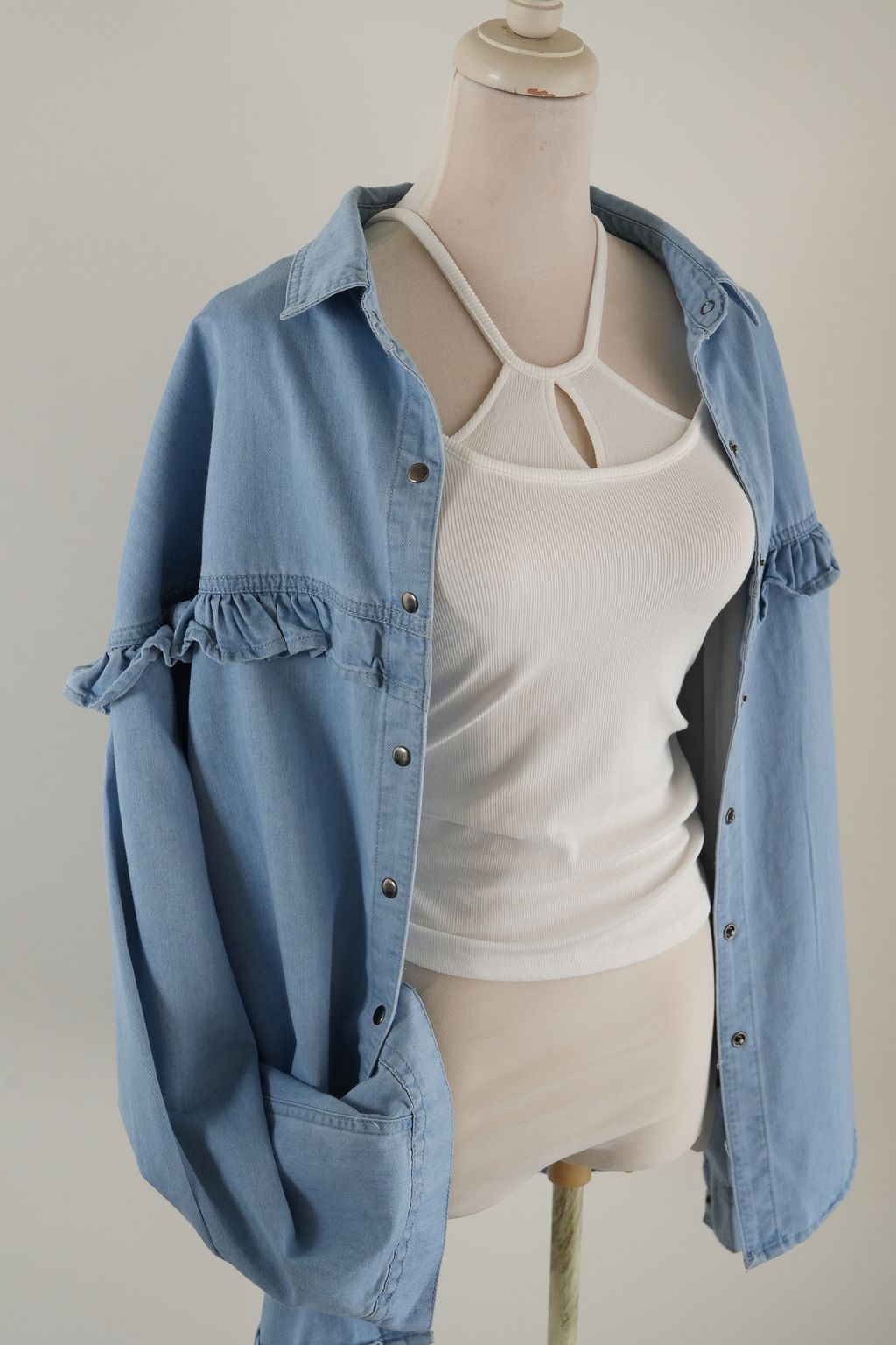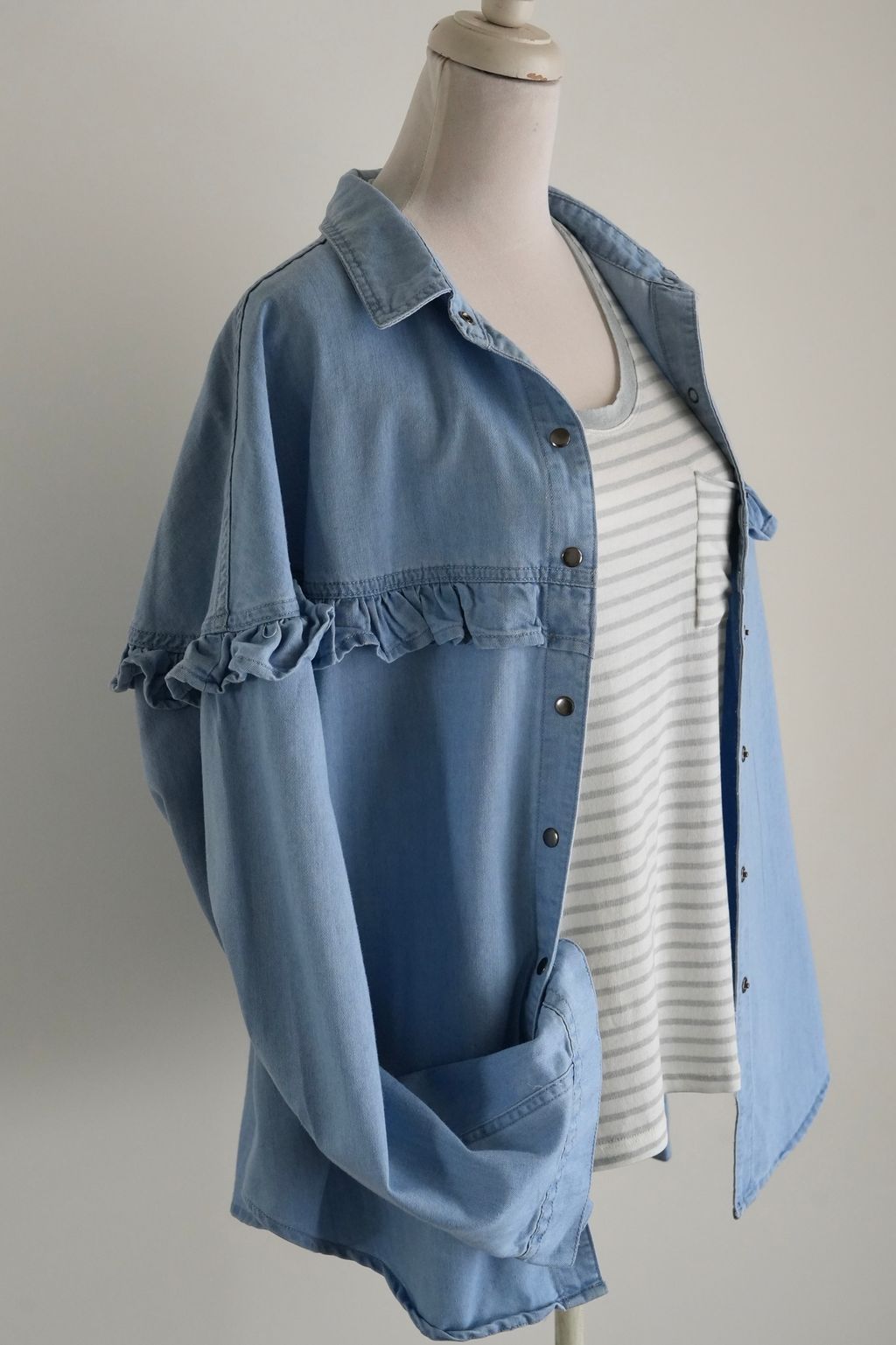 [C] 質感牛仔棉拼接小荷葉裝飾襯衫外套|寬鬆版型*適S-L