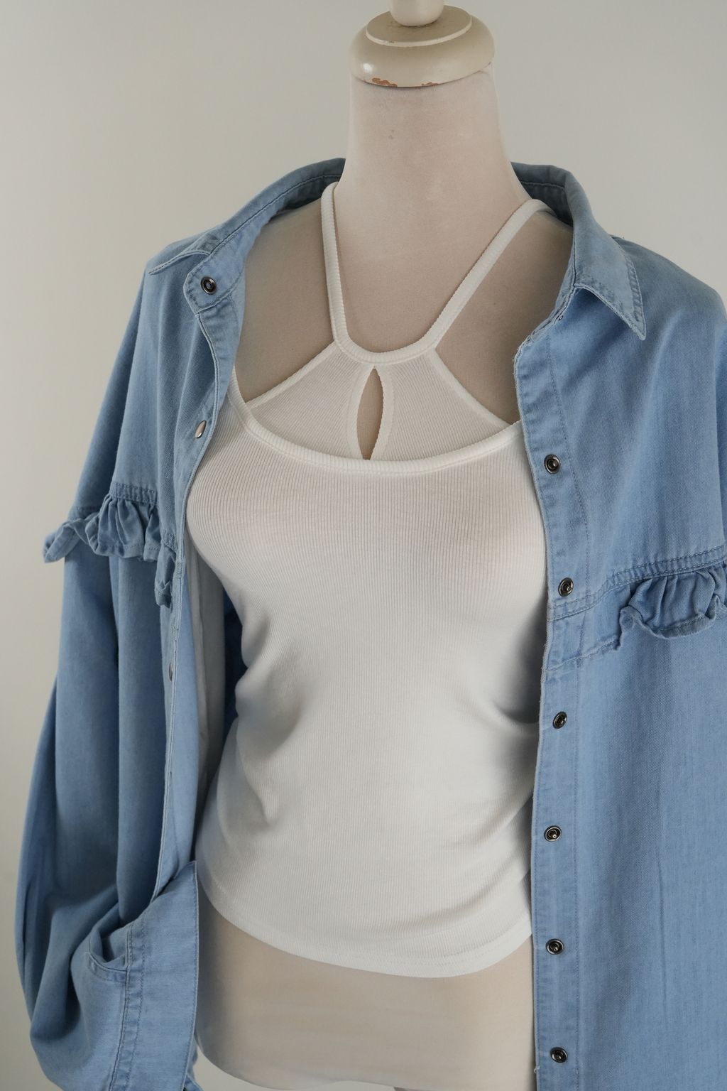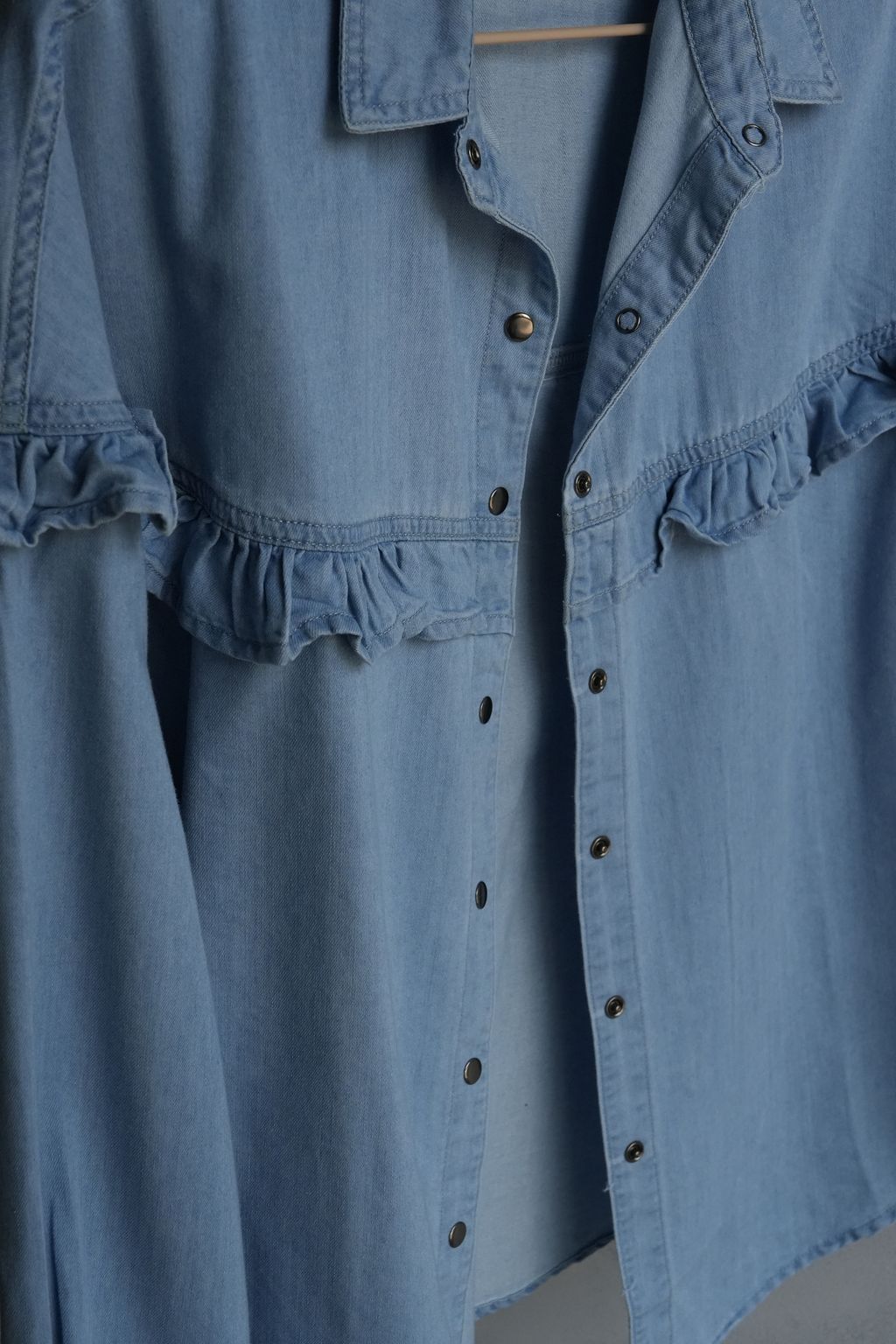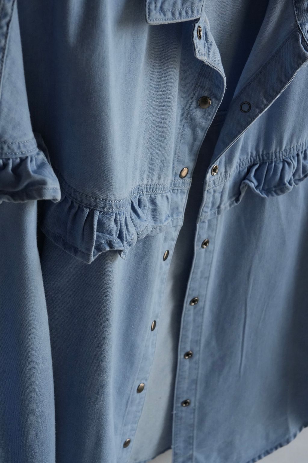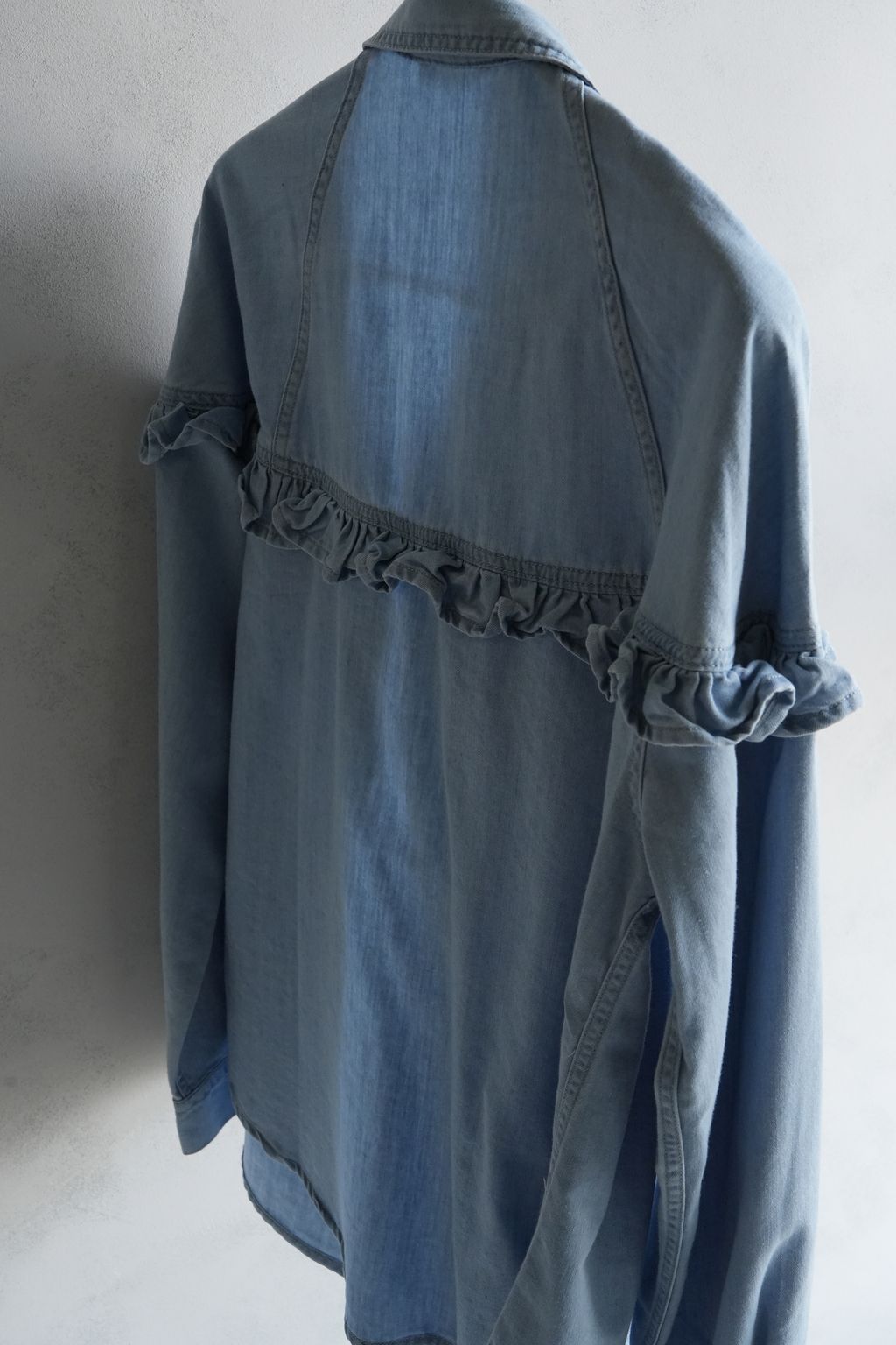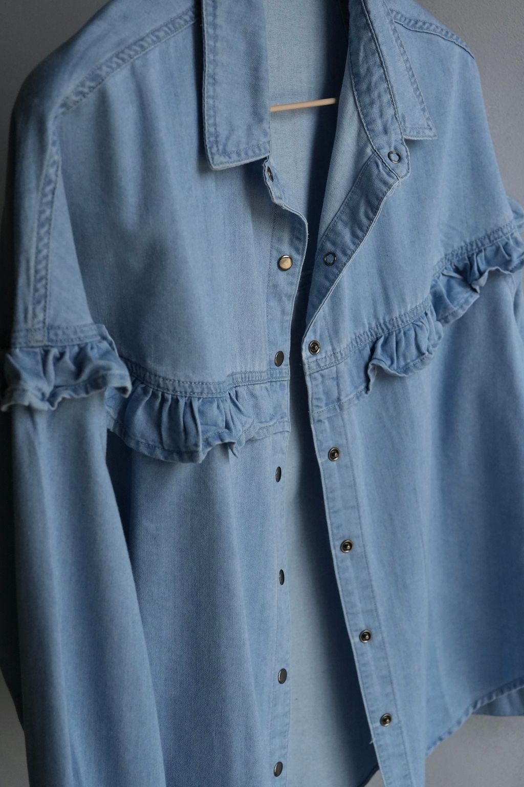 [C] 質感牛仔棉拼接小荷葉裝飾襯衫外套|寬鬆版型*適S-L