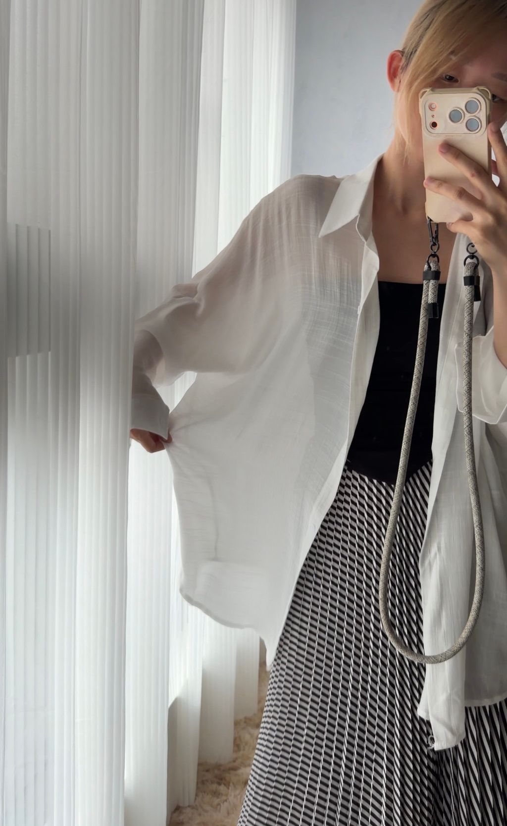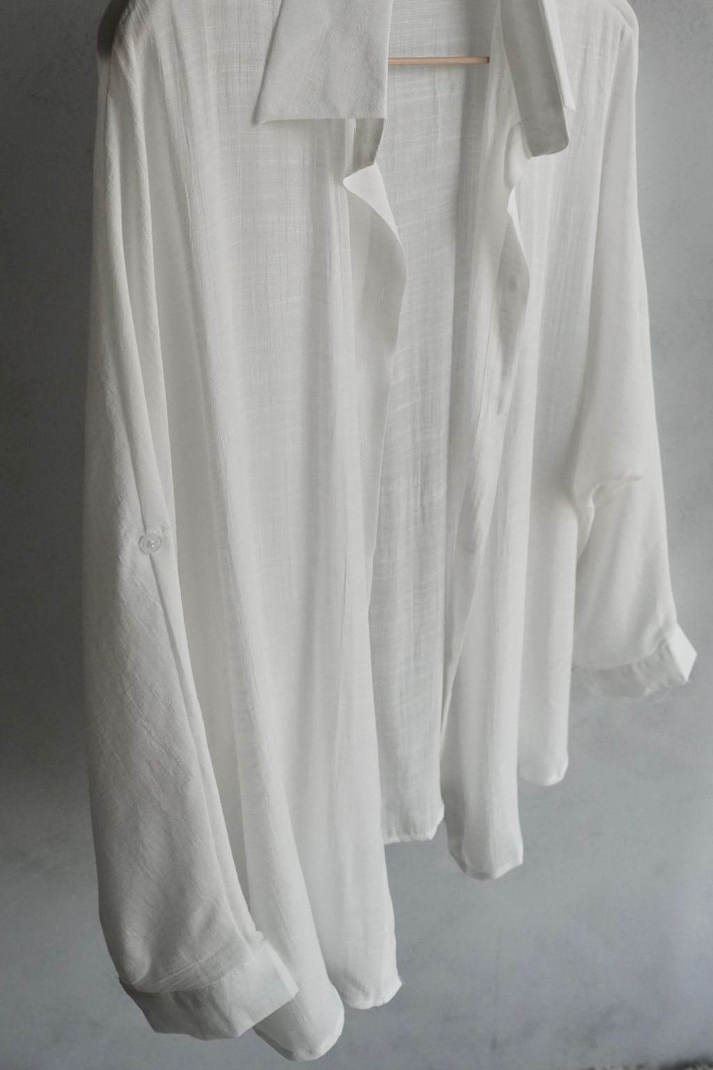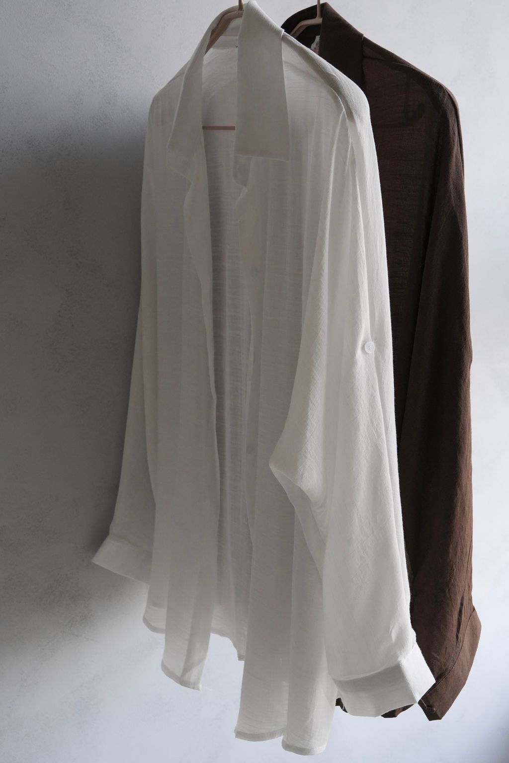 [C] 蝙蝠袖質感垂墜微透寬鬆反摺袖長版襯衫|2色