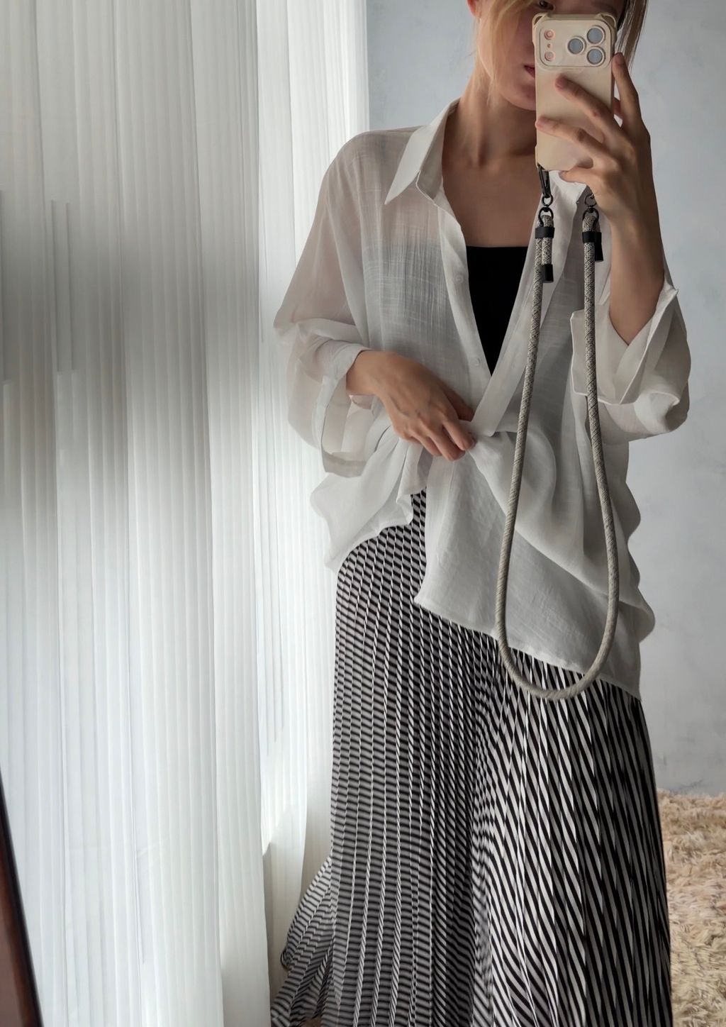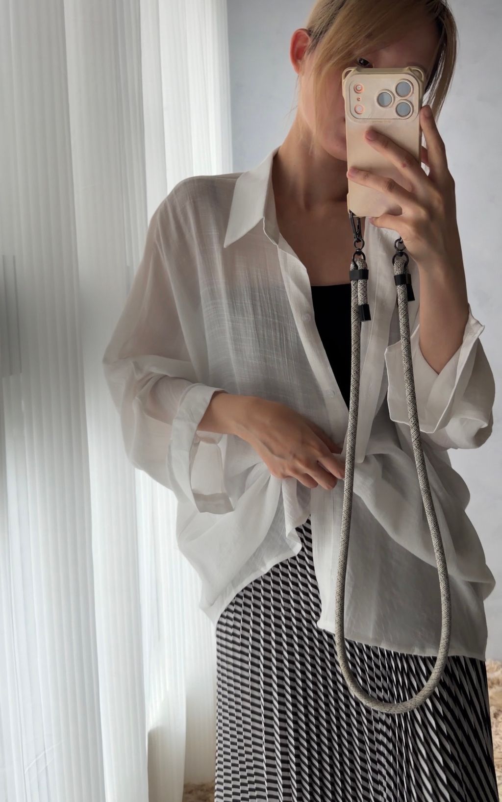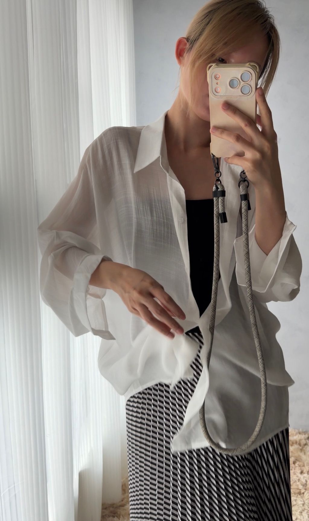 [C] 蝙蝠袖質感垂墜微透寬鬆反摺袖長版襯衫|2色
