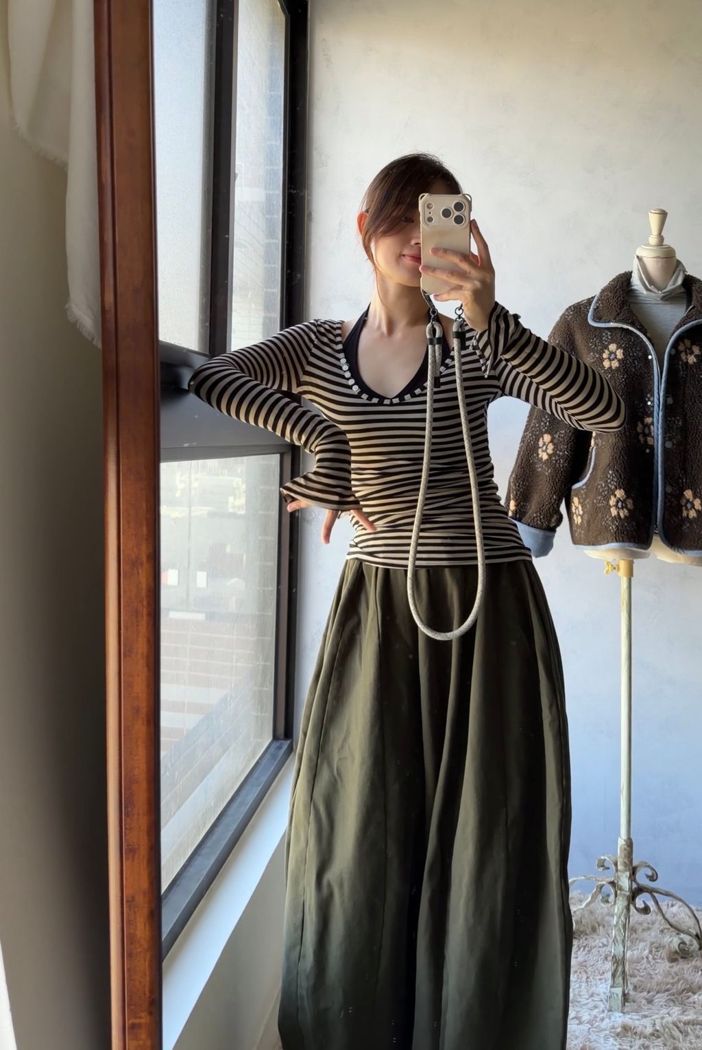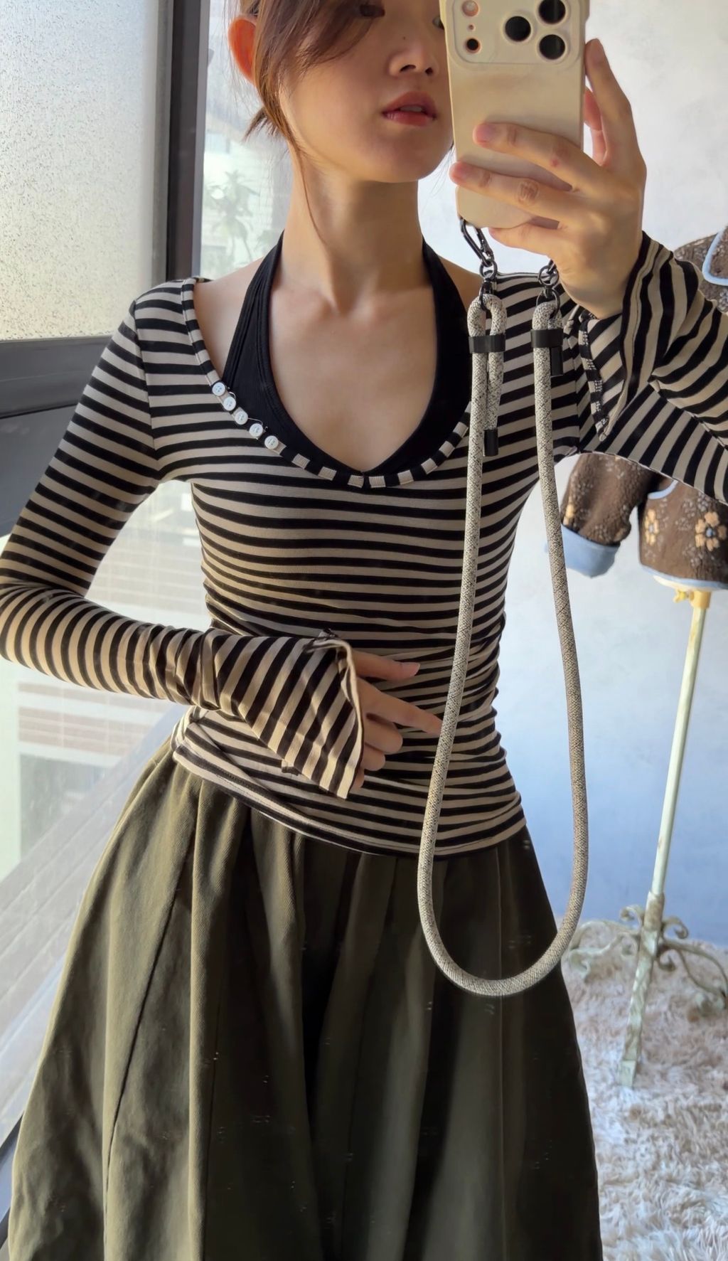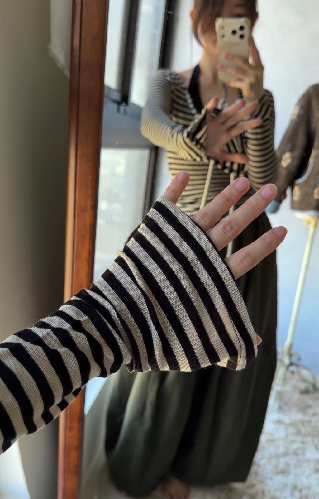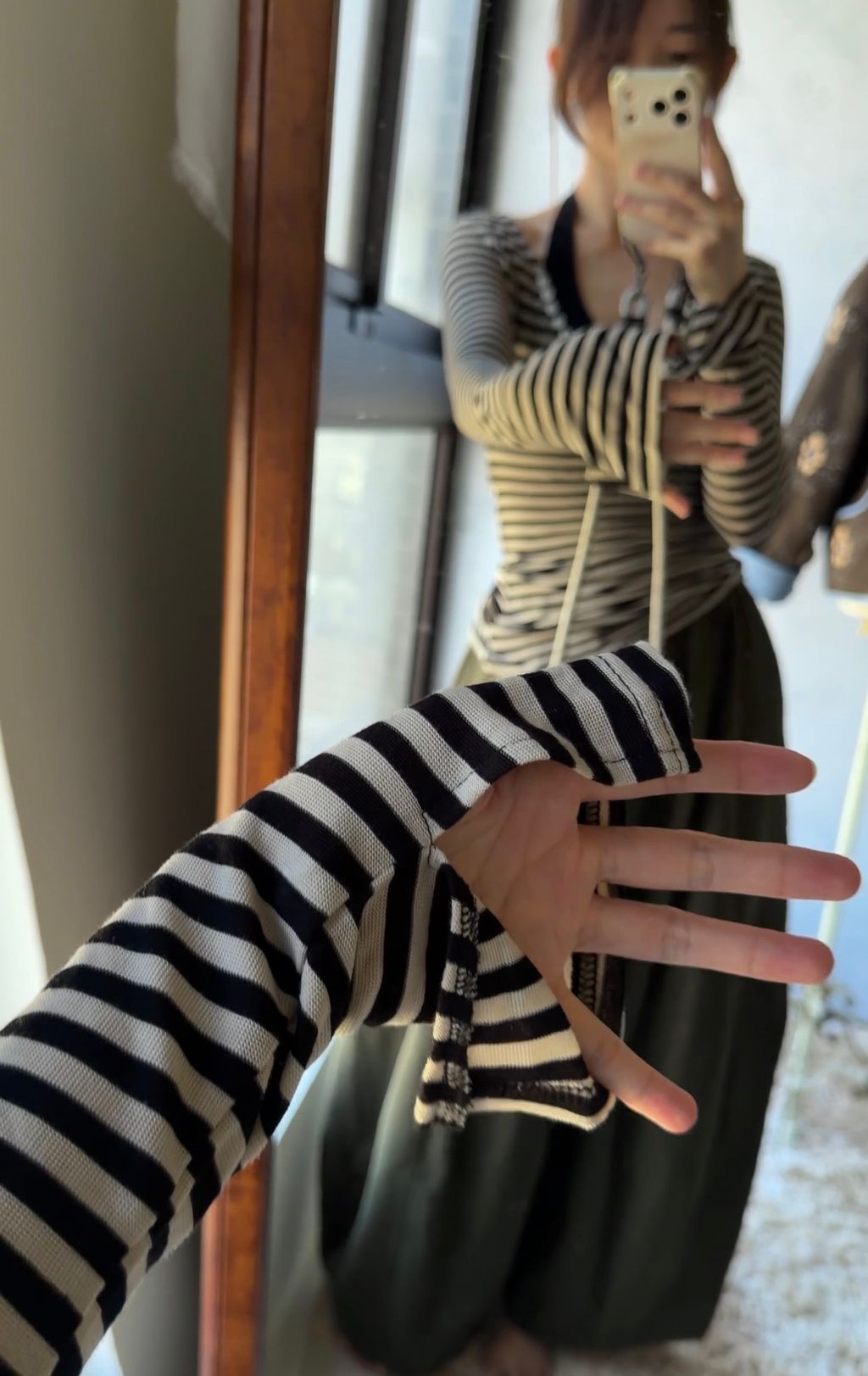 [C] 這個冬天不太冷偷跑早春微辣喇叭袖條紋上衣|高彈力3尺寸
