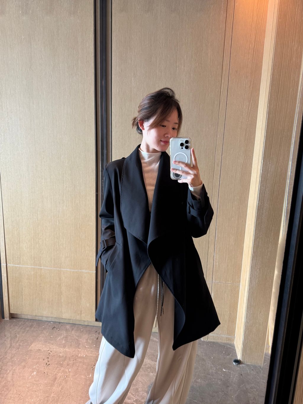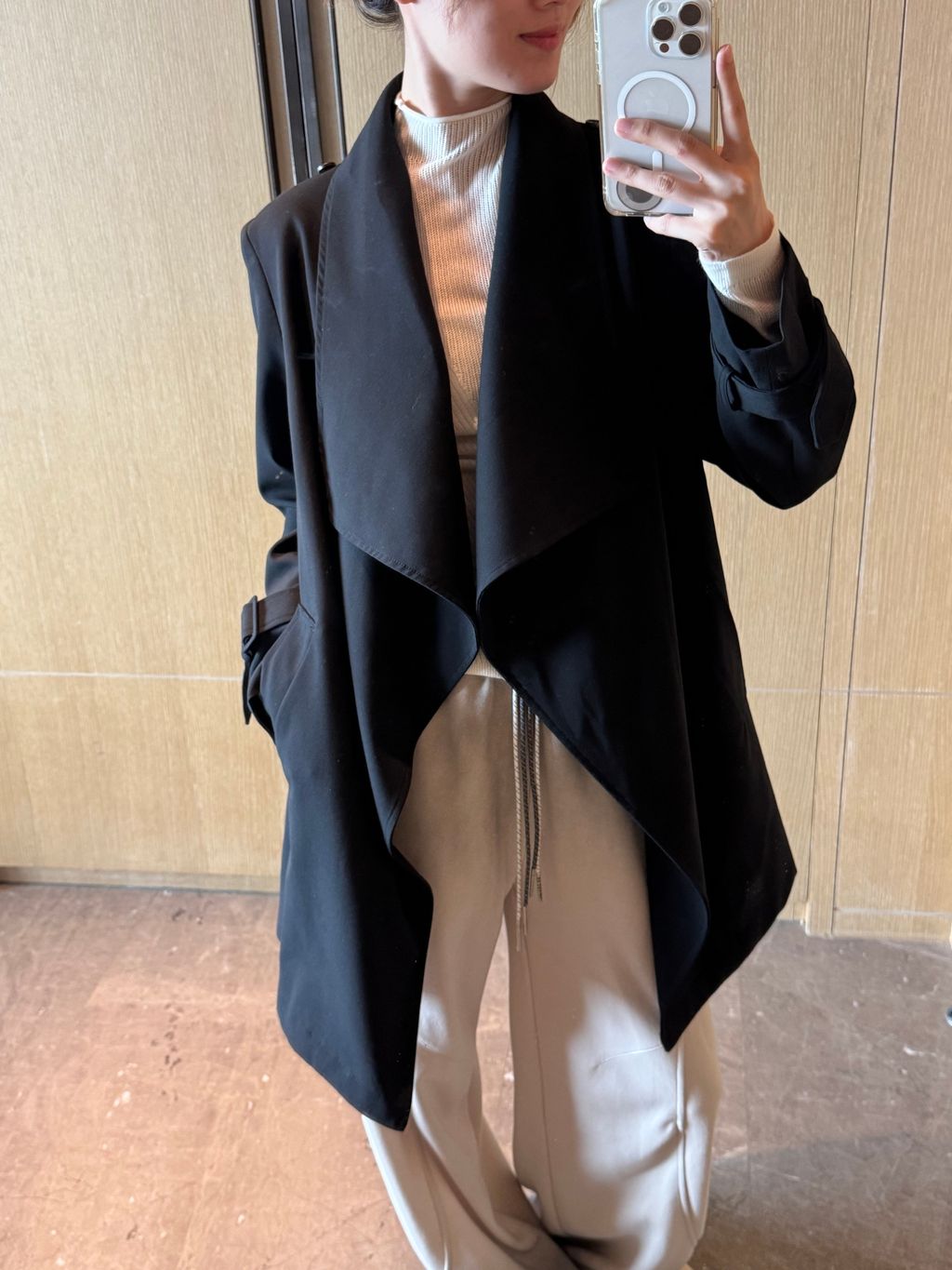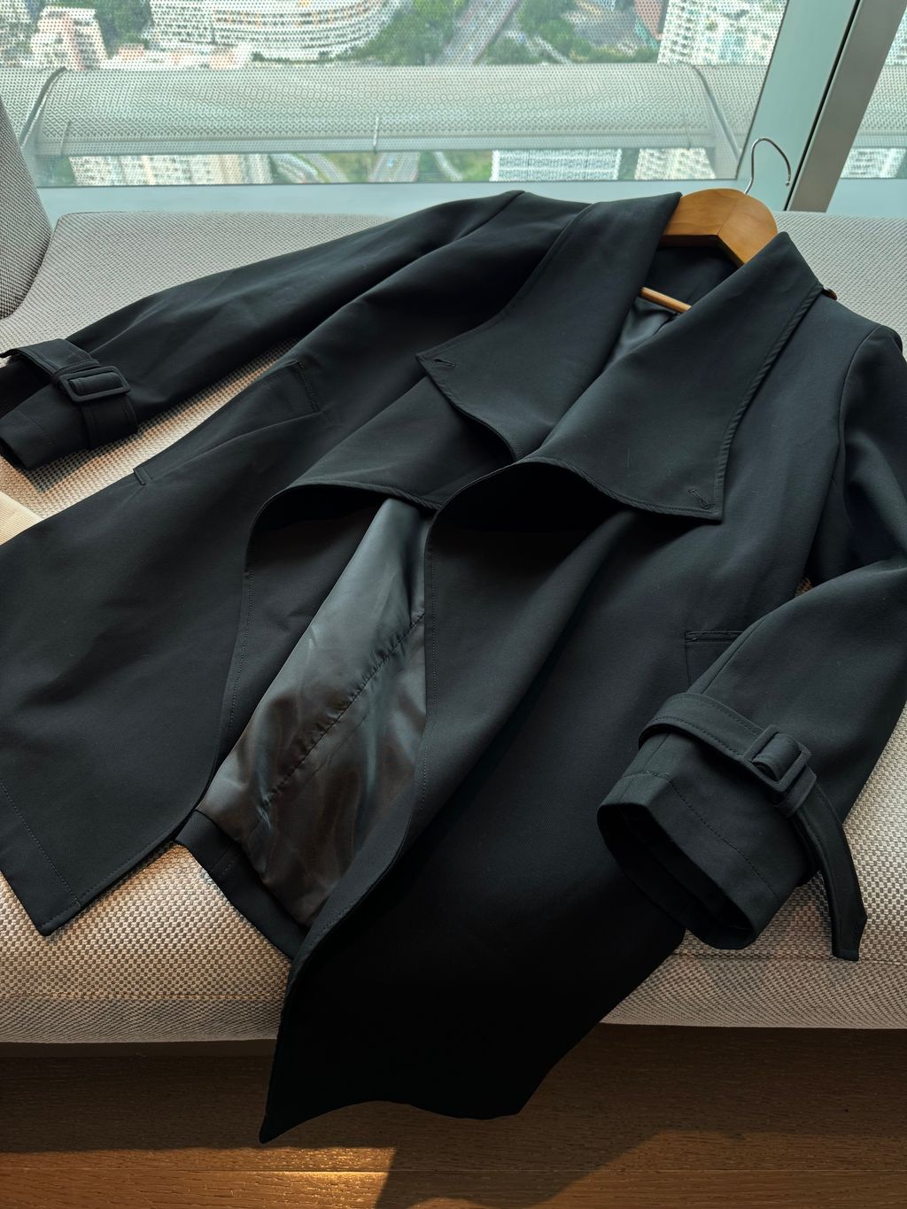 [C] 超美大翻領兩穿風衣西裝外套|黑卡其*S-2XL