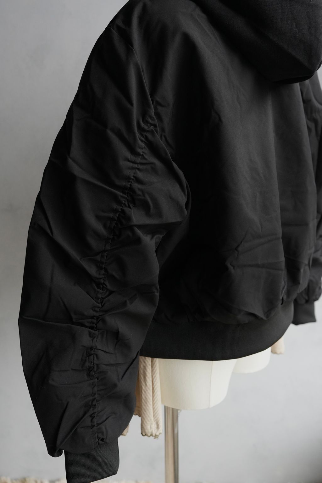 [C] 中短版假兩件式拼接飛行外套|黑灰
