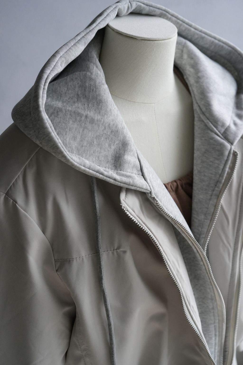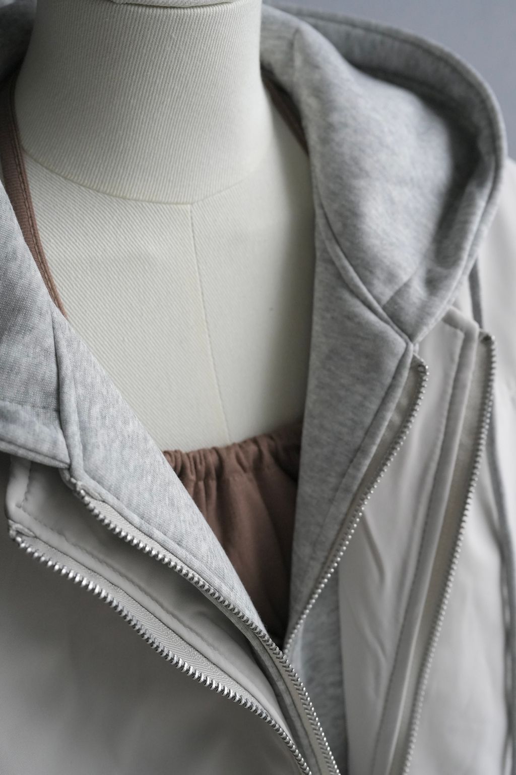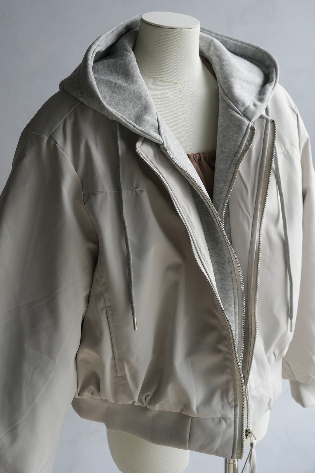 +拼接真拉鍊雙層帽踢