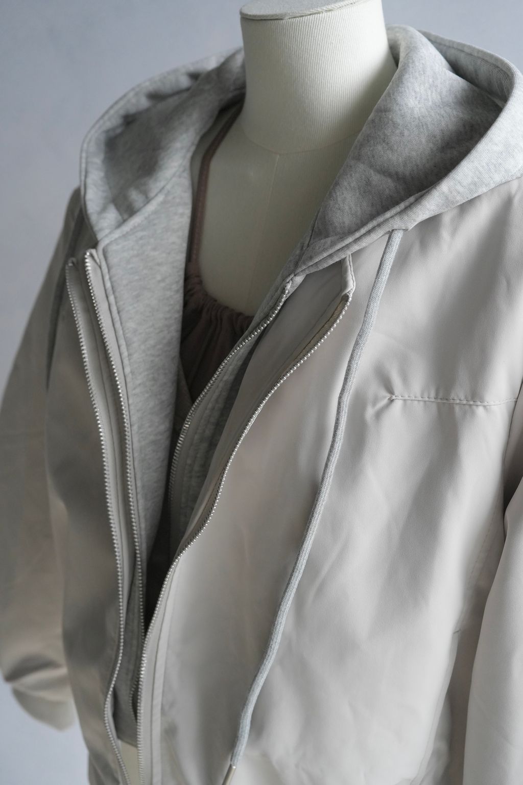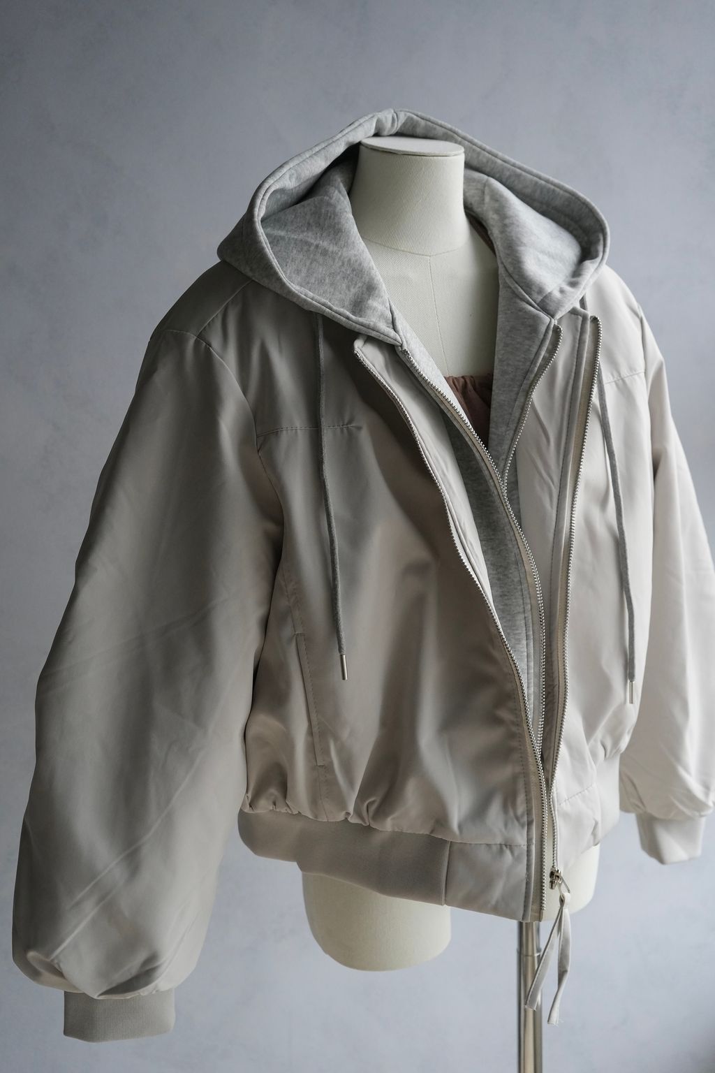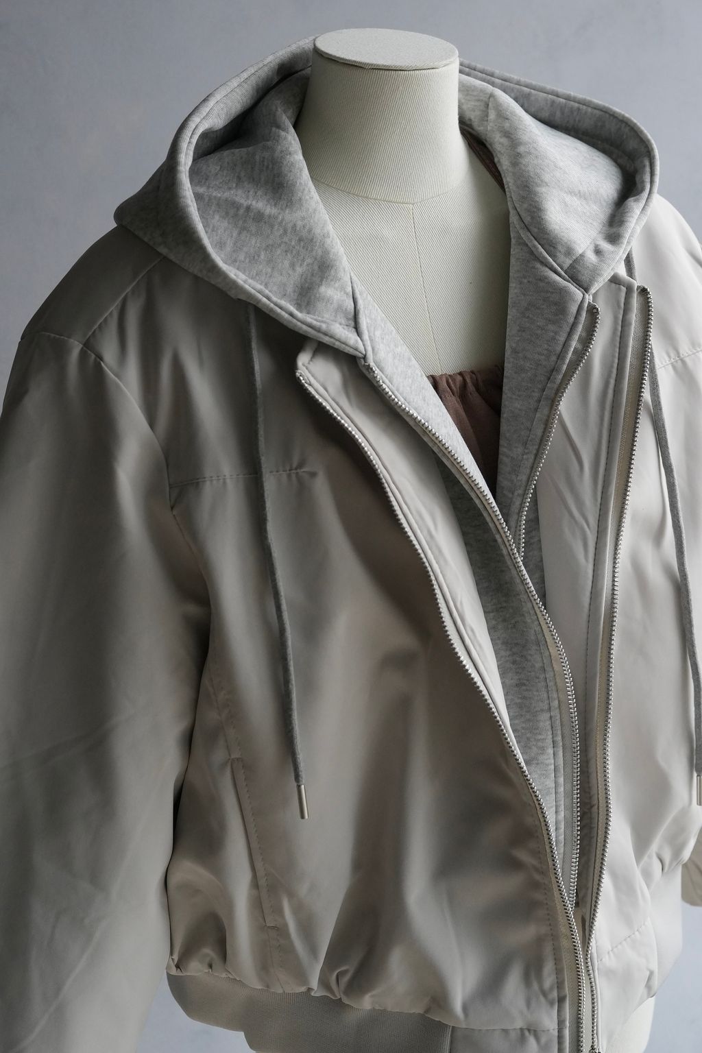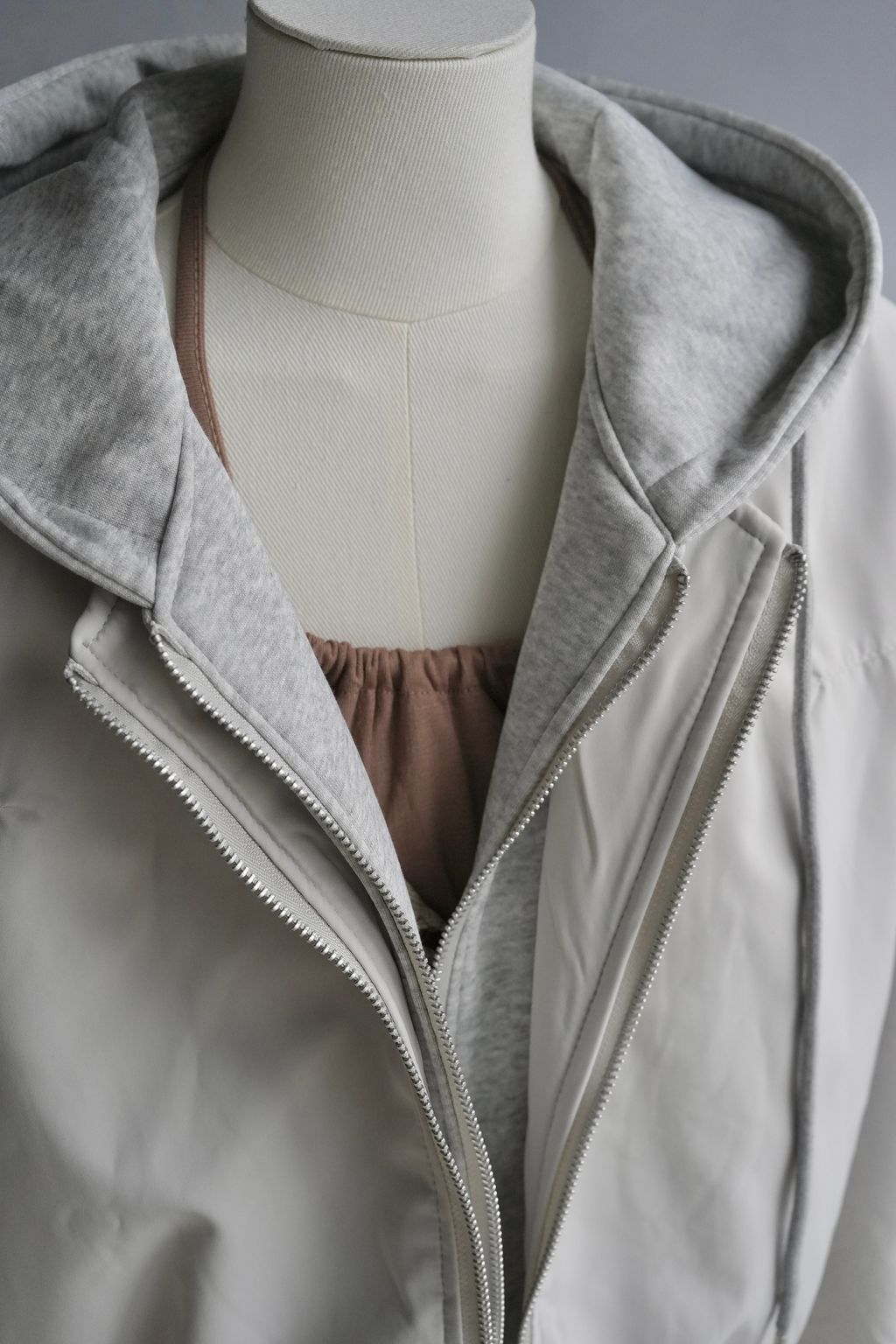 +拼接真拉鍊雙層帽踢