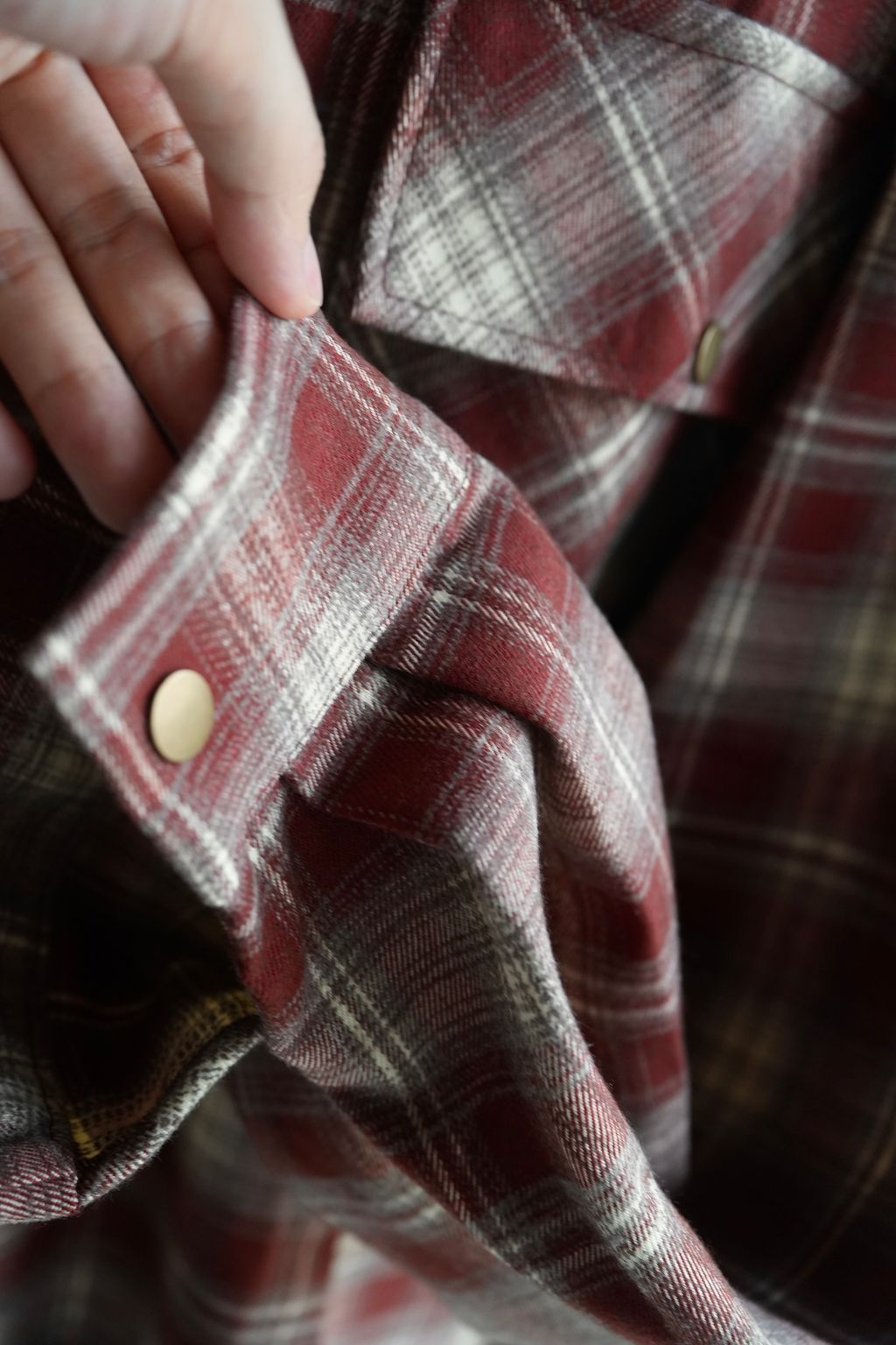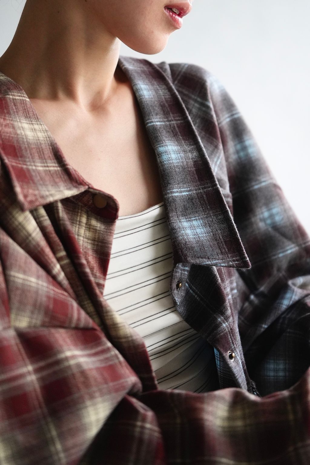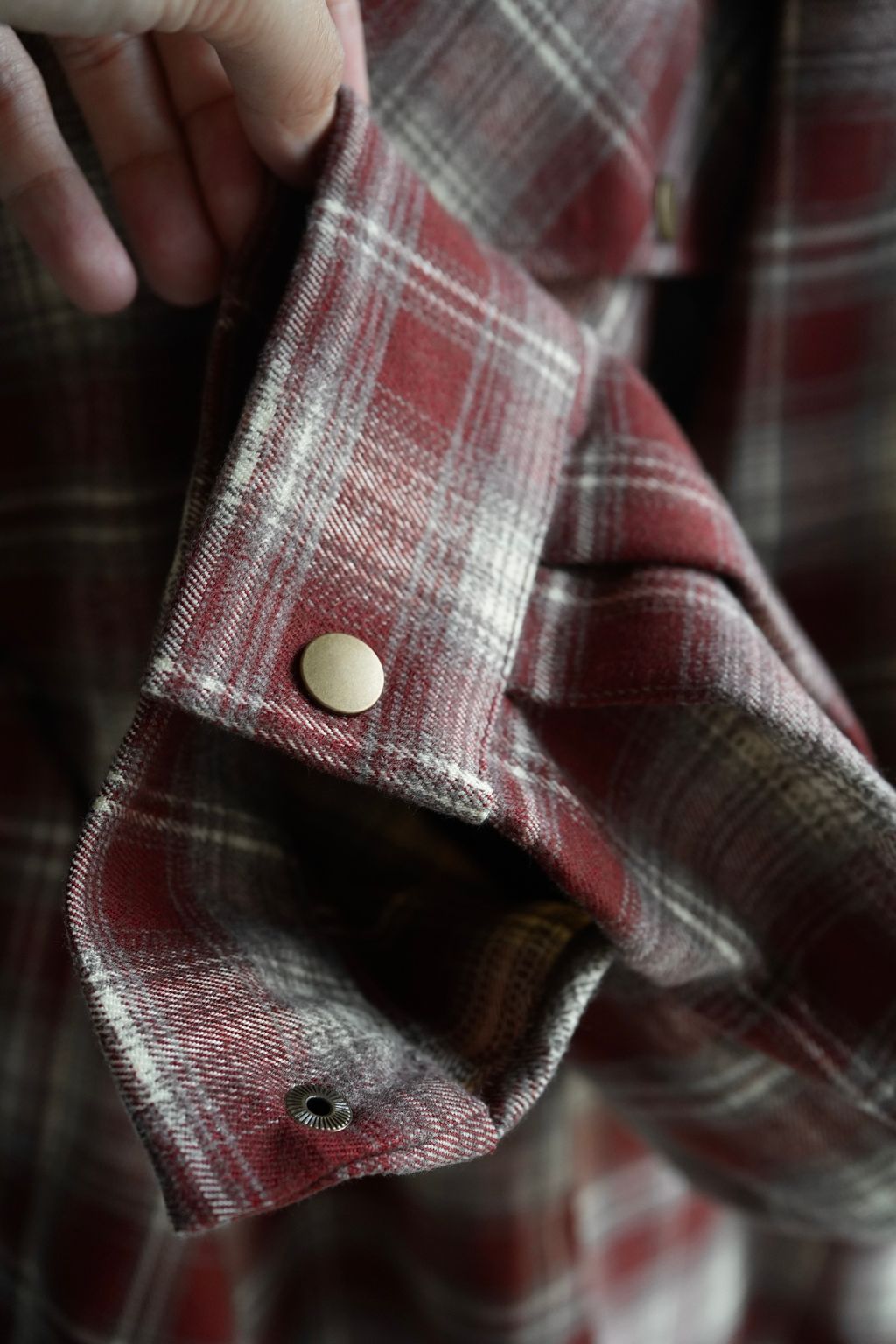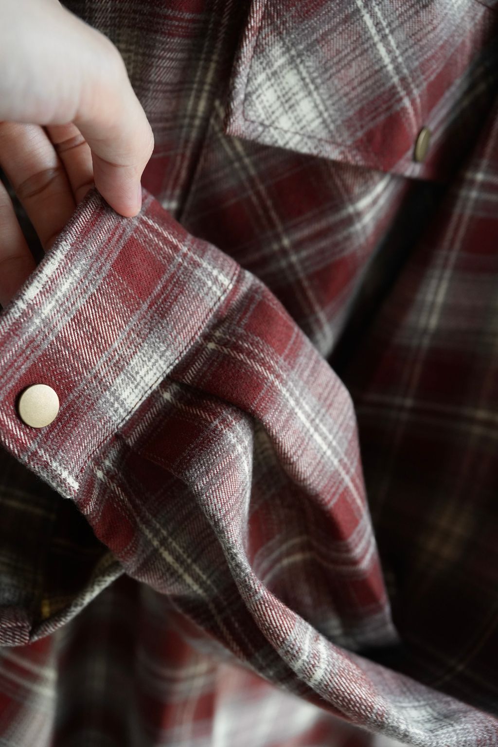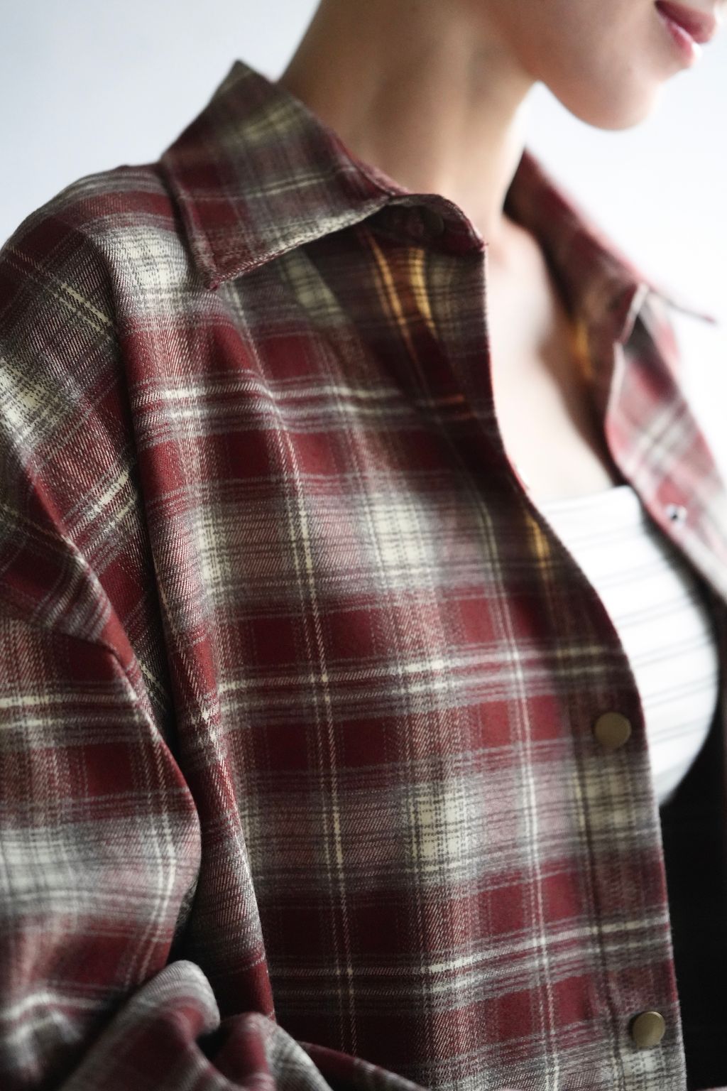 [C] 銅釦電幻迷濛撞色格紋襯衫外套|藍紅系*寬鬆版