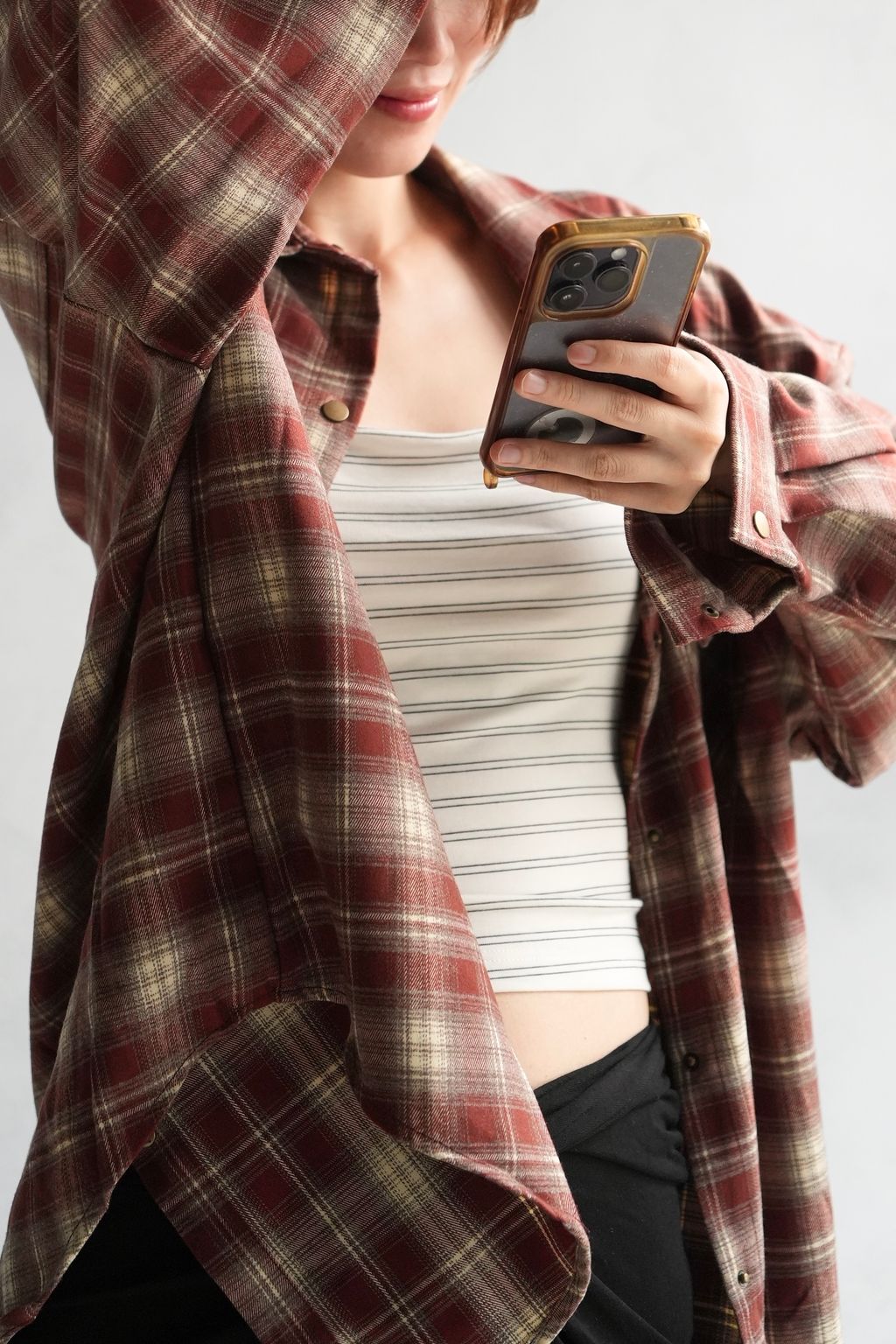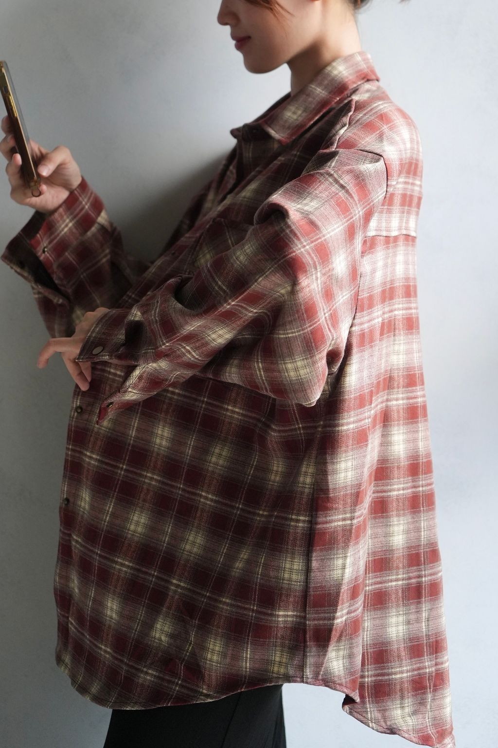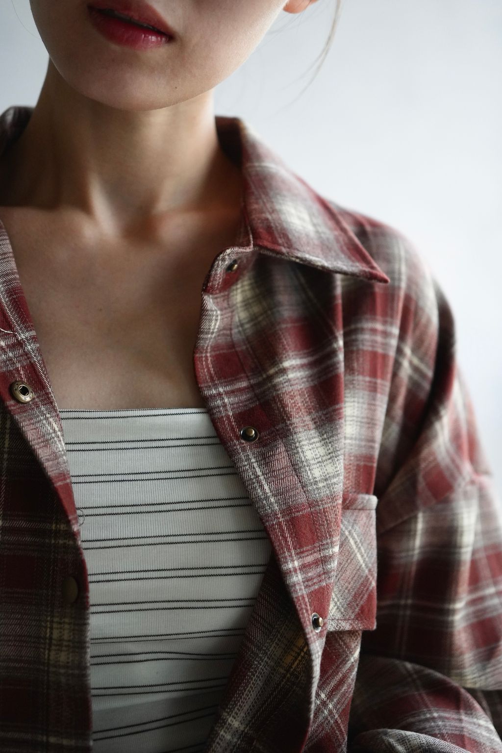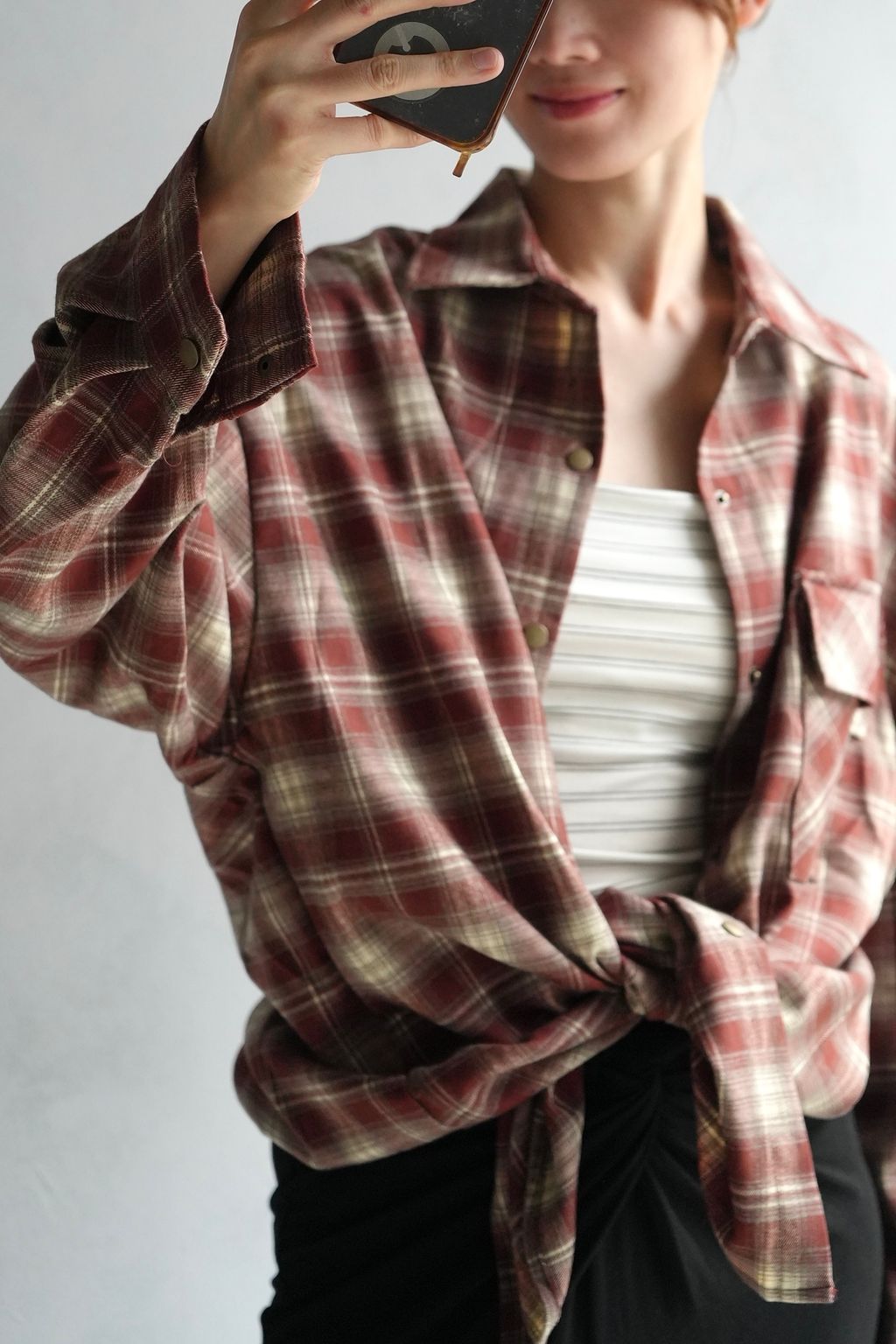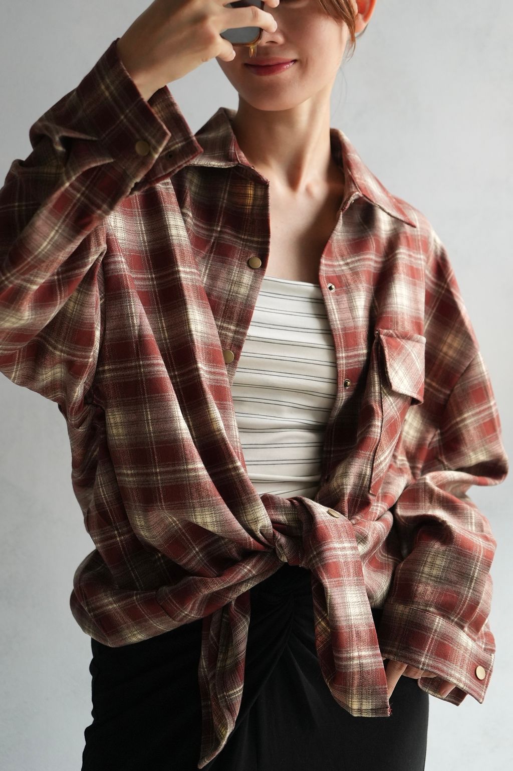 [C] 銅釦電幻迷濛撞色格紋襯衫外套|藍紅系*寬鬆版