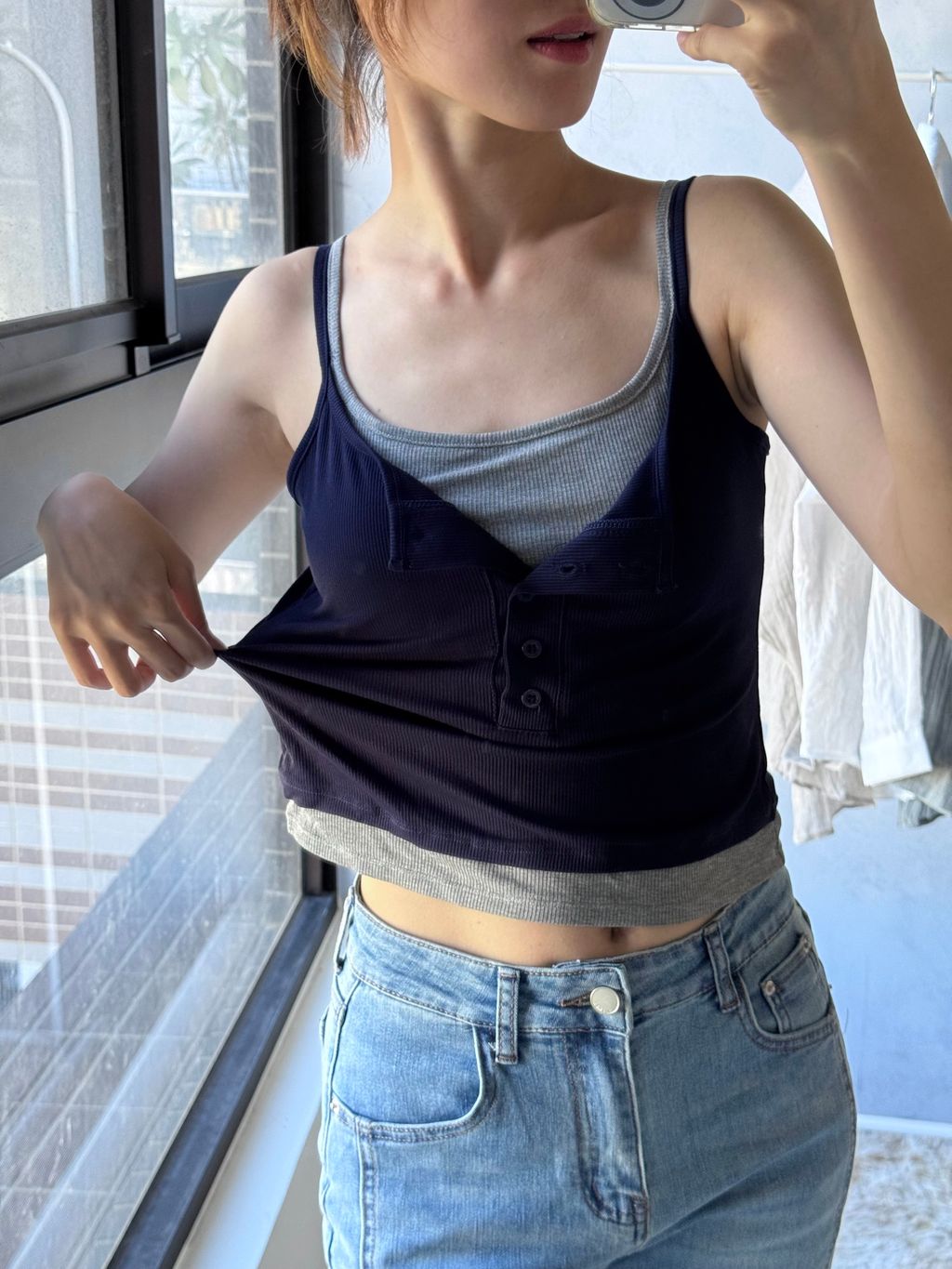 [C] 天絲螺紋棉好手感層次假兩件可開釦BraTop|3色*2尺寸