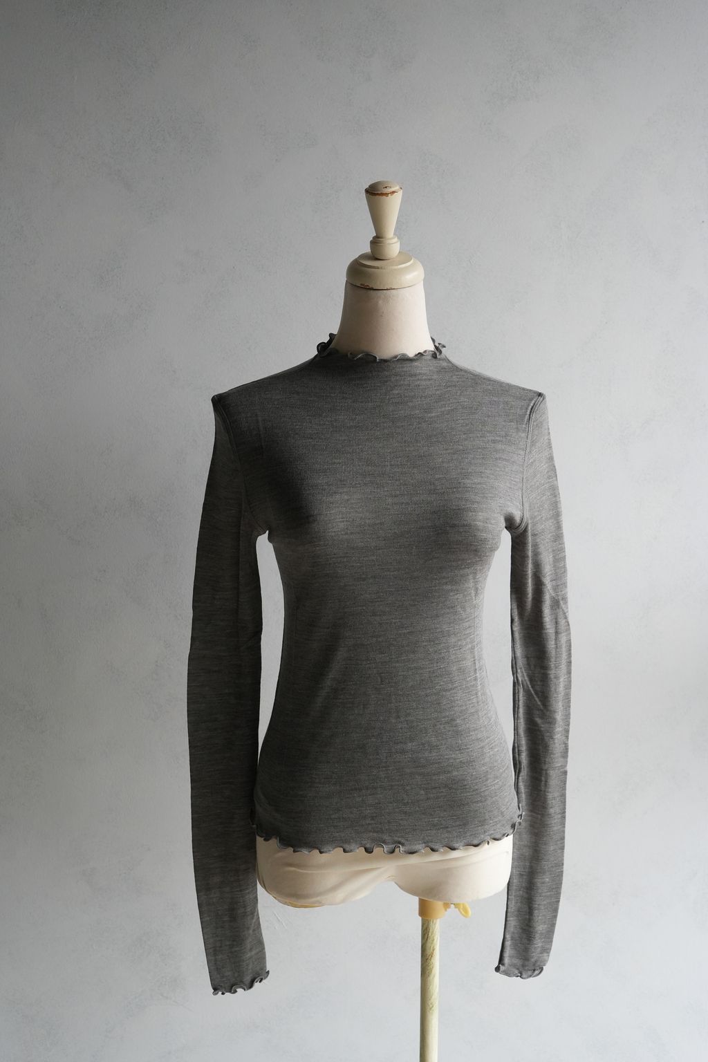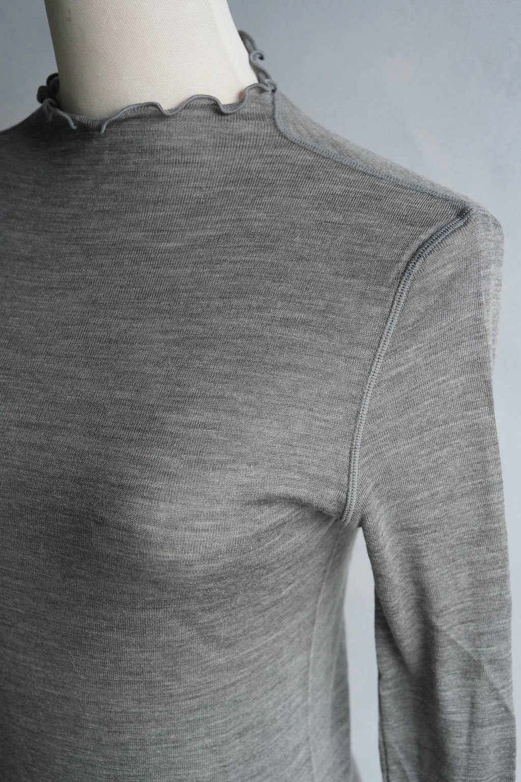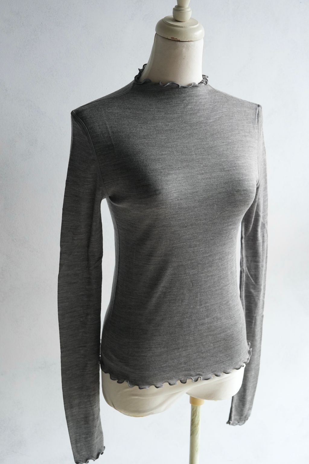 [C] 質感微透視加長袖軟羊毛剪裁設計滾邊荷葉內搭長袖上衣|3色*2尺寸