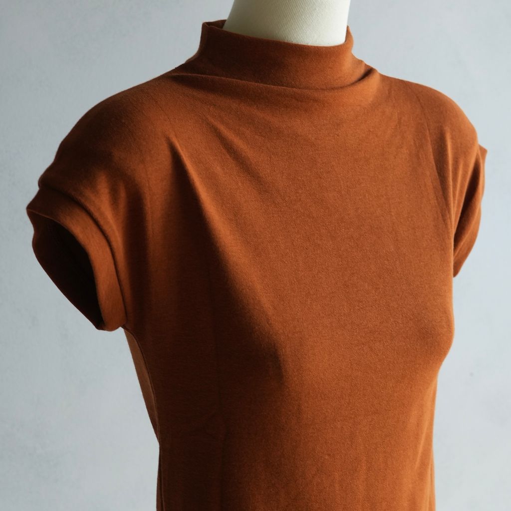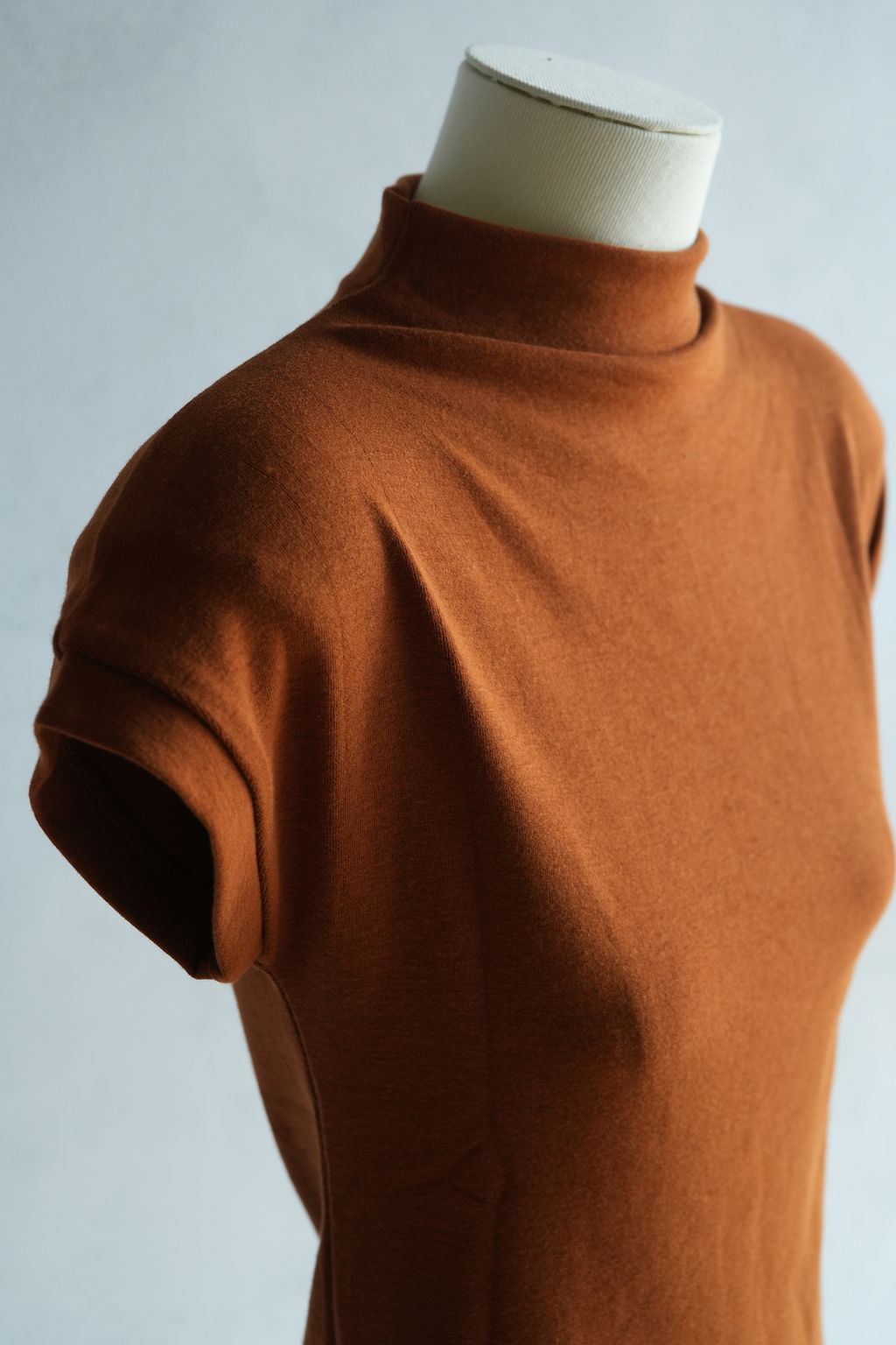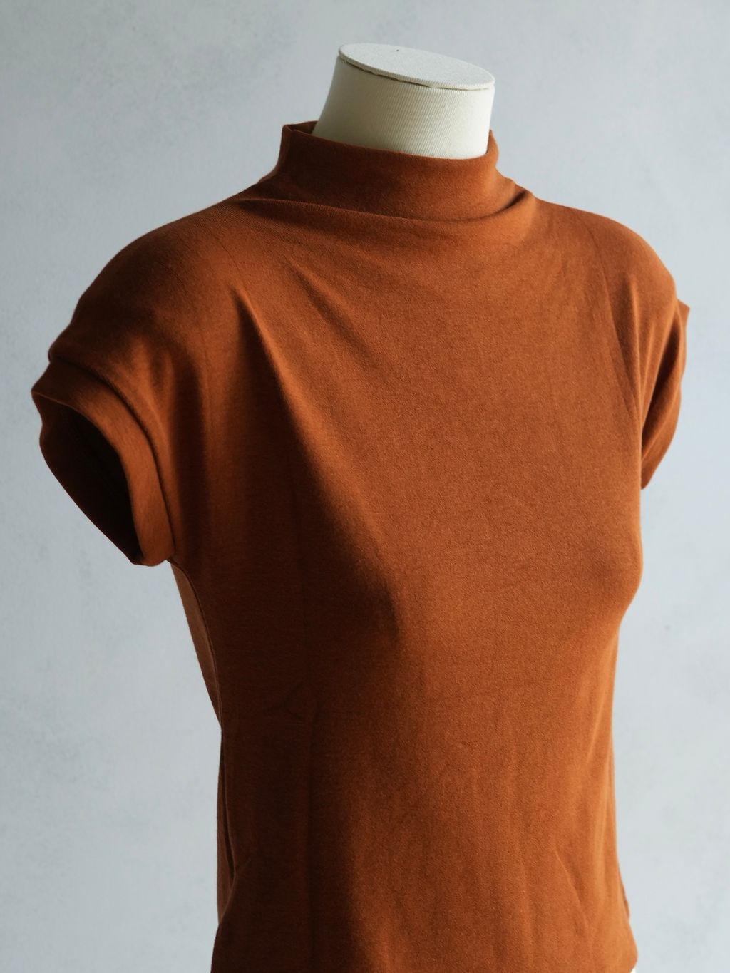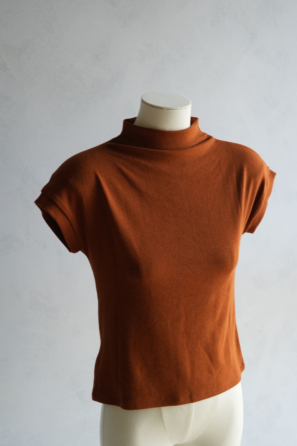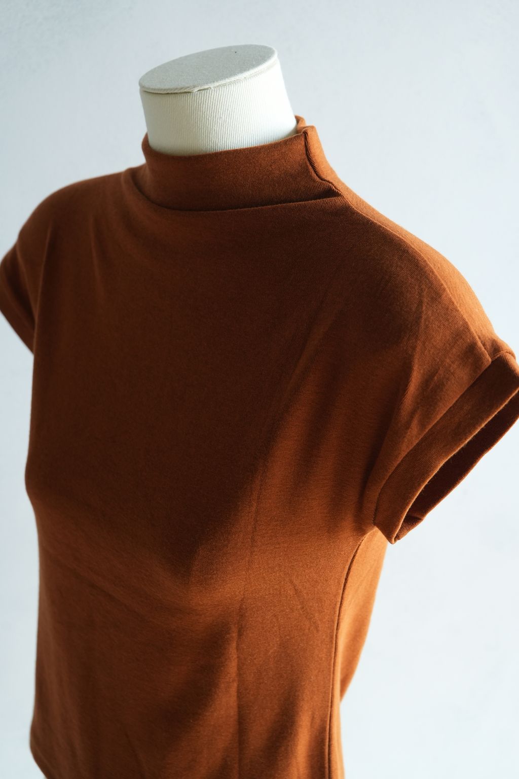 [C] 半袖小高領暖暖土橘螺紋彈力上衣