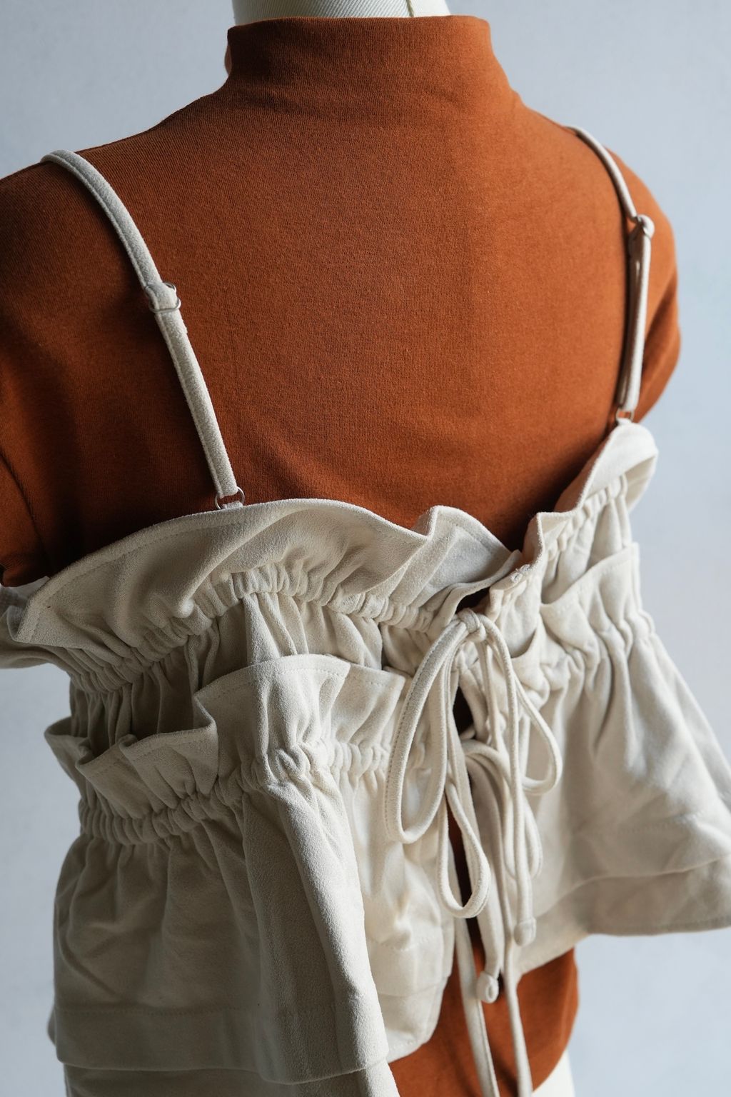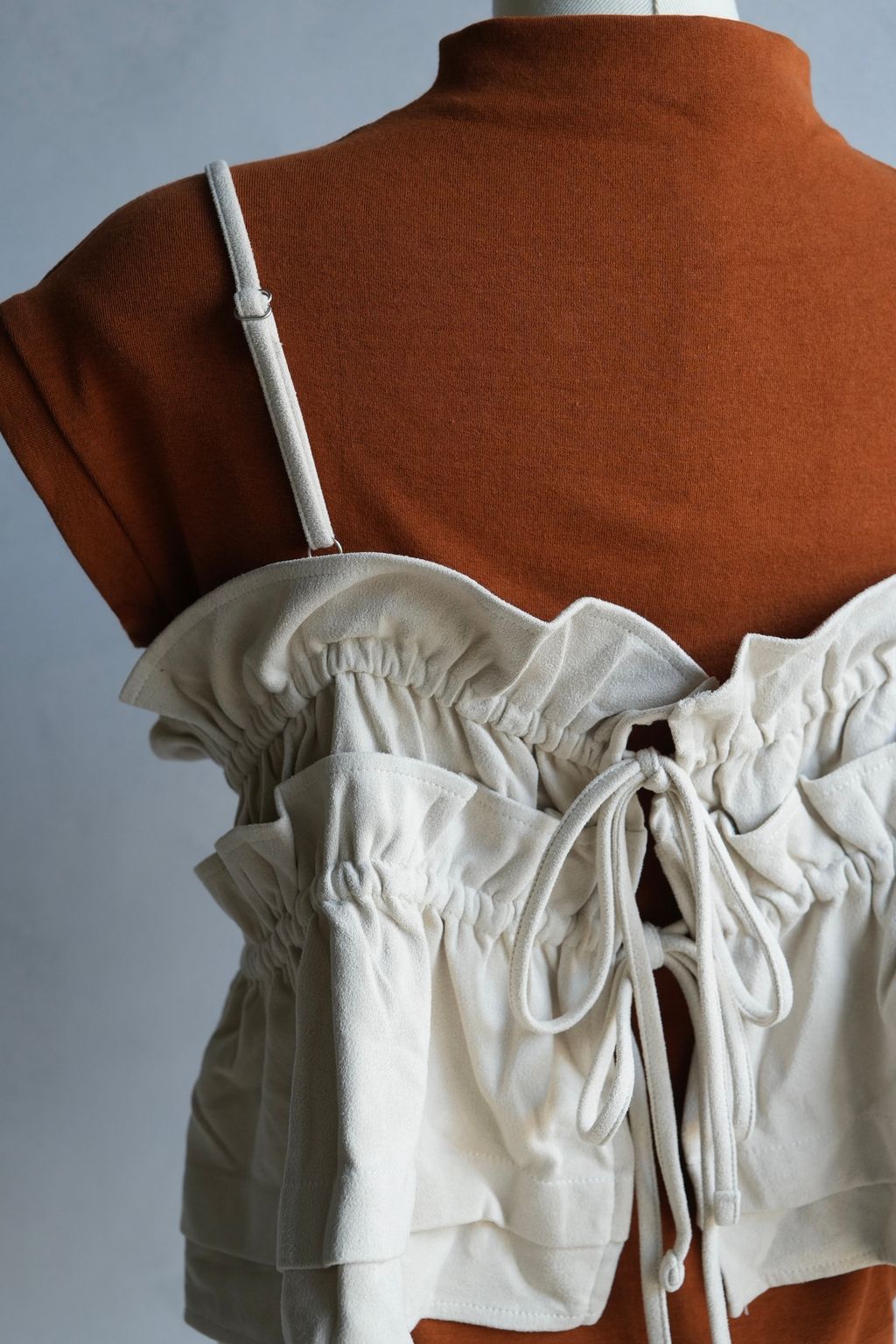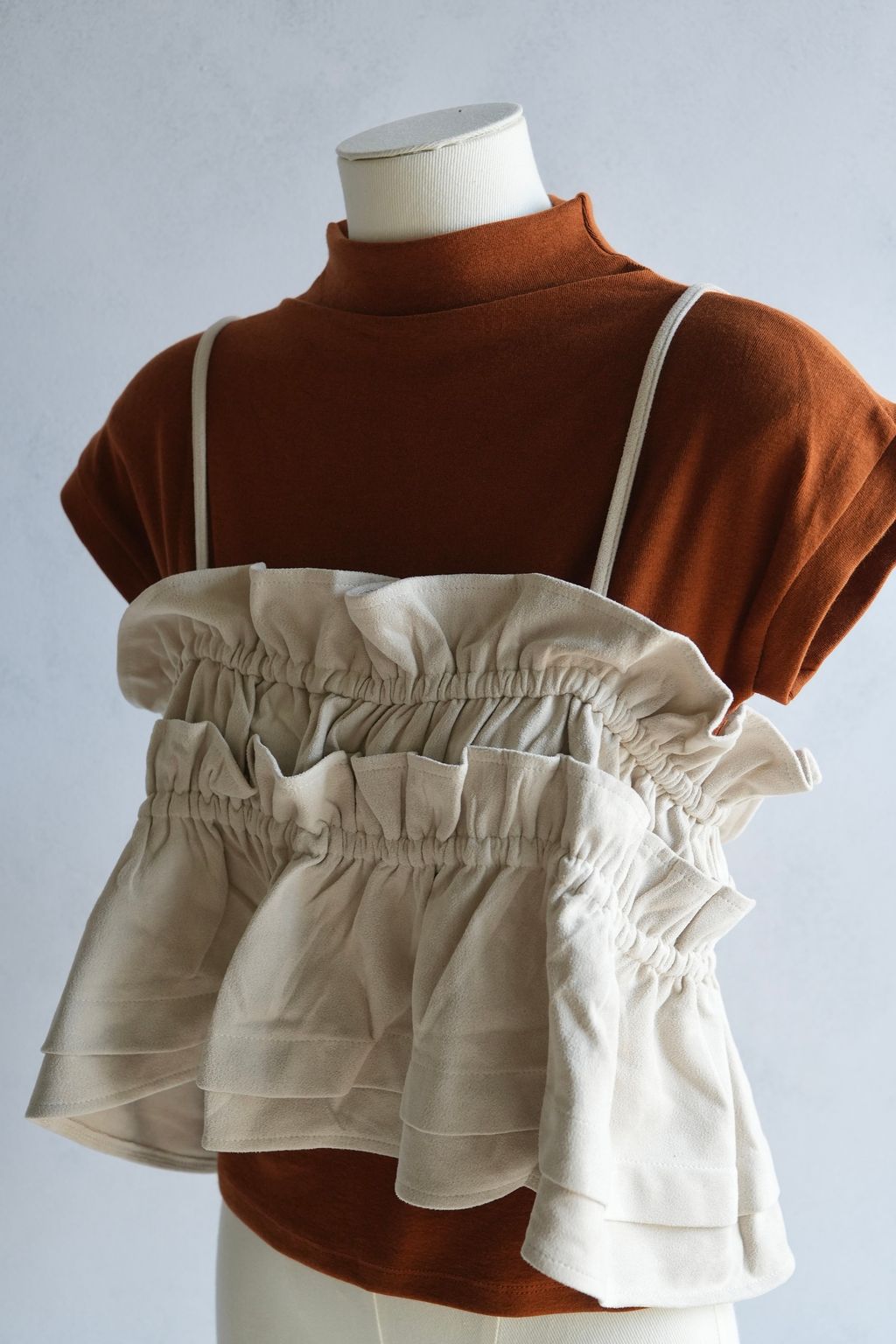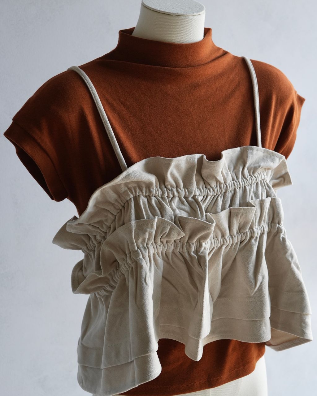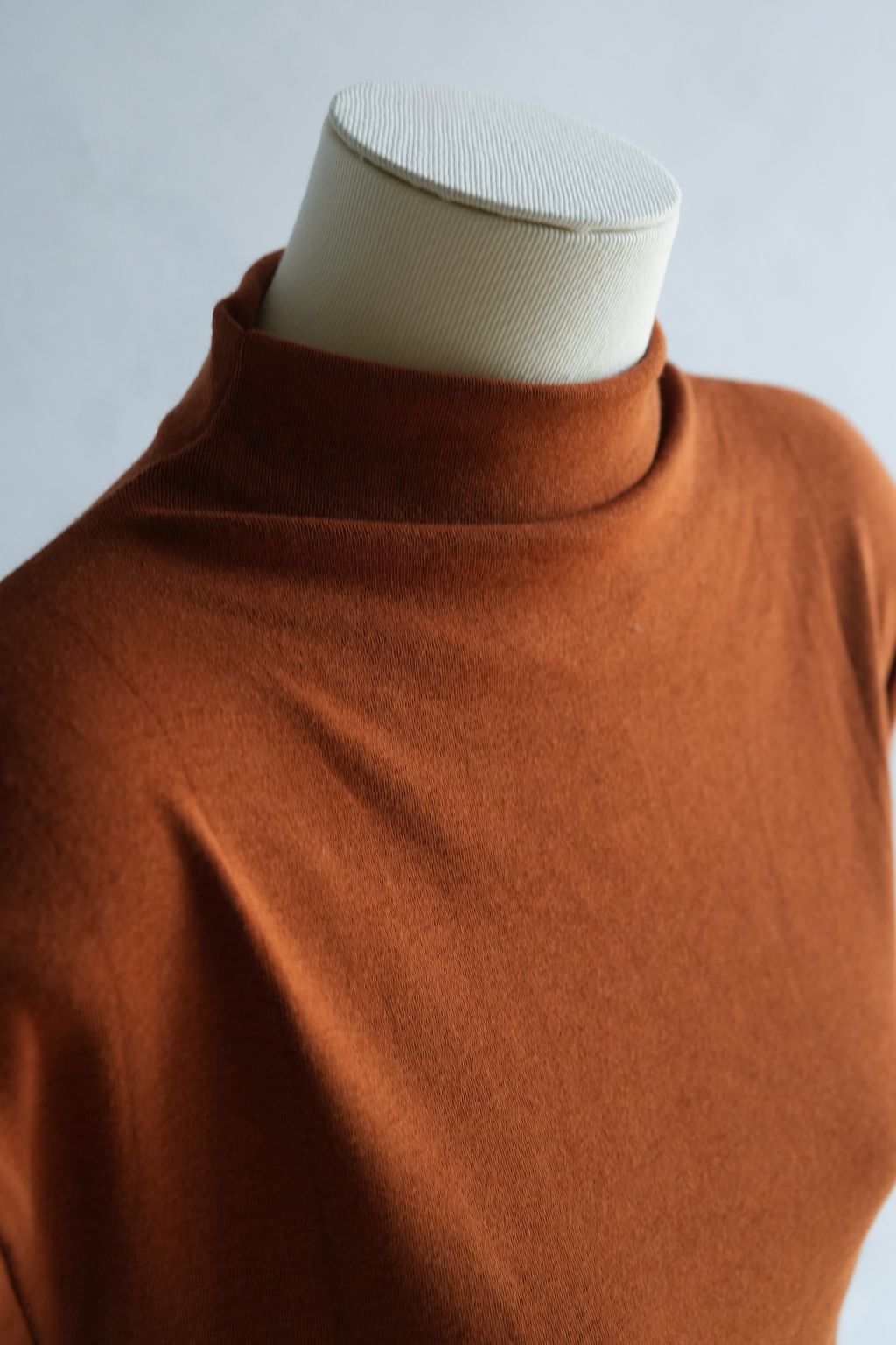 [C] 半袖小高領暖暖土橘螺紋彈力上衣