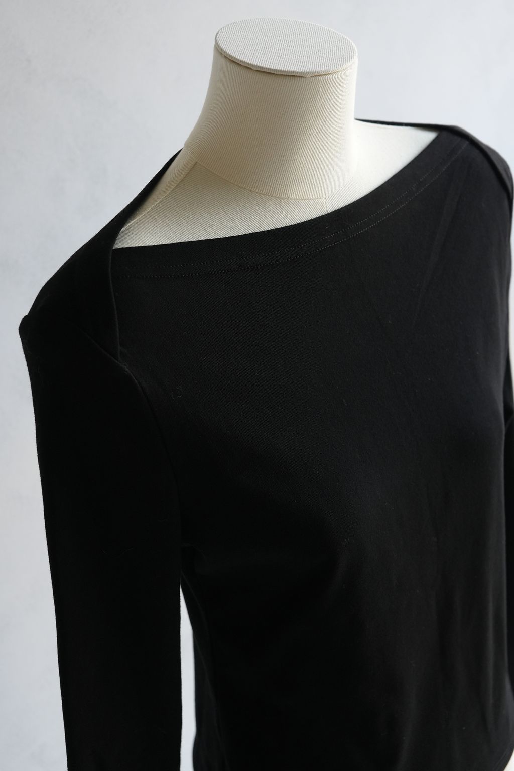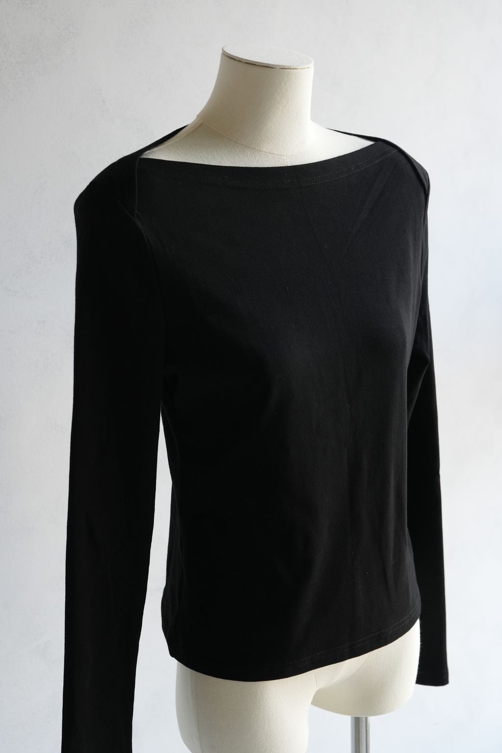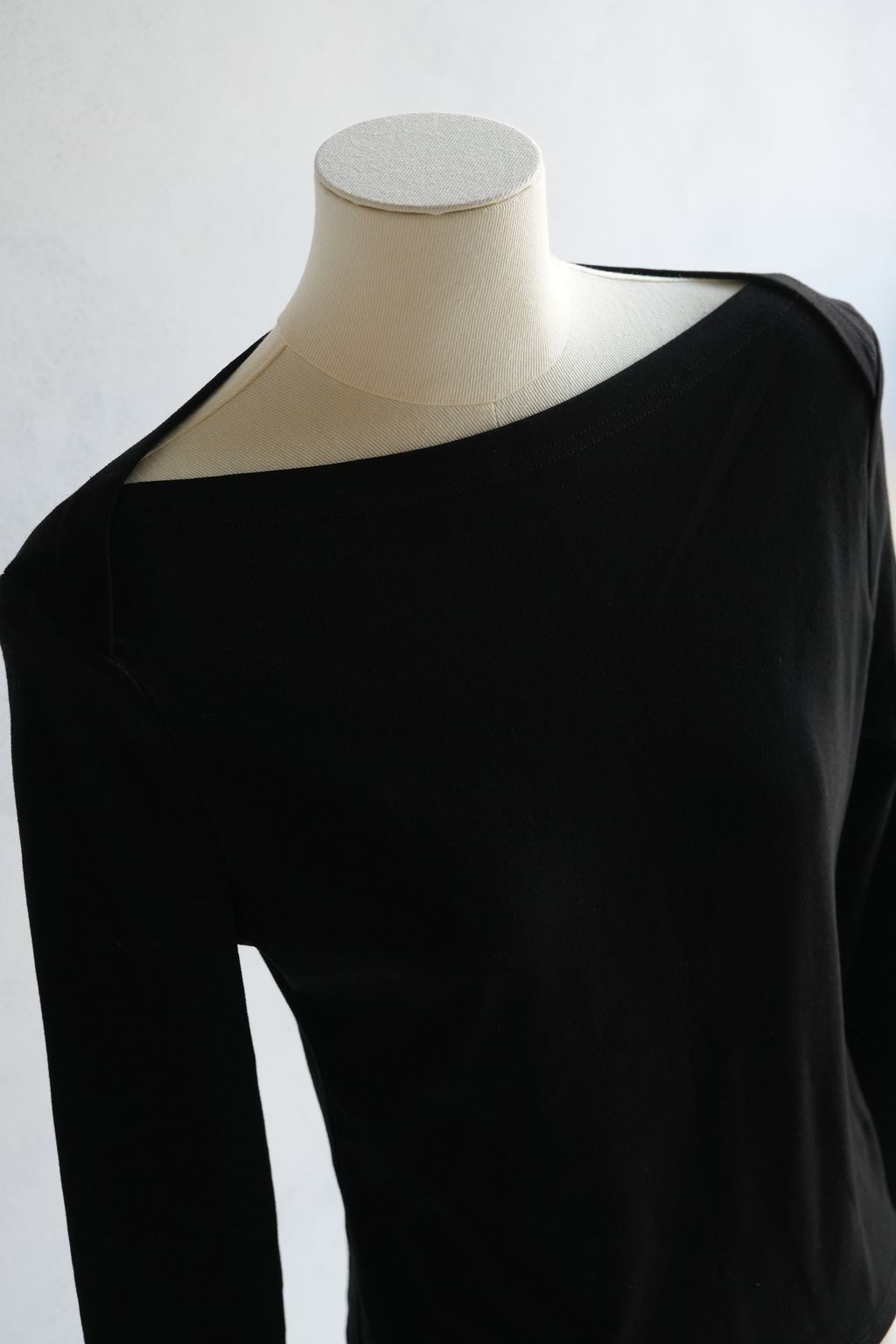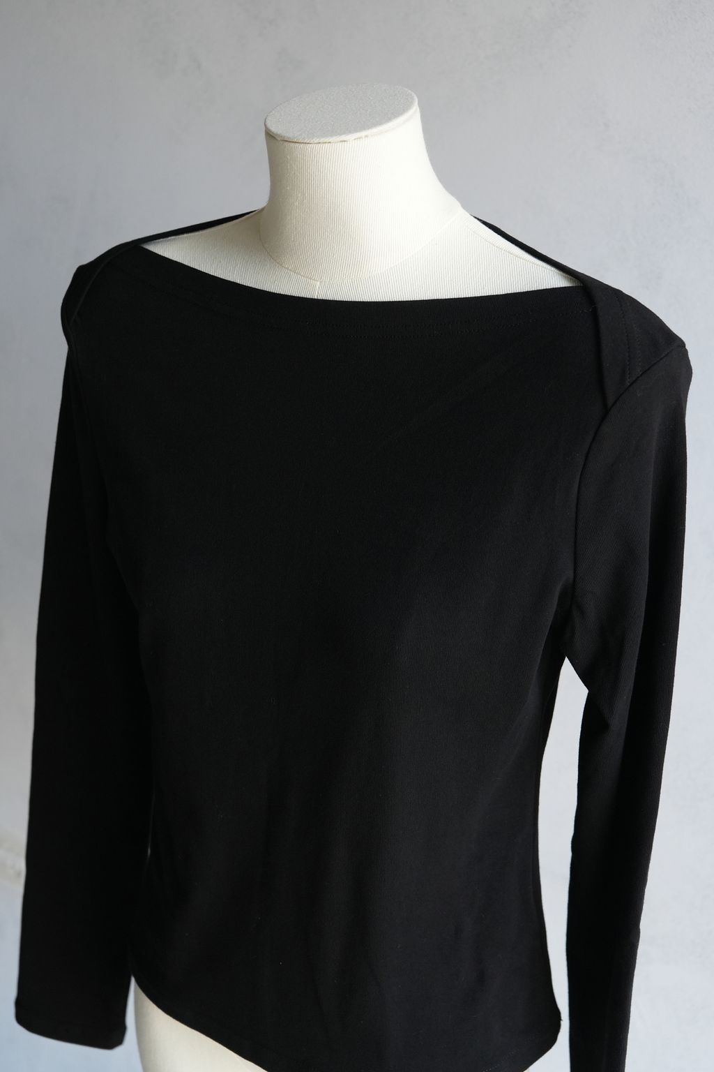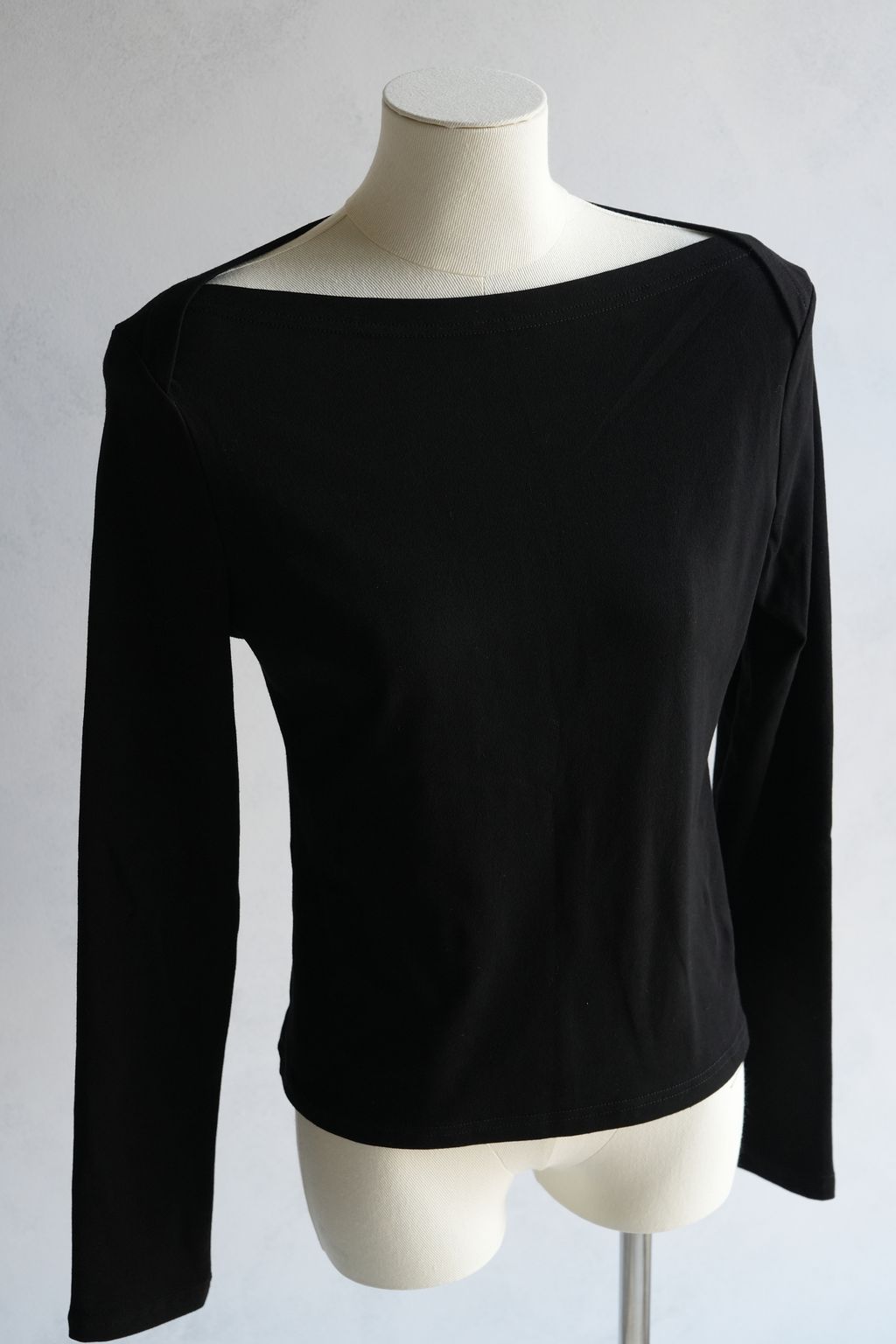 [C] 簡約細節設計版型交叉一字領經典款上衣|黑灰